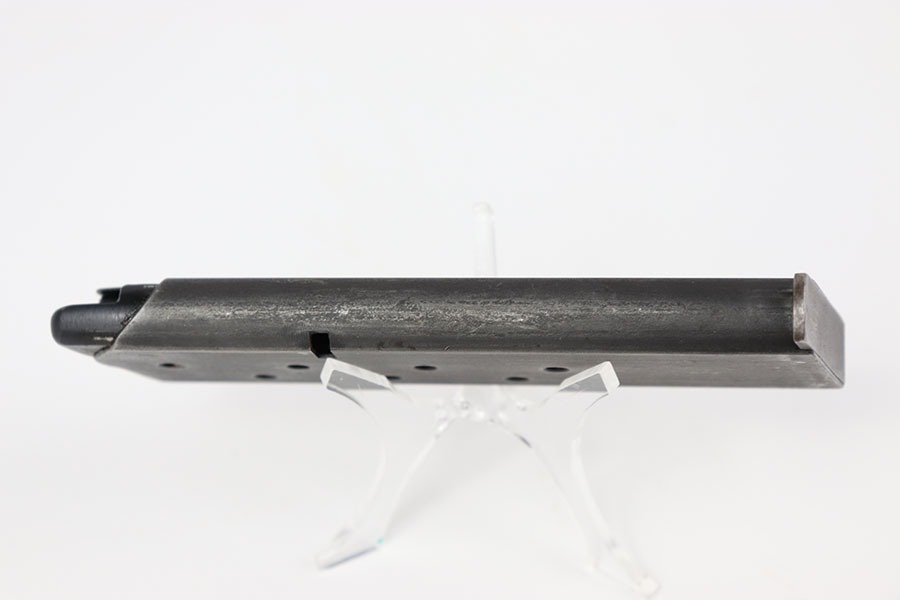 10/16/24 – This is an original WW2 era production Radom magazine. The magazine has a dull wartime blued finish and no markings. In great overall condition with only minor signs of wear throughout. Spring is strong and fully functional.