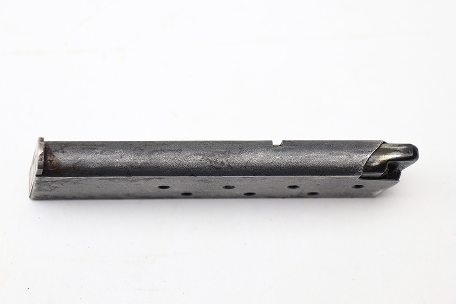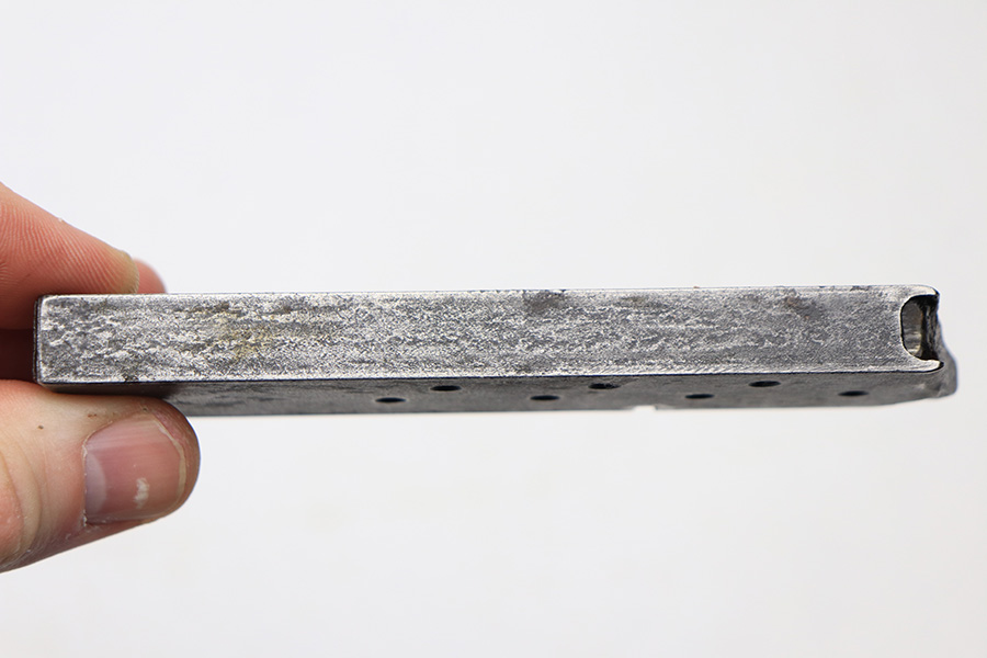 3/3/22 – This is an original Radom P.35 magazine from WW2. The magazine shows typical wartime production style. The finish throughout the magazine is mostly missing and rough throughout. The spring is strong and functional however, and there’s no rust or pitting. No stamps or markings.