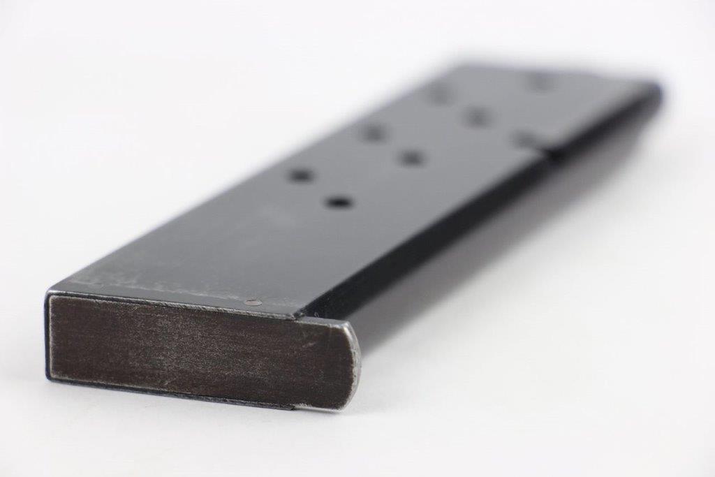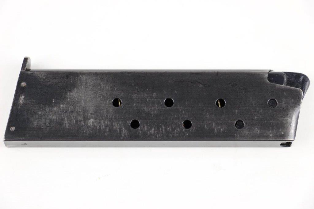 7/1/24 – This is an original WW2 era production Radom VIS P.35 pistol magazine. The magazine is in great overall condition with all original finish and a strong, functional spring. The magazine tube shows light finish loss and thinning, but no rust or pitting. The spine of the magazine has a small factory proof stamp, and no other markings. A great wartime production example, likely made just before Nazi occupation.
