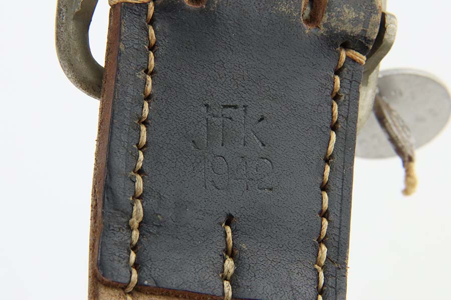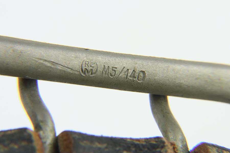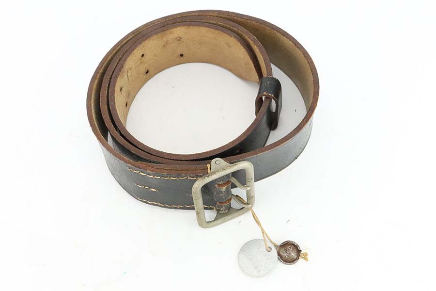 3/19/24 – This is an excellent example of a RZM Belt & Buckle. The belt is “jfk” maker marked and dated 1942. The buckle is “RZM M5/140” marked. It still has its original RZM hang tags. The belt is in excellent condition and appears to be un-issued.
