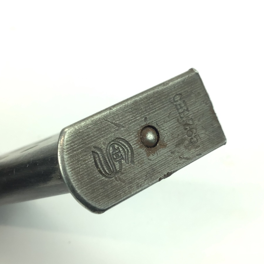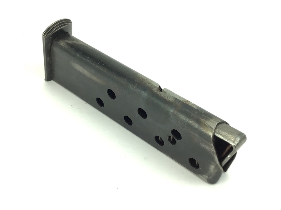10/21/21 – This is an original Sauer model 38h magazine. The bottom of the magazine has a double S logo with “Cal. 7,65” underneath. This is an early WW2 variation. The bluing shows minor wear with no rust or pitting. Strong spring that is fully functional. The release slot may have been filed sometime in the past, but this does not appear to affect the functionality. Priced accordingly.