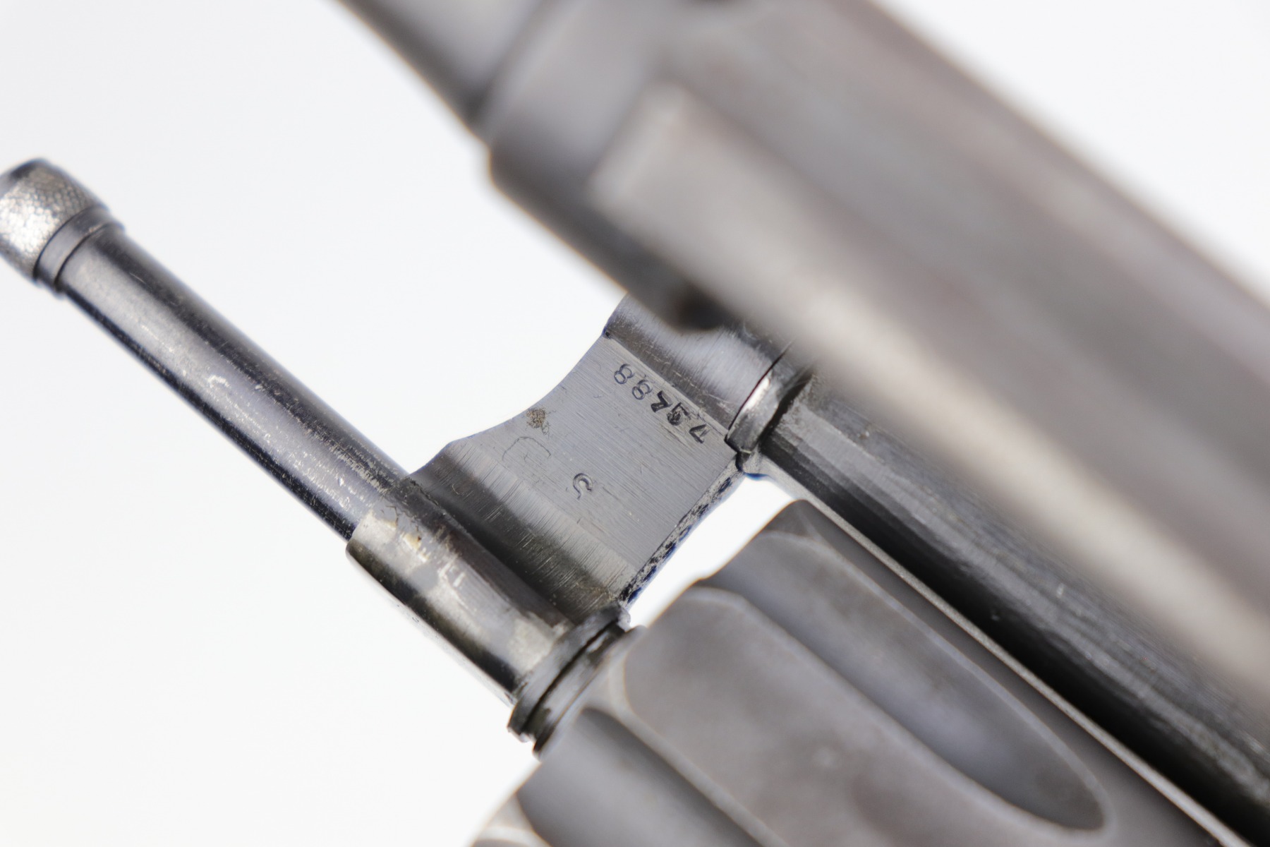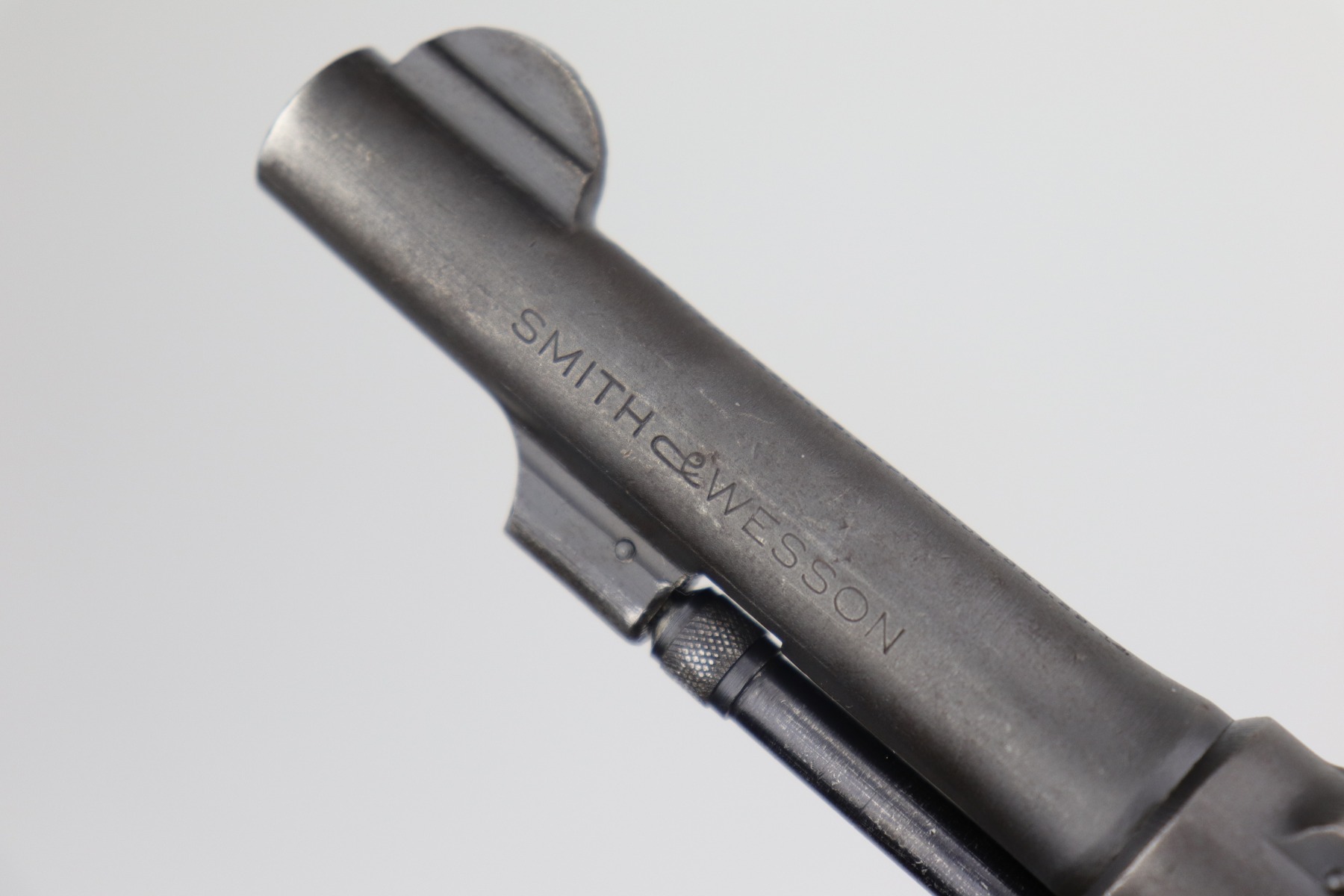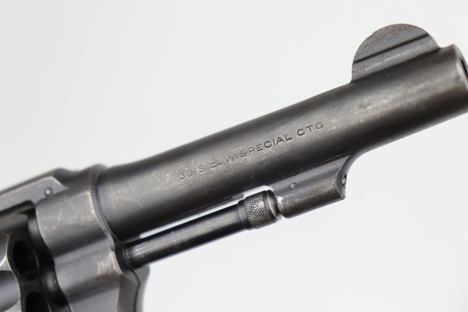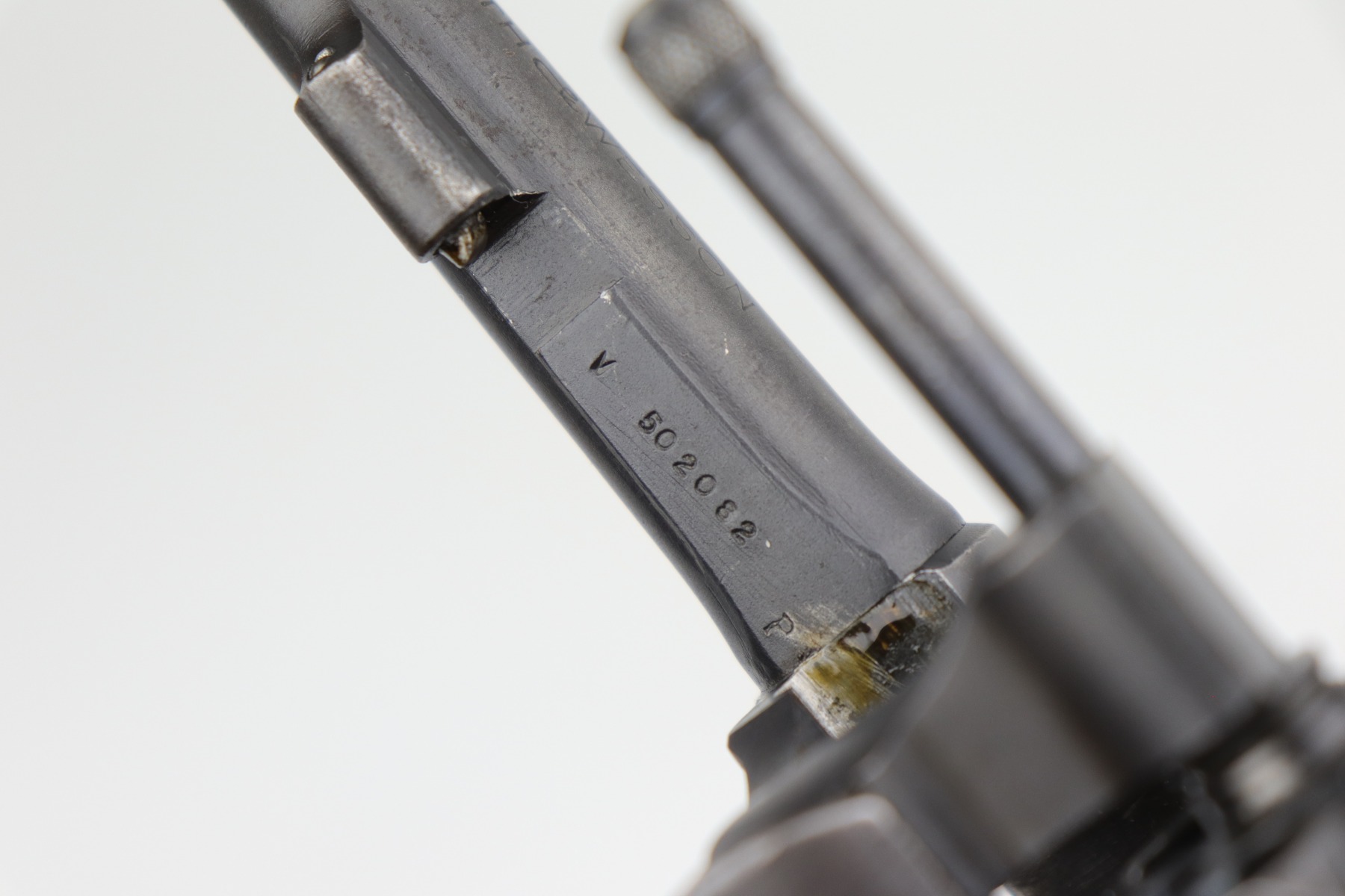 12/31/20 – This is a nice example of a Smith & Wesson Victory revolver issued to the US Military during WW2. The gun is correct and has a flaming bomb proof and “US Property” marking. It has retained about 90% of its original finish. There is minor wear around the muzzle and on the high edges. There are areas of minor thinning on the side of the frame and some patina on the straps. Areas of minor oxidation here and there. Roll mark on the cylinder. The cylinder is tight and the action is smooth. The bore is near-mint.