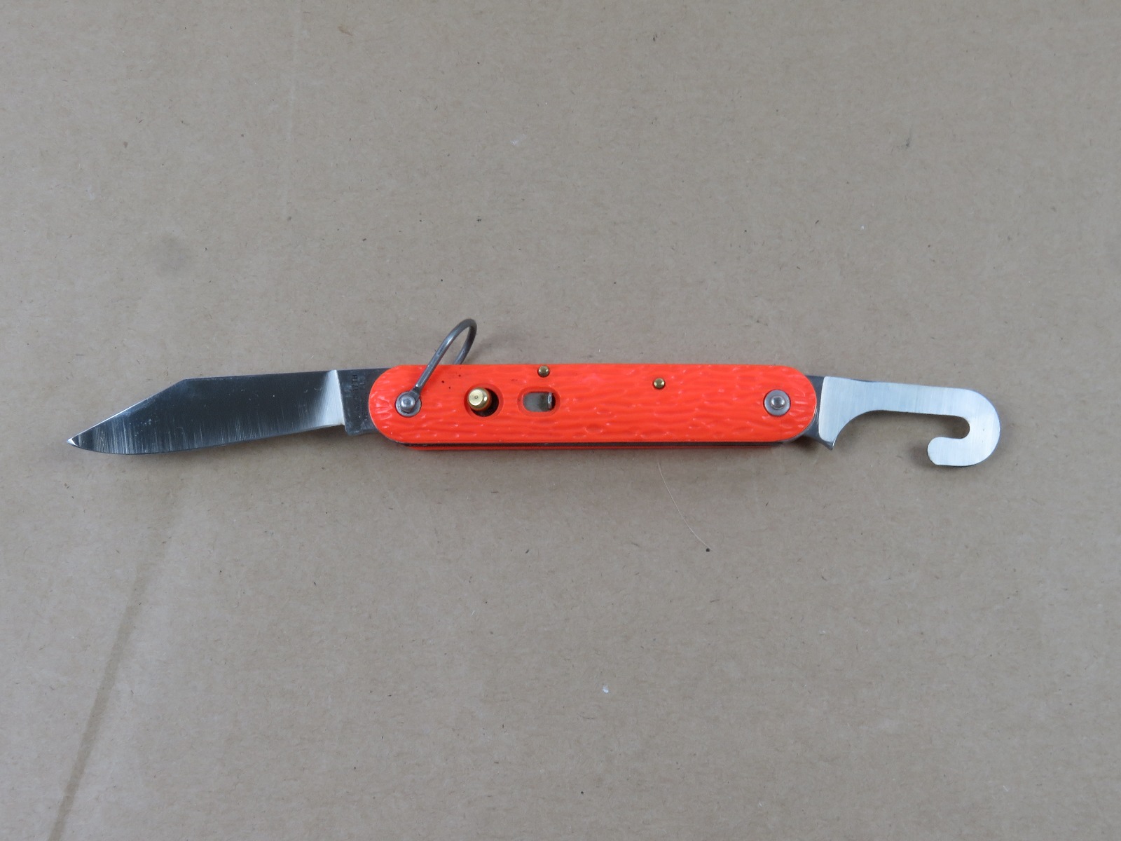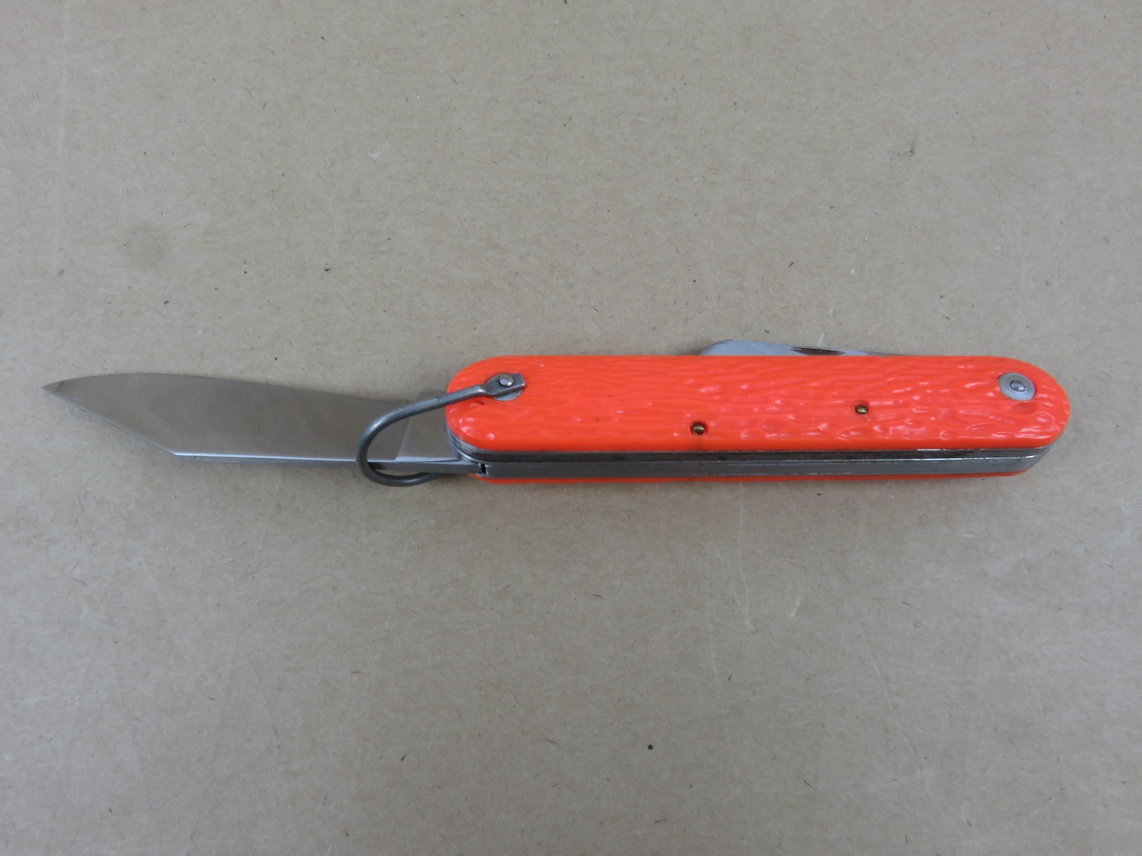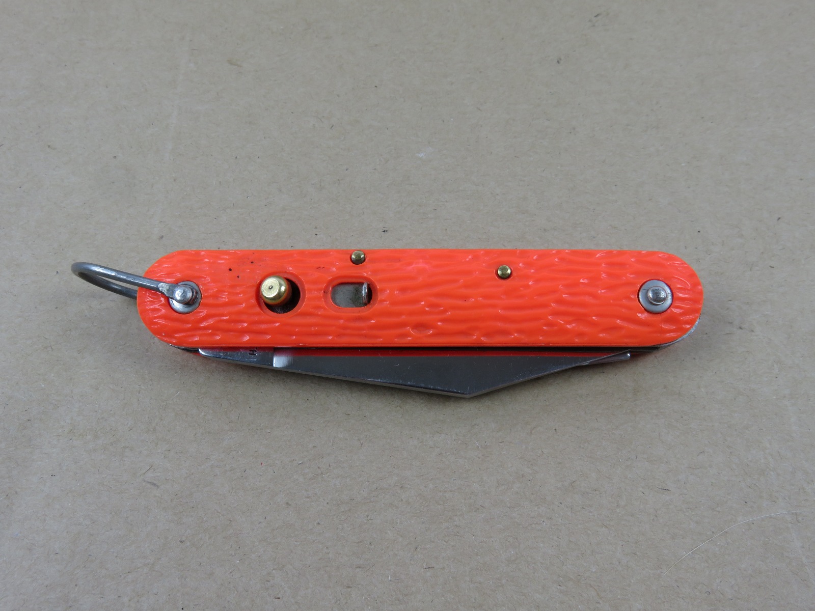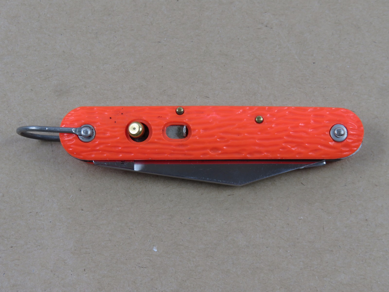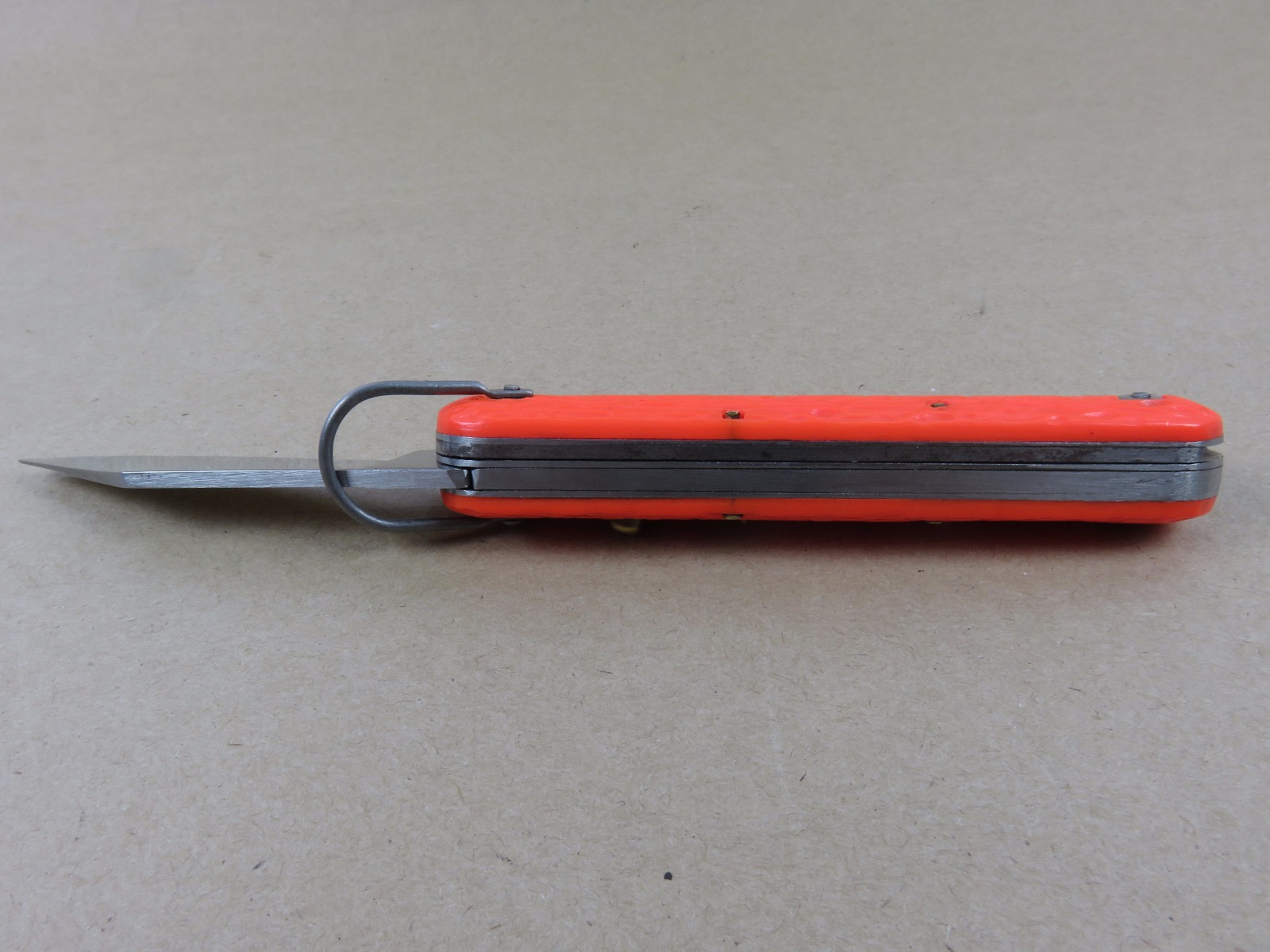 6/8/17 – This is an original WW2 era US Paratrooper or Pilot Switchblade. The switchblade also has a cord cutter on the other end to cut parachute cords. The blade and piece overall is excellent, near minty with the only flaw being a very tiny hairline crack near the butt-end screw hole. The blade is beautifully maker stamped and has no blemishes. Guaranteed original and authentic.