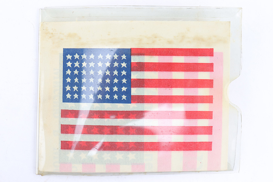 7/11/23 – This is an original US Air Force Survival Blood Chit with an original plastic carry case / cover. The blood chit was used in case an American Pilot was downed in Russian territory. The small sheet has instructions on what to do when spotted by Russian troops and hopefully would help get the American to safety. The blood chit measures about 9.5×7.5 inches and is made from a linen reinforced paper. Great condition with minimal wear. The plastic carry sleeve was often worn as a lanyard, but no lanyard is included. In addition to the WW2 era blood chit, a small US postwar flag is included in this offering.