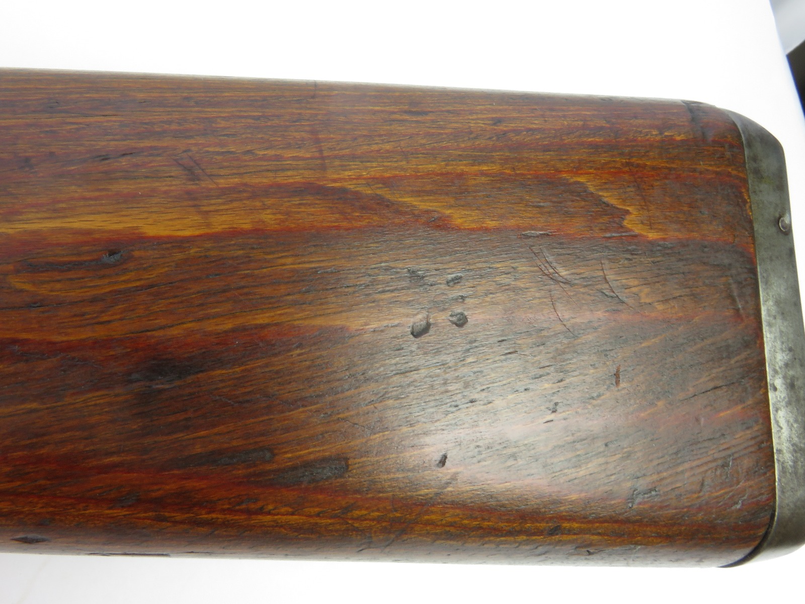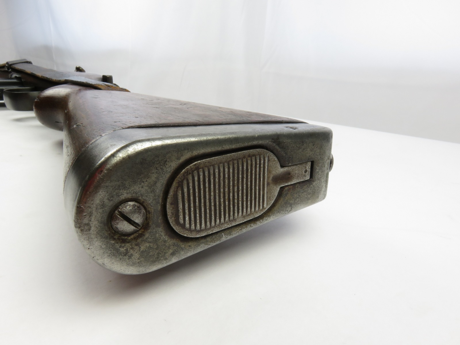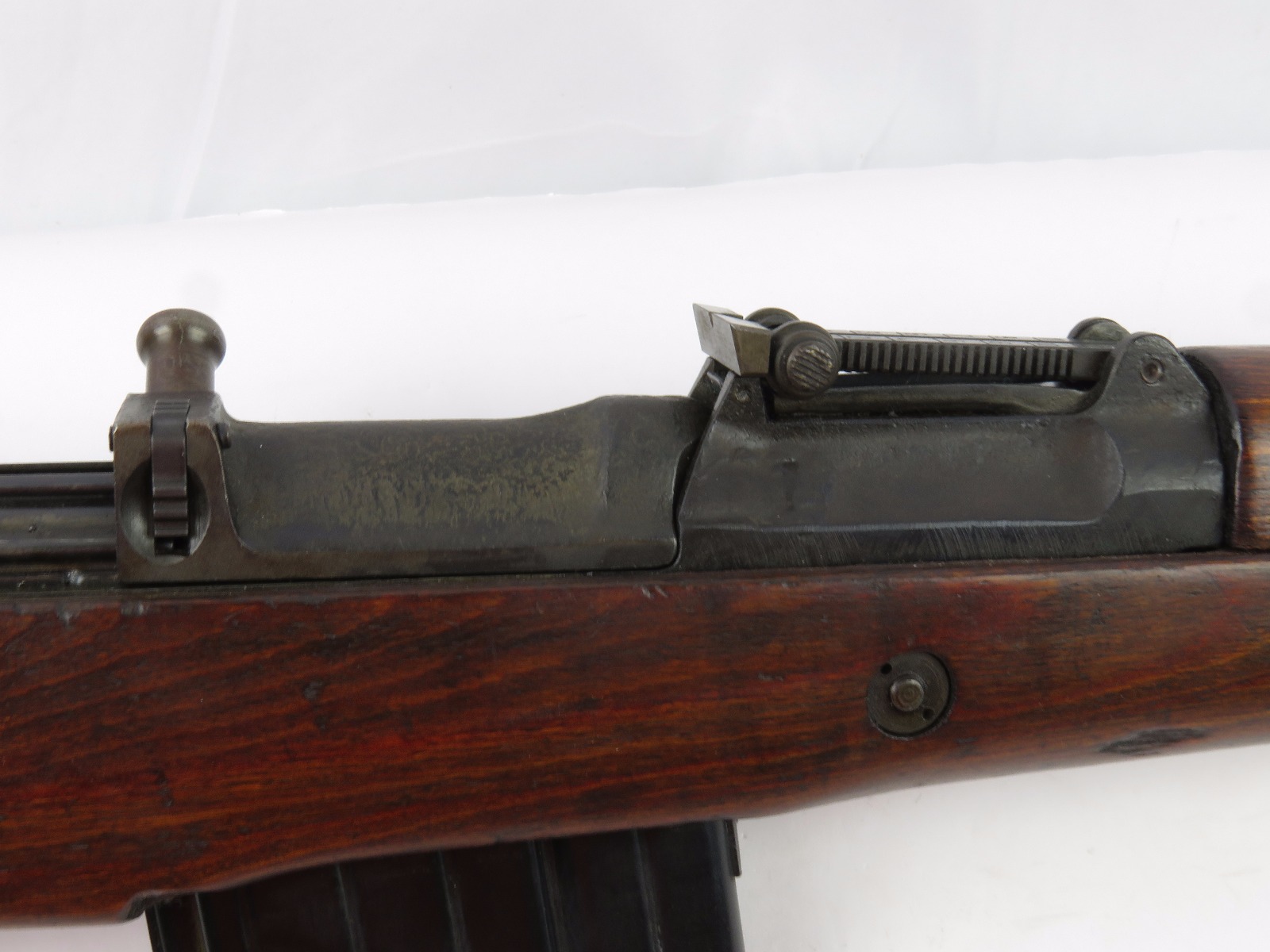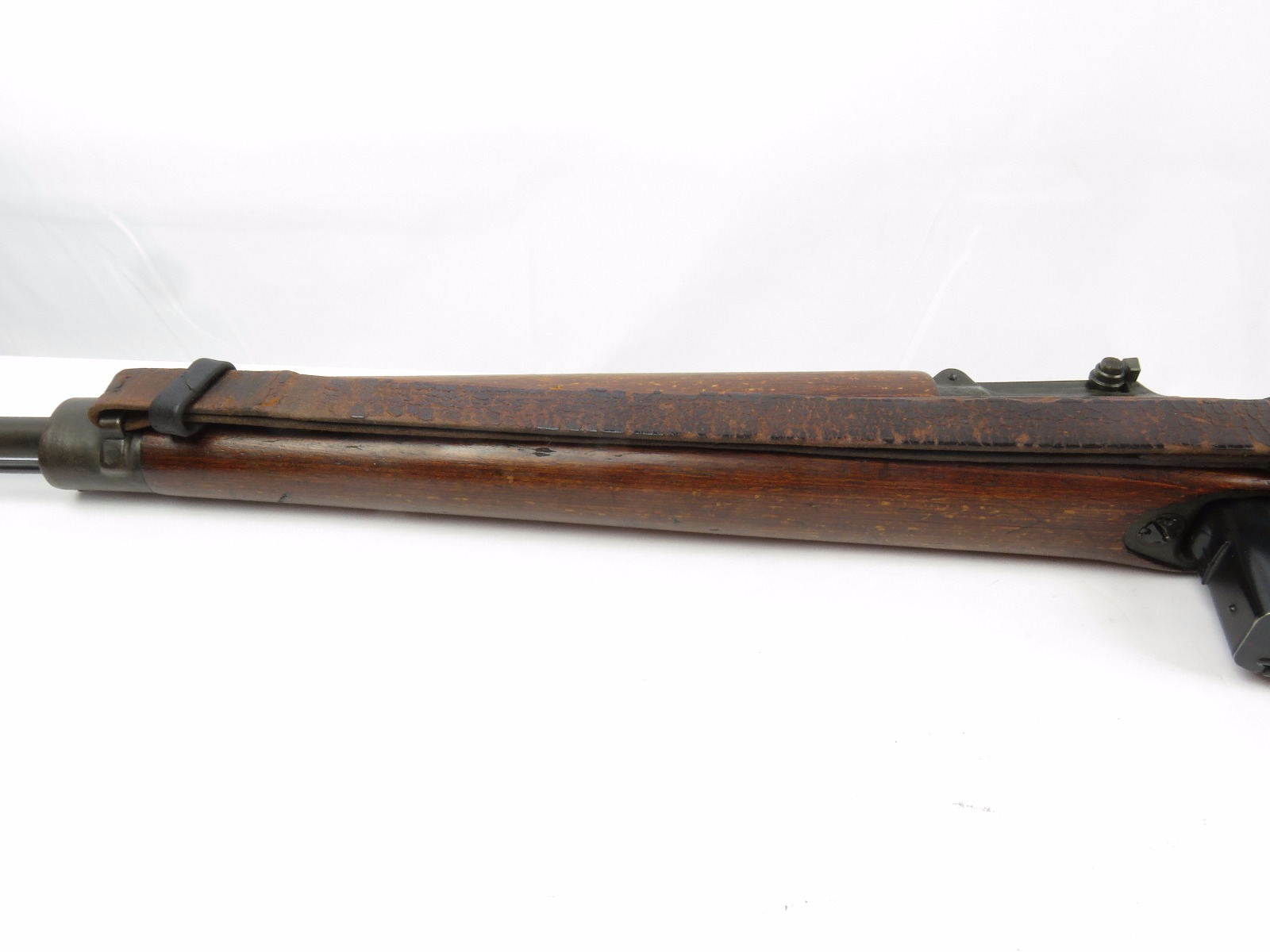 8/31/17 – This is a late WW2 production Walther AC44 G43 rifle. The rifle is all original configuration, and in great condition overall considering that most late WW2 production guns had very rushed, rough finishes. The metal has rough machine marks, but no rust or pitting. The wood stock is original and unsanded, with two waffen proof stamps and a matching serial number on the underside of the rifle. The shoulder strap attached is rough as well with cracked surface leather, but completely in tact and original. The magazine is stamped “K43” and “gcb” with a waffen proof stamp. The bore has residue and corrosion, but the rifling is still in tact, and would probably clean out fairly nicely. The dust cover on the top of the receiver isn’t shown in photos, but will be included upon sale. Guaranteed original and authentic.