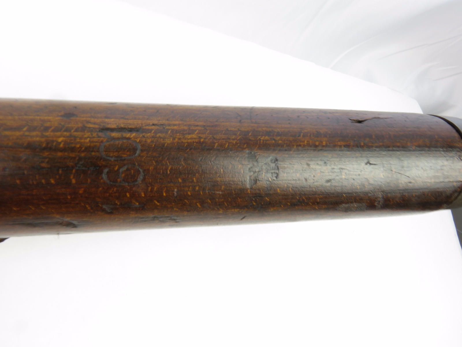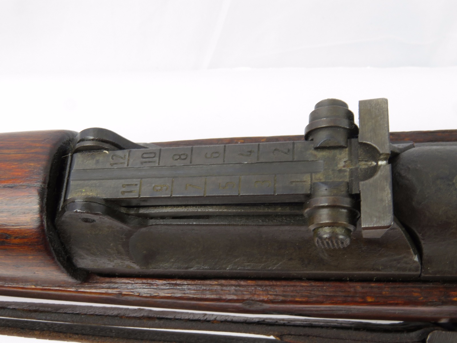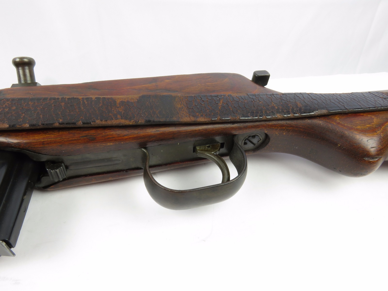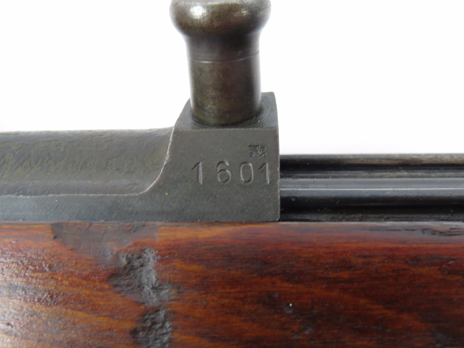 8/31/17 – This is a late WW2 production Walther AC44 G43 rifle. The rifle is all original configuration, and in great condition overall considering that most late WW2 production guns had very rushed, rough finishes. The metal has rough machine marks, but no rust or pitting. The wood stock is original and unsanded, with two waffen proof stamps and a matching serial number on the underside of the rifle. The shoulder strap attached is rough as well with cracked surface leather, but completely in tact and original. The magazine is stamped “K43” and “gcb” with a waffen proof stamp. The bore has residue and corrosion, but the rifling is still in tact, and would probably clean out fairly nicely. The dust cover on the top of the receiver isn’t shown in photos, but will be included upon sale. Guaranteed original and authentic.