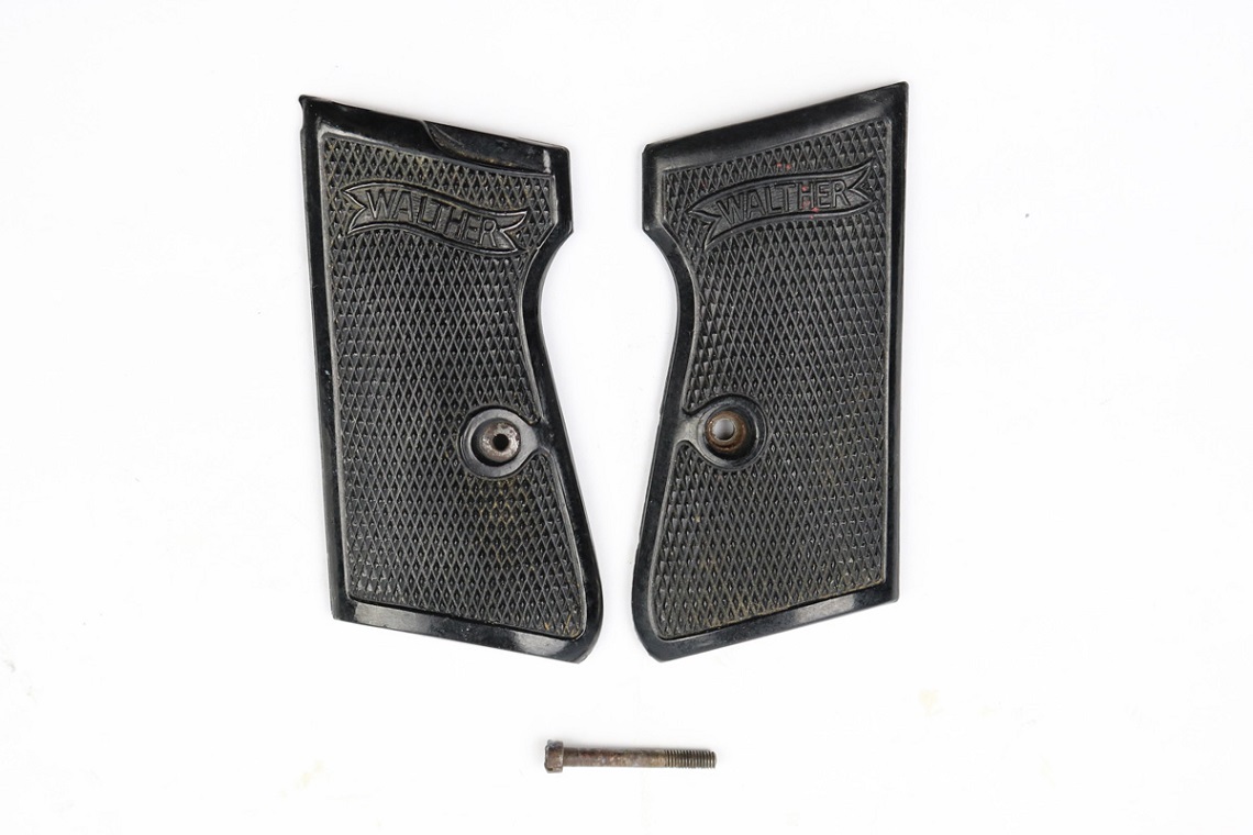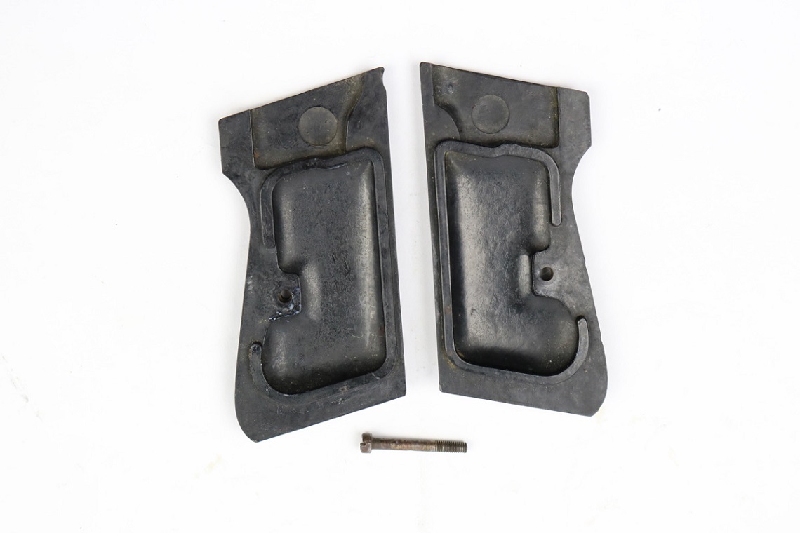 11/1/18 – This is an original pair of bakelite WW2 Walther PP grips. The original screw is included. The grips are wartime variation (non weighted) with no cracks or chips. There’s some minor rust in the escussions, but this is normal aging wear. Overall in great condition and guaranteed original.