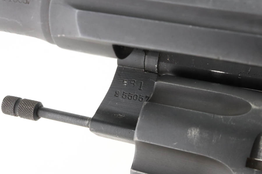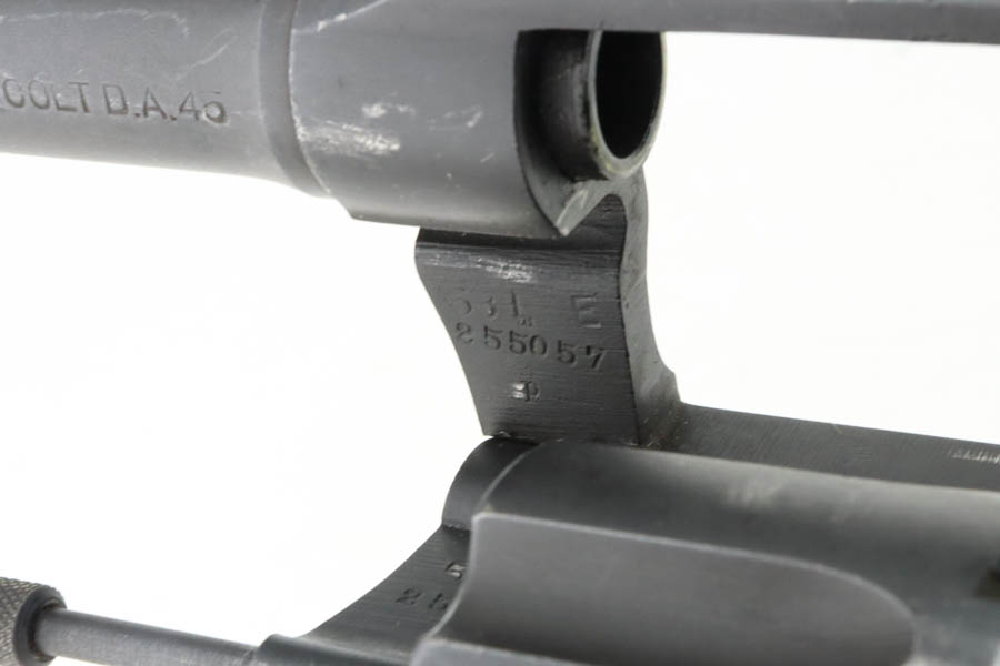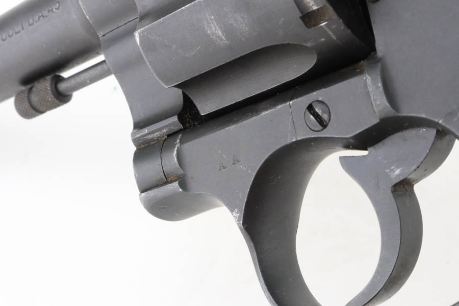 6/4/24 – This is a very nice example of a Colt Model 1917 Revolver, issued to the US military during WWI. All matching with the proper military proofs. There is an “AA” marking on the left side of the frame, indicating it was reworked at the Augusta Arsenal, likely for re-issue during WW2. The entire gun has been parkerized with just some small scratches and handling marks here and there. Fitted with later reddish-brown plastic grips. Excellent bore with strong rifling.