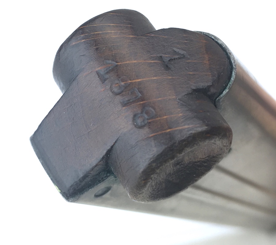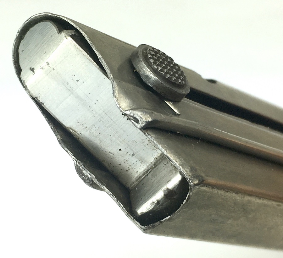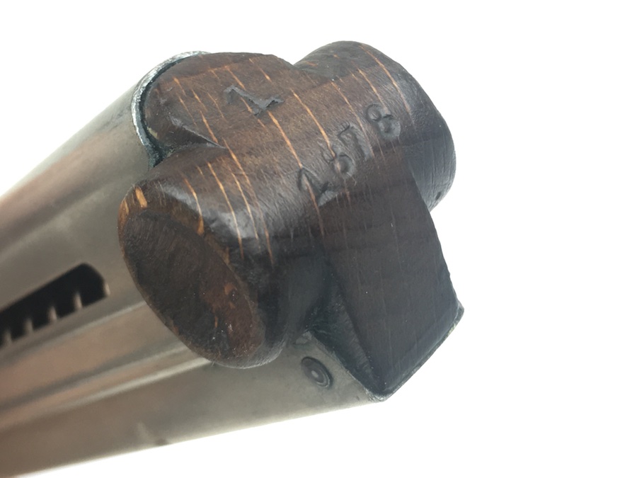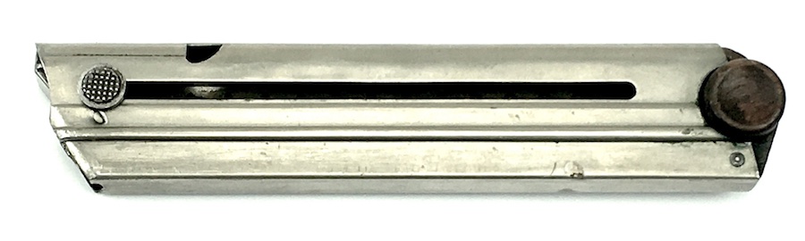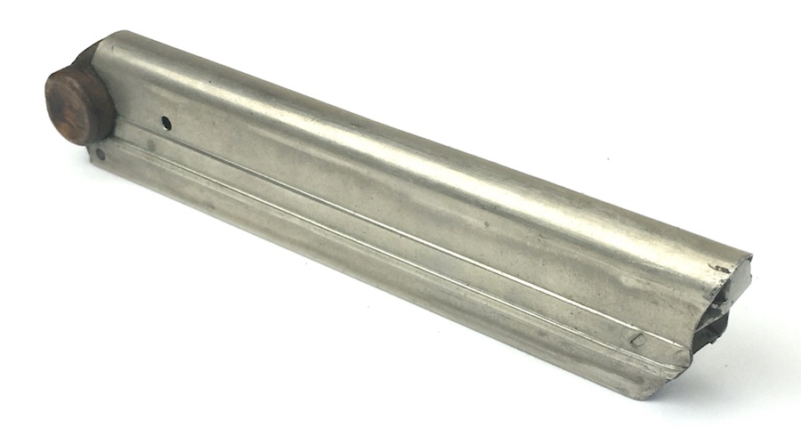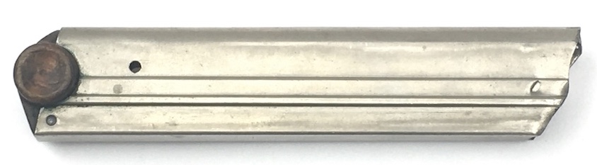 11/12/19 – This is an original WWI production Luger magazine. This magazine is in excellent overall condition. The base is solid with no cracks or chips. Serial number “1878” stamped into the base and the numeral “1” above that. Very nice, clean tube has minimal wear. Strong, fully functional spring.