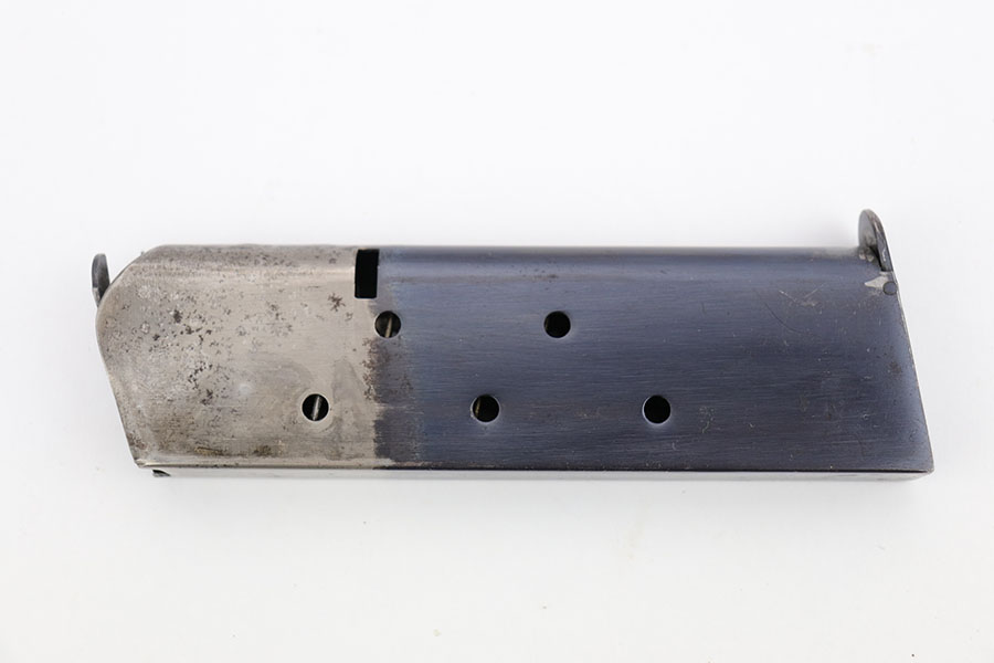 2/1/20 – This is a beautiful, WWI production 1911 Colt magazine. Nice two tone finish with only minor oxidation / speckling patina on the frame and bottom. Nice overall color. Fully functional & strong spring.