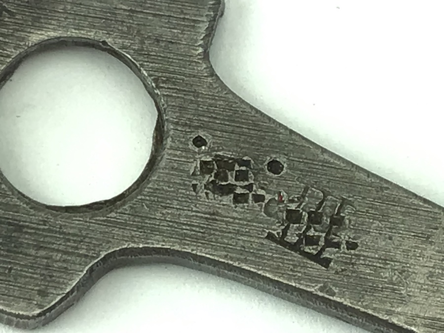 1/8/21 – This is an original WWI take down tool. Unit marked on the back. The front is stamped with the Roman numeral III and several punch marks. Some bluing loss and typical use wear.