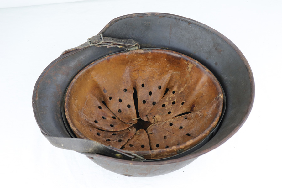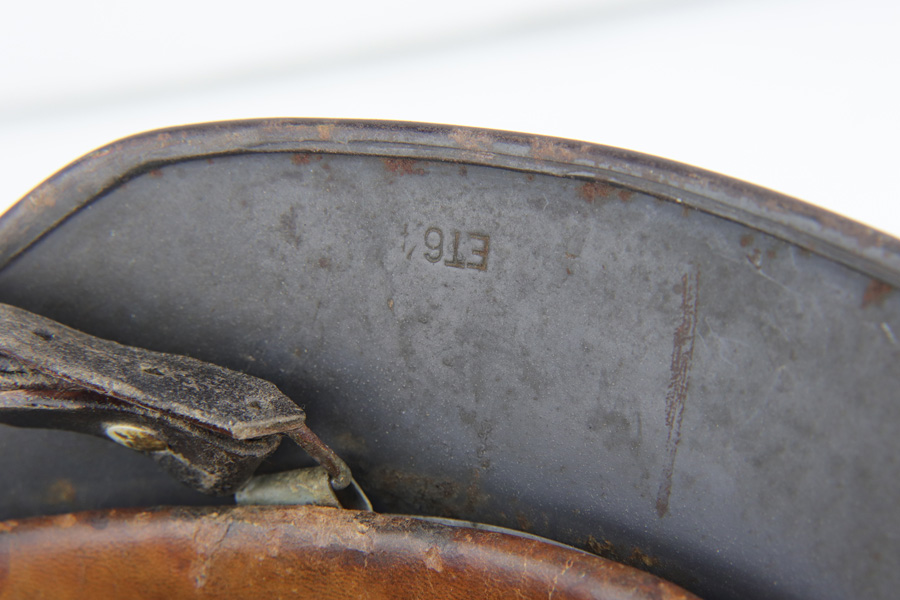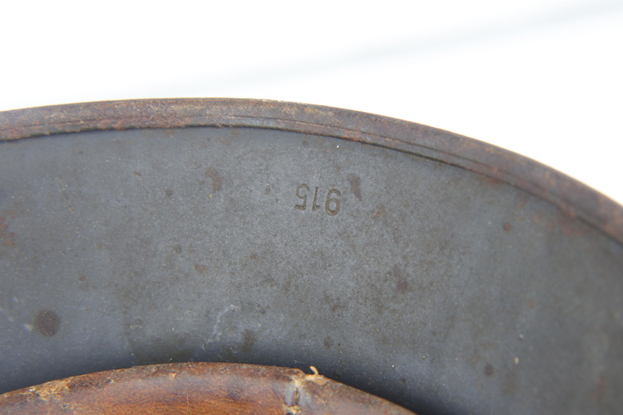 2/6/19 – This is a Luftwaffe model 1940 nazi helmet from WW2. The helmet has a luftwaffe eagle emblem on the exterior. The interior is maker coded “ET” and size 64. Also serial numbered 915. The helmet has normal paint loss and wear on the exterior, but no dents. Emblem mostly in tact with only a small area missing. The interior liner is very nice, but the crown of the interior shell is discolored shades of orange due to rust. Comes with an original chinstrap as well. Please see photos!