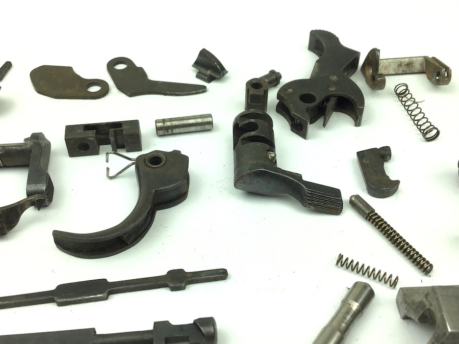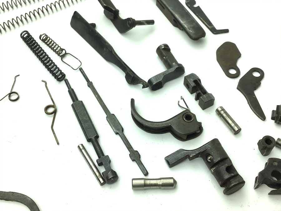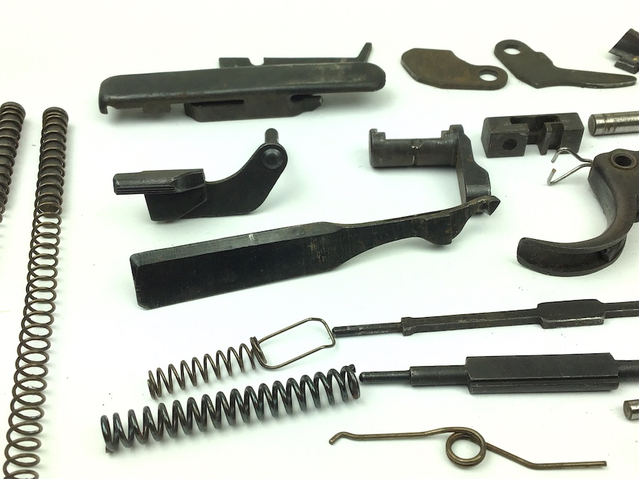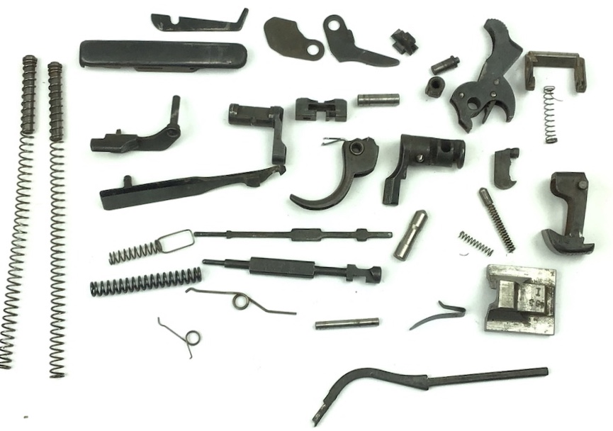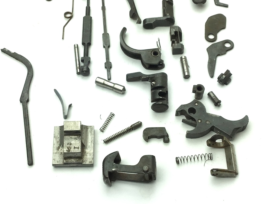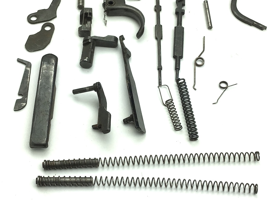 5/7/20 – Original and great condition small parts kit for P.38 9mm pistols. All unmarked parts in usable condition. The only markings are the ser# 499 on the locking block. No corrosion. Some typical bluing wear. Authentic parts from the WWII era.