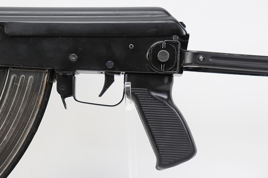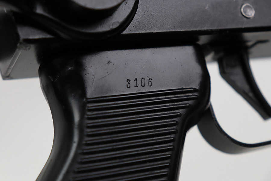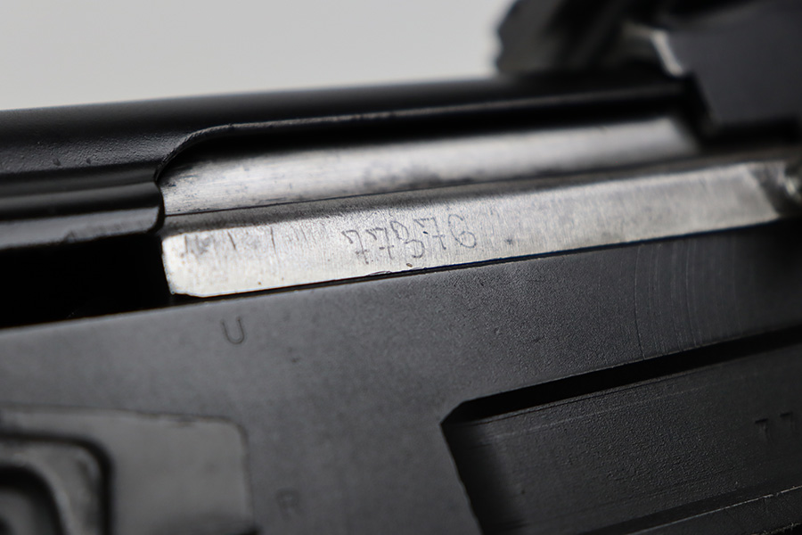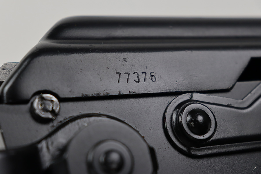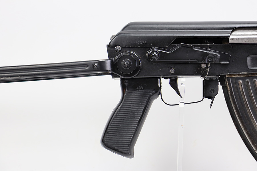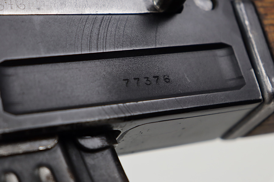 7/6/23 – This is an excellent example of a Yugoslavian Zastava M64 with an underfolding stock. Chambered in 7.62x39mm. This one has retained most of its finish, but there is some light scratching on the right side of the receiver and some areas of minor pitting under the finish – most noticeable on the top of the dust cover. The wood furniture shows signs of bruising. It has been lightly sanded, and there are some initials on the left side. Comes with cleaning rod and one proper magazine. There is pin-pricking and light oxidation in the bore.