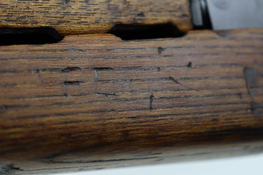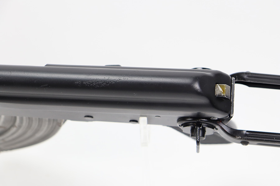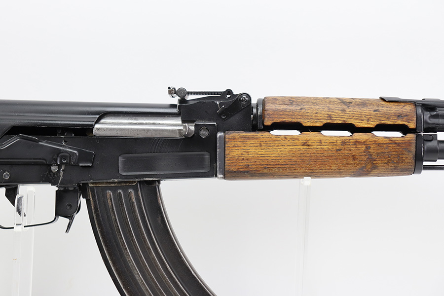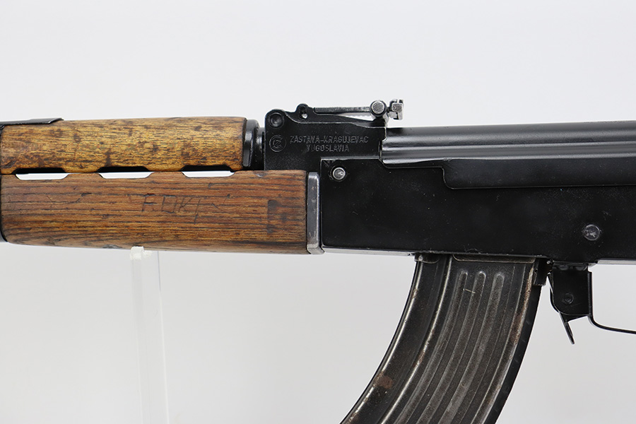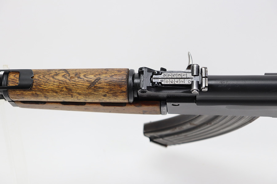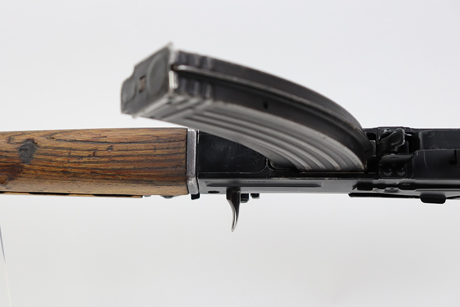 7/6/23 – This is an excellent example of a Yugoslavian Zastava M64 with an underfolding stock. Chambered in 7.62x39mm. This one has retained most of its finish, but there is some light scratching on the right side of the receiver and some areas of minor pitting under the finish – most noticeable on the top of the dust cover. The wood furniture shows signs of bruising. It has been lightly sanded, and there are some initials on the left side. Comes with cleaning rod and one proper magazine. There is pin-pricking and light oxidation in the bore.