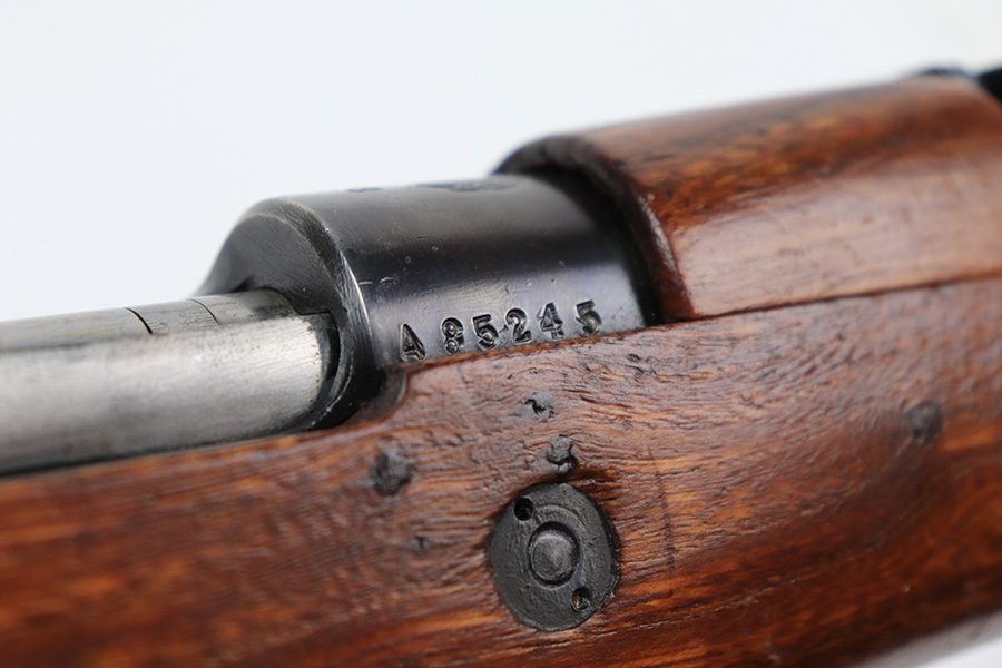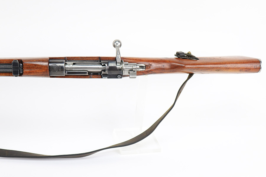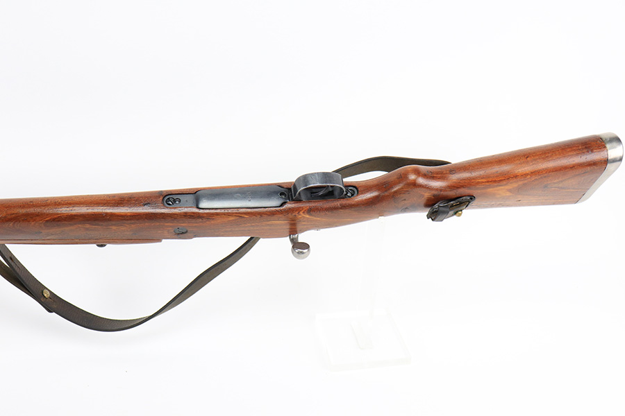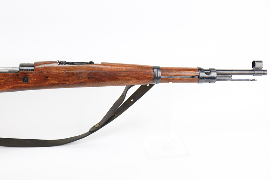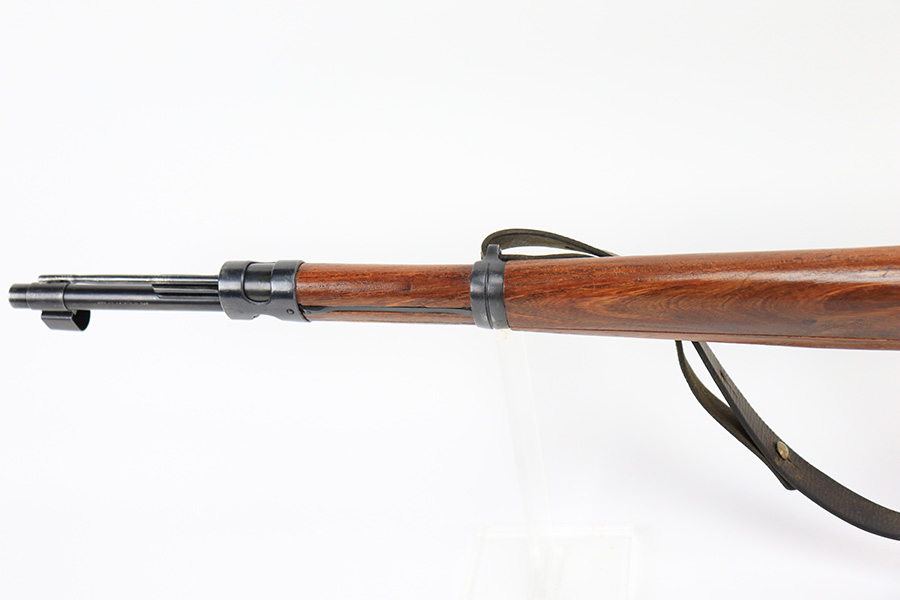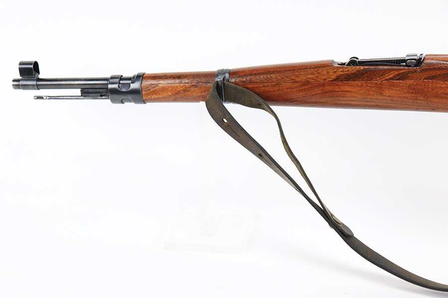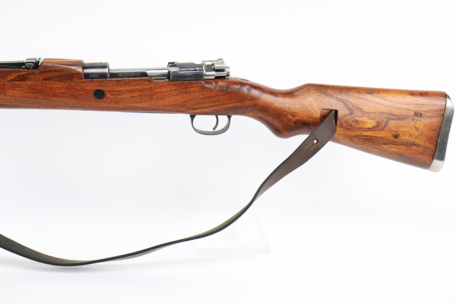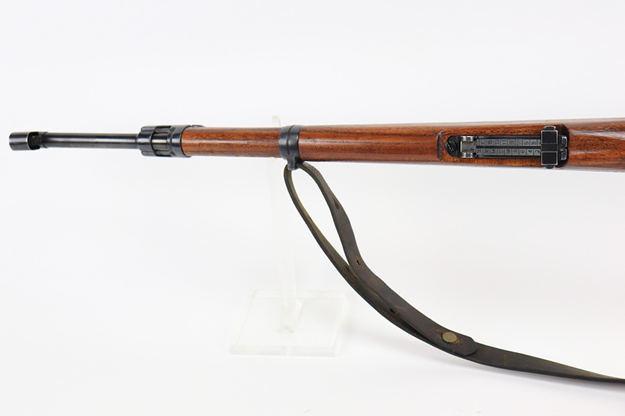 6/9/22 – This is an excellent example of a Yugoslavian Mauser Zastava M48 rifle manufactured in the 1950’s. It is all matching (including the stock) but has an import mark on the barrel. Yugo crest on the receiver. Very little finish loss. Just some minor wear on the high edges of the receiver and around the muzzle. Very light scratchy wear on the barrel and on the floor plate / trigger group. Comes with a leather sling. Stone-mint bore.