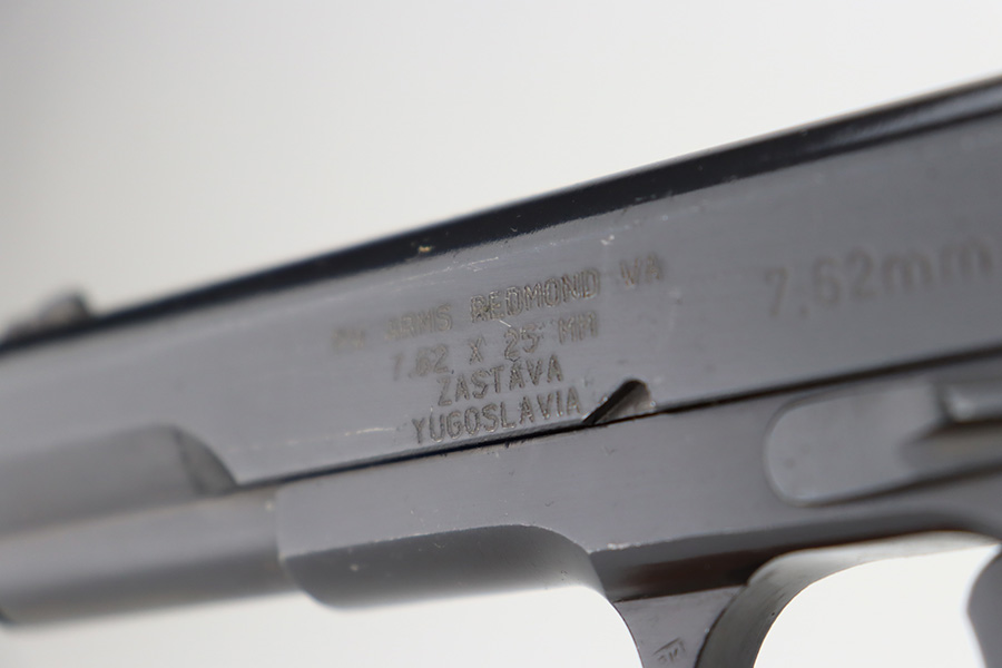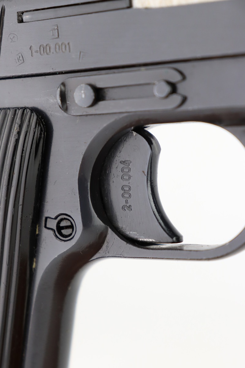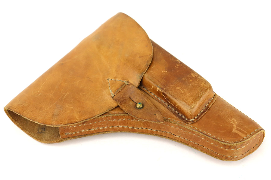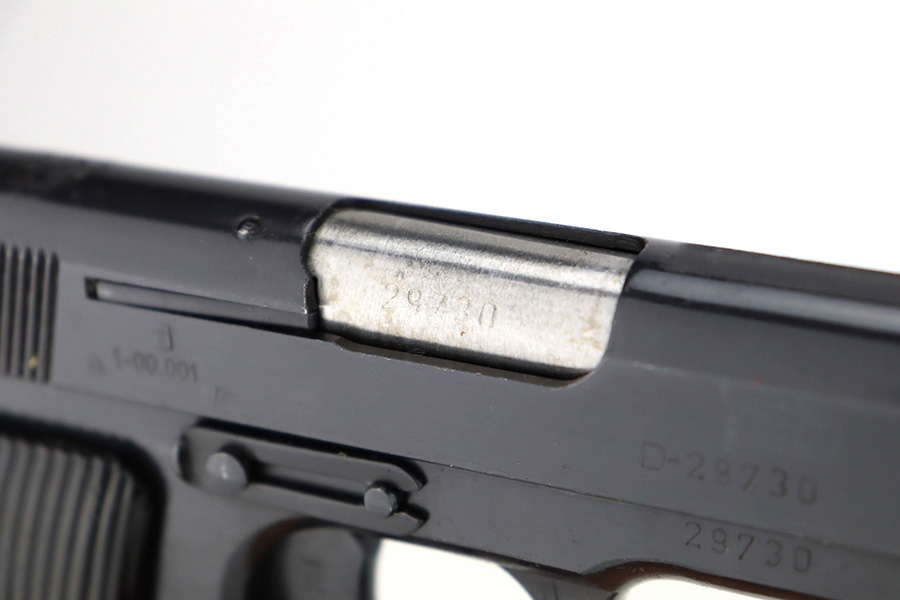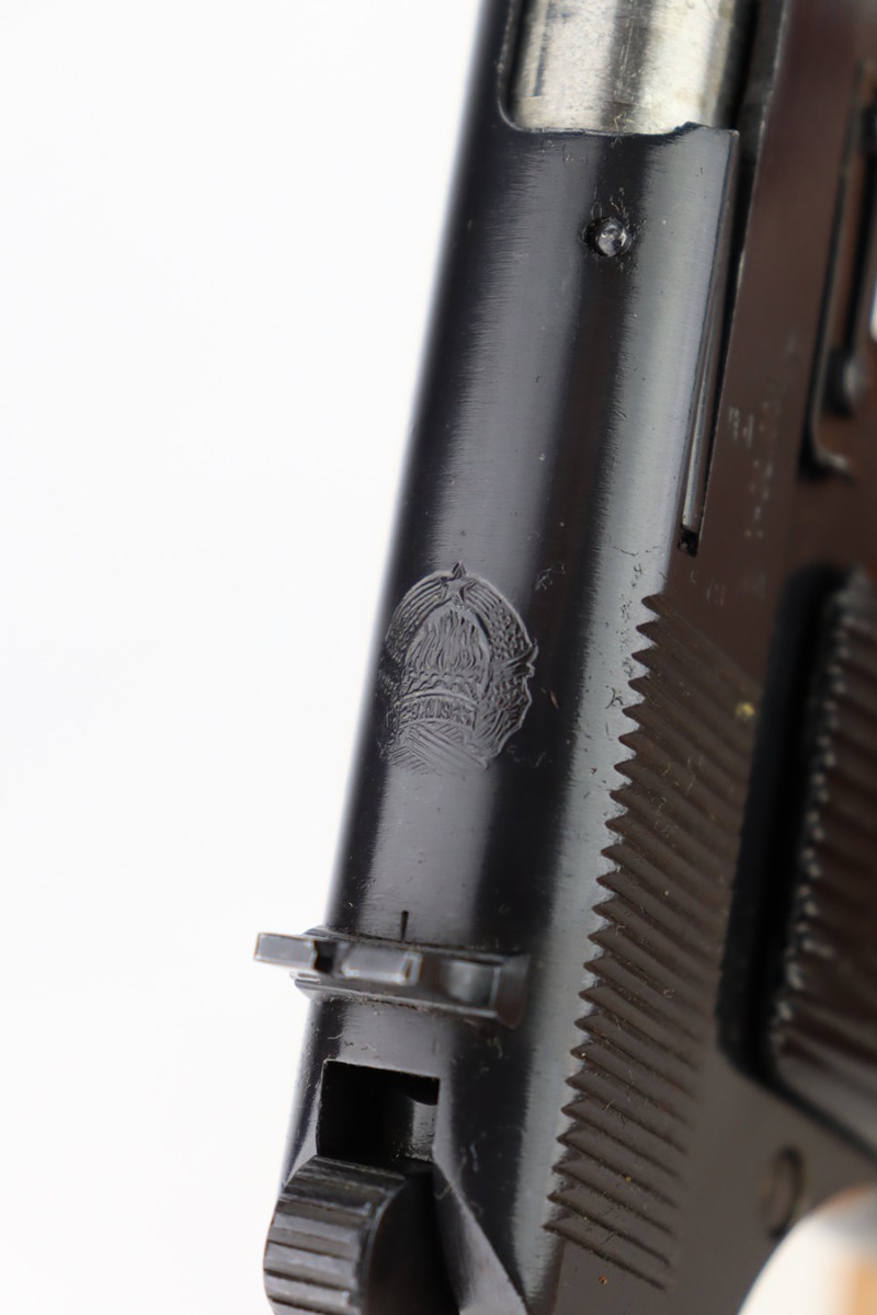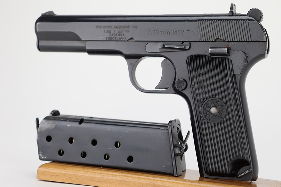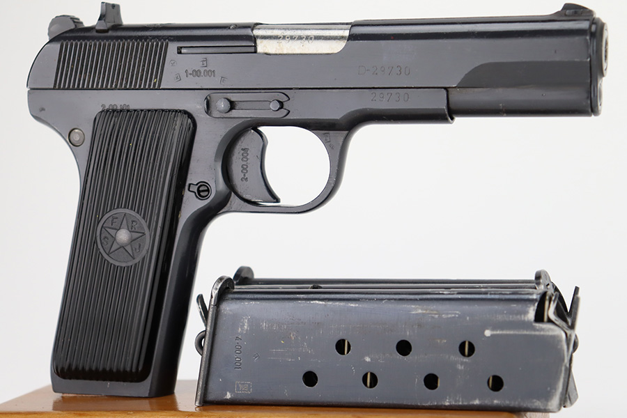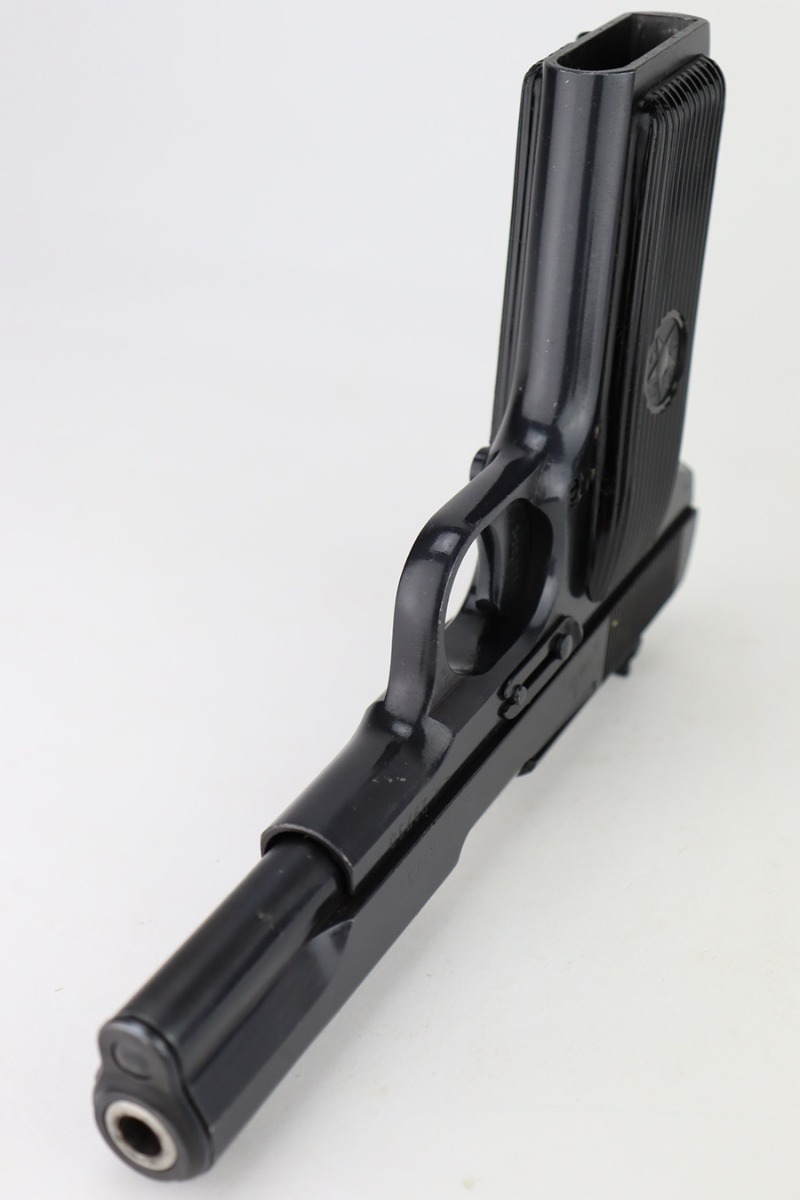 1/8/24 – This is a Yugoslavian M57 made in the 1960’s. It is a copy of the Soviet Tokarev TT-33. All matching with a Yugo crest on the top of the slide and an import mark on the left side of the slide. It comes as a complete rig with three magazines, a cleaning rod, and an excellent tan leather holster. The gun has retained nearly all of its finish with just some tiny handling marks here and there. Fitted with correct black bakelite grips. The bore has great rifling with some light frosting in the grooves.