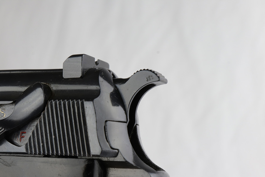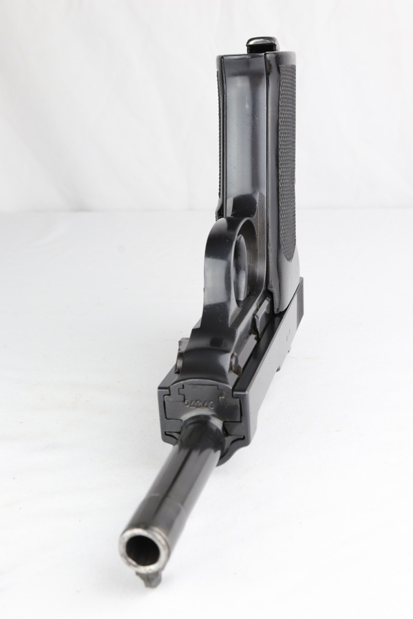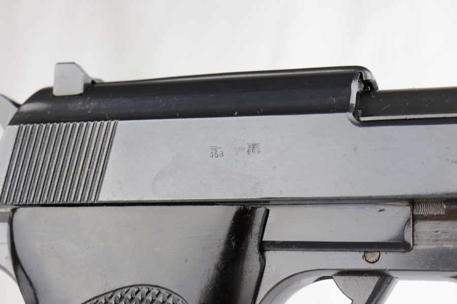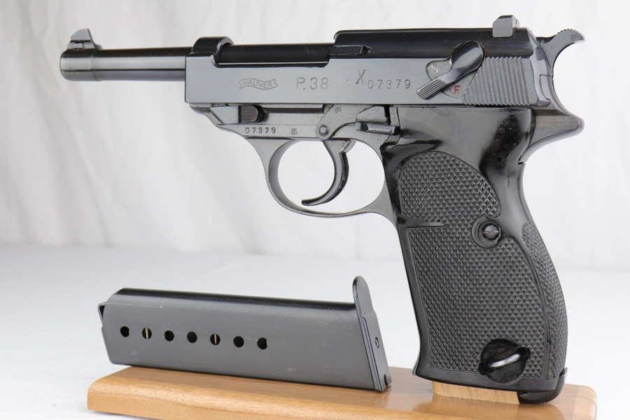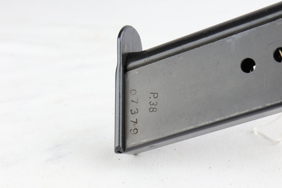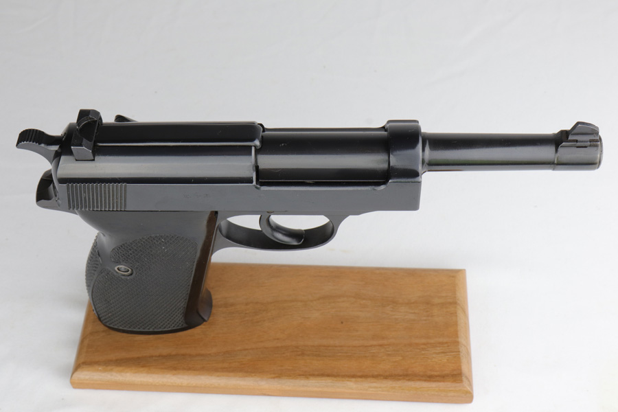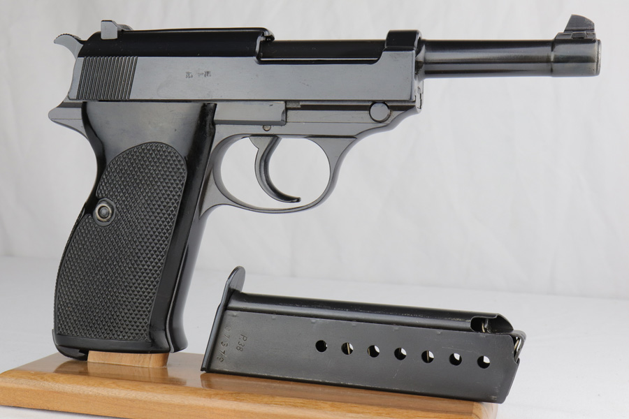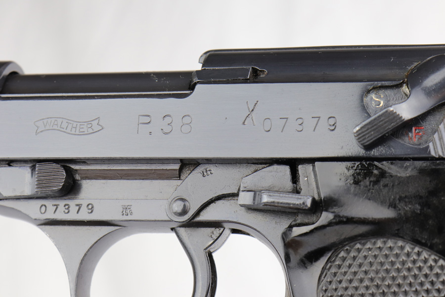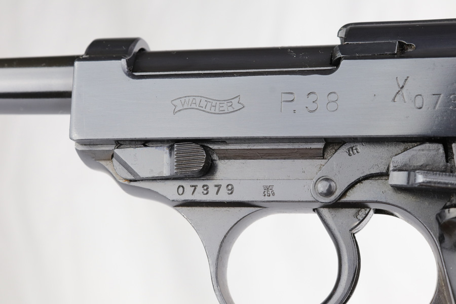 3/12/19 – This is a desirable Zero Series Walther P.38, third variation, that was Russian captured and restored. There were only ~9,500 third variation Zero Series produced. Slide bears the obvious ‘Russian X’, and the restored finish rates at 99% with only minor muzzle wear. All original parts, including the matching numbered grips. The magazine is matching numbered to the pistol, but the body is not the correct variant (E/359 marking is separated rather than together at bottom), so we aren’t certain the numbering is factory. Proper mechanics, including de-cocker. Bore is pitted throughout and rifling is somewhat worn.
