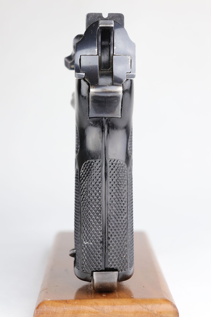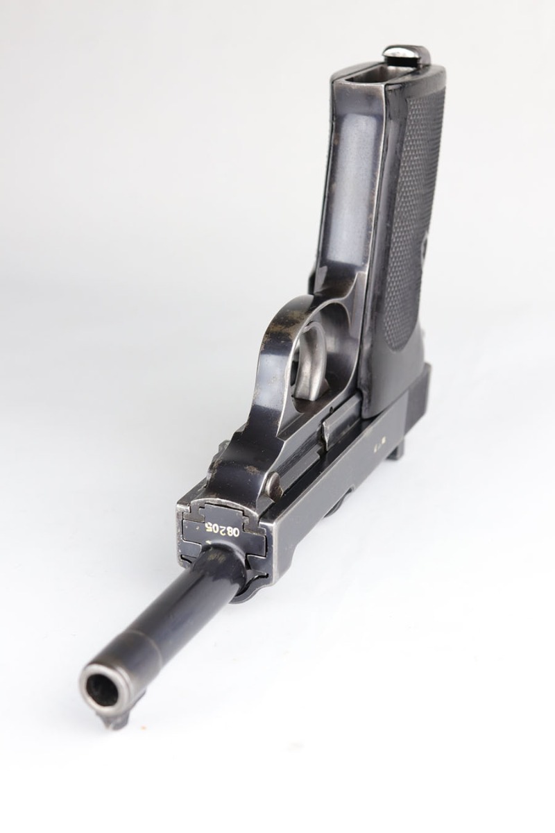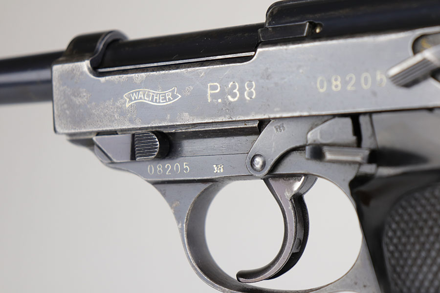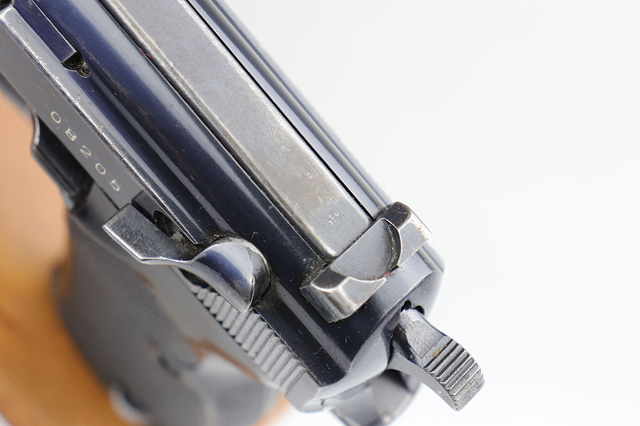 4/27/20 – This is an original and scarce Zero Series Walther P.38. It’s a third variation example, one of about 10,000 produced. It has all matching numbers, including the grips. Magazine is mismatched but an original zero series mag. The bluing is original and rates at about 80% with thinning on the trigger guard and front strap, as well as some notable surface corrosion on the left side of the slide and muzzle. Bore is shiny with strong rifling but does have some frost and freckling throughout. Good mechanics, including de-cocker.