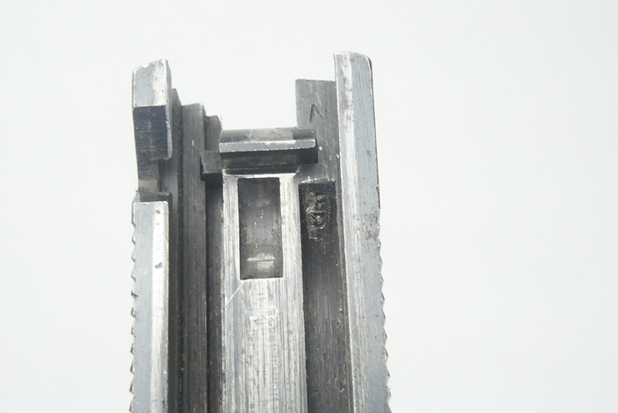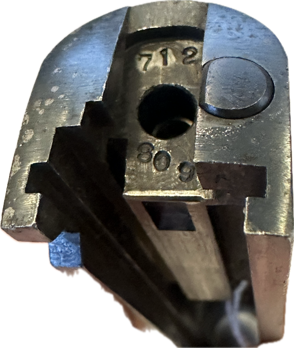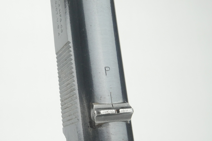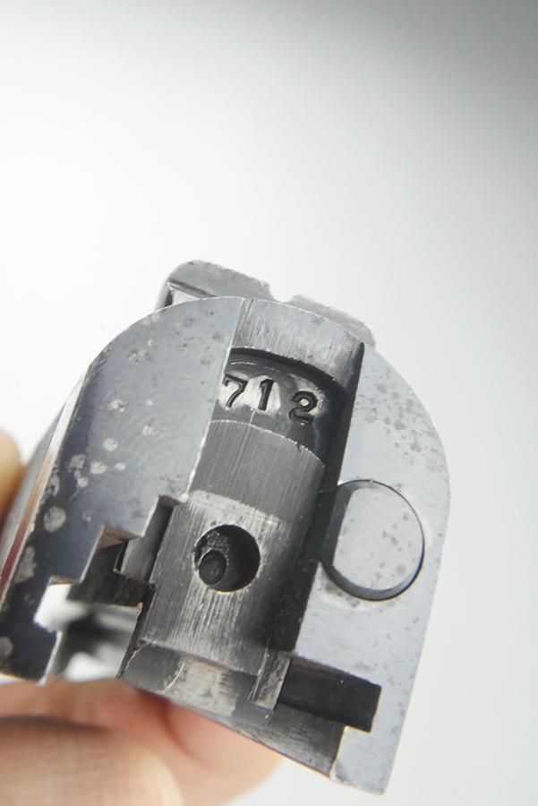 5/17/24 – This is a super rare and original Colt 1911A1 slide from 1938 based off the serial behind the firing pin stop. 1938 is the lowest production year for any 1911 or 1911A1, with only 1,296 produced that year. The serial on this slide is 712,809 – firmly inside the range of 712,350-713,645. The bluing on the slide is original and in very good condition, with minor bluing loss around the front edges and underside of the slide. There is also some minor pitting on the right side of the slide and a little more freckling in the serrations. Correct, large ‘P’ on top of slide.