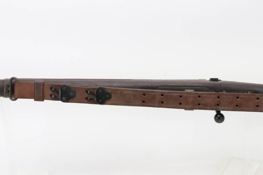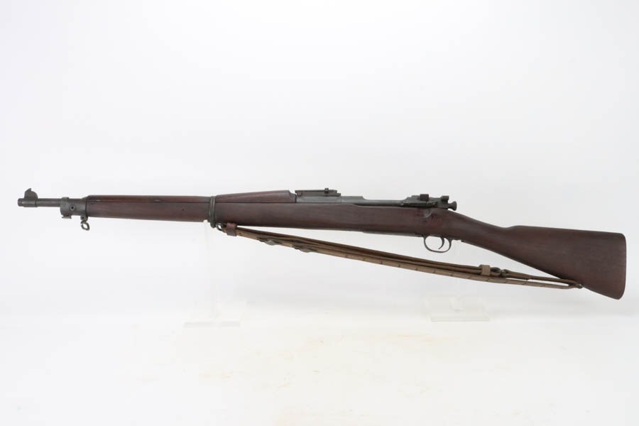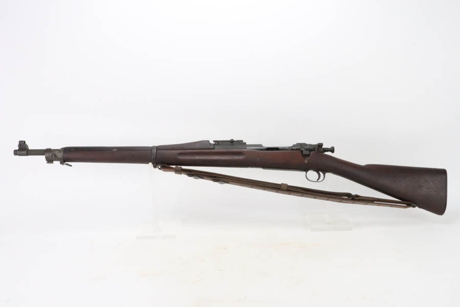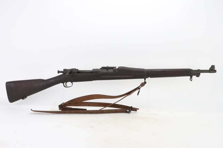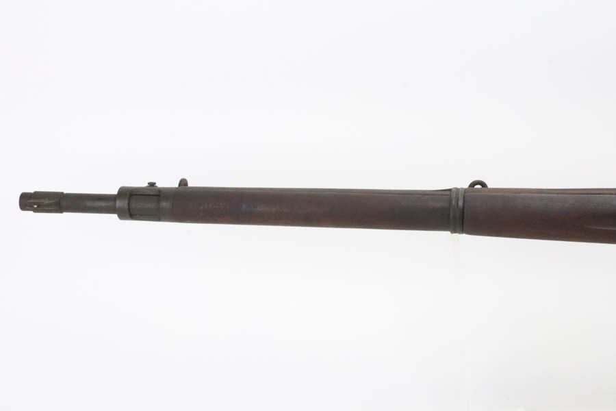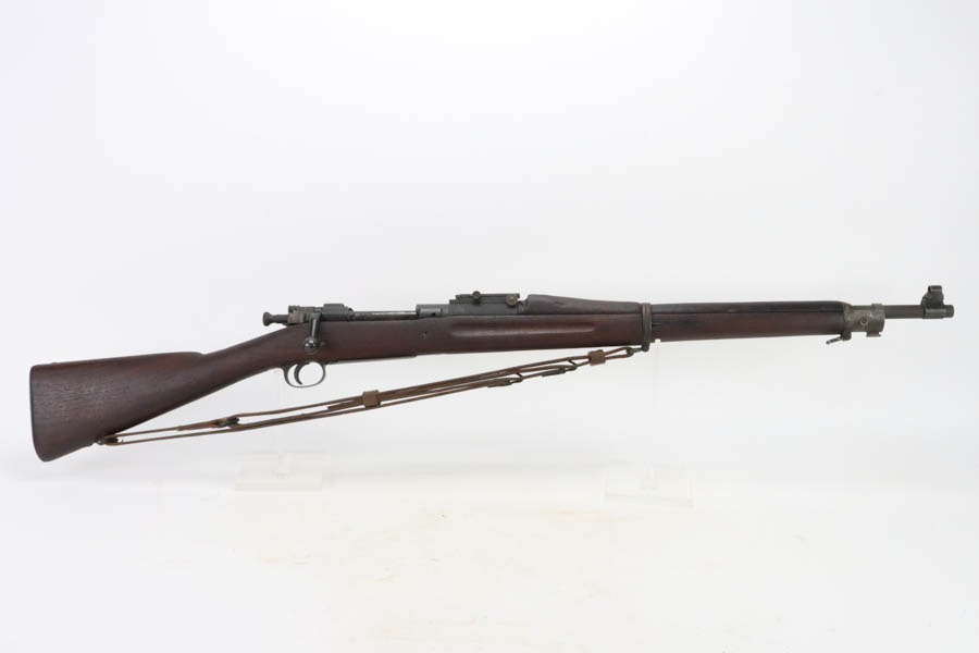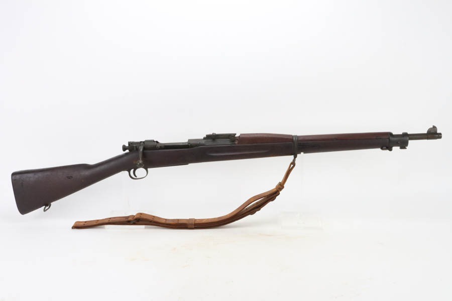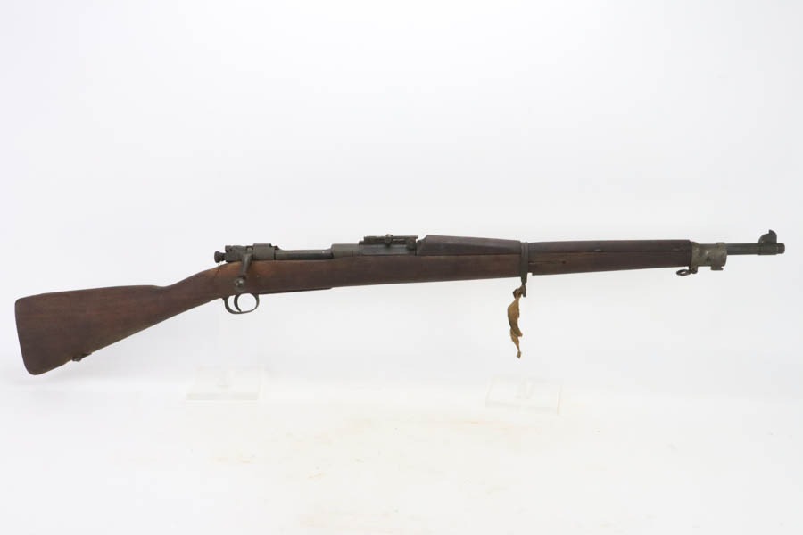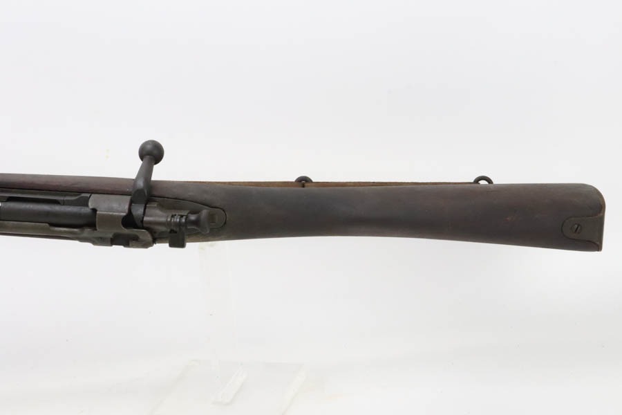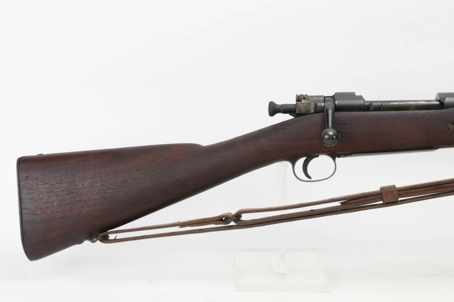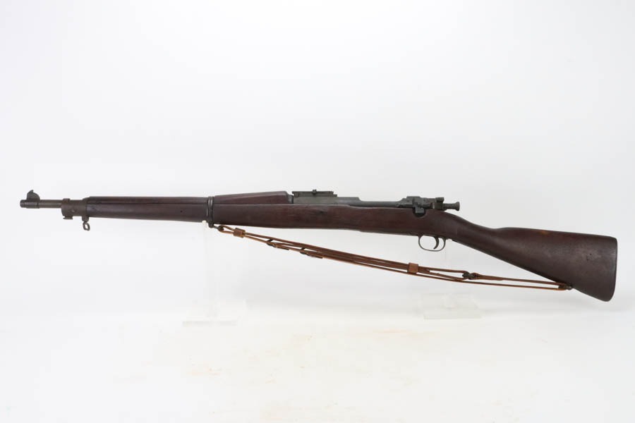 11/4/24 – This is an ultra rare, one-of-a-kind grouping of 10 Springfield Model 1903 rifles in their original Raritan Arsenal wood shipping crate. The crate still has its original Raritan Arsenal shipping label that states the original shipment included 10 pieces – we have all 10 rifles here! Eight of the rifles are unwrapped, but two are still in their original wax paper covering (“mummy guns”). The guns have various manufacture years and various arsenal-replaced parts – the barrels are mostly late WW2, many of the parts are WWI vintage, and a few of the receivers feature hatcher-holes. Five of the guns have period-correct leather slings. Generally, the guns are in very nice, un-issued condition, showing very little sign of actual wear. However, the guns are generally dusty, dirty, and some parts are covered in cosmoline. We are confident the guns will clean up very nice, but we decided to leave them in their original condition and let the buyer decide what they’d like to do with them. There are some spots of oxidation and light rust on some of the metal parts here and there, but nothing major. The wood crate is in pretty nice condition after all these years, but the top lid is split in half. As you can see, it has its original shipping labels and “Rush Railway Express Agency” sticker. Inside the crate are also some cleaning kits, a glass jar of solder, and a few original dog tags from the GI who acquired this grouping. This is a truly unique piece of history that has miraculously stayed together all these years!