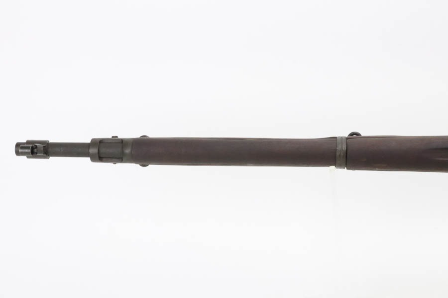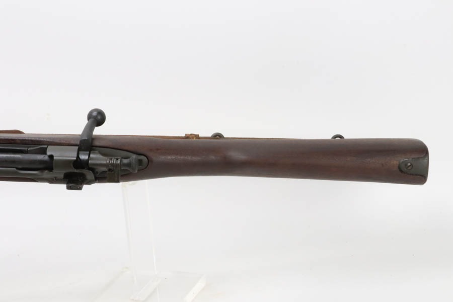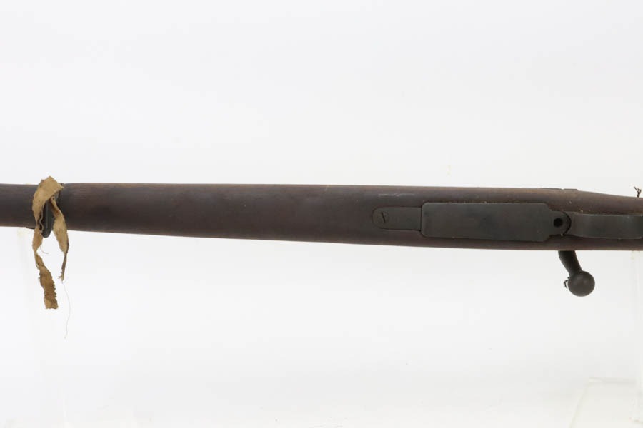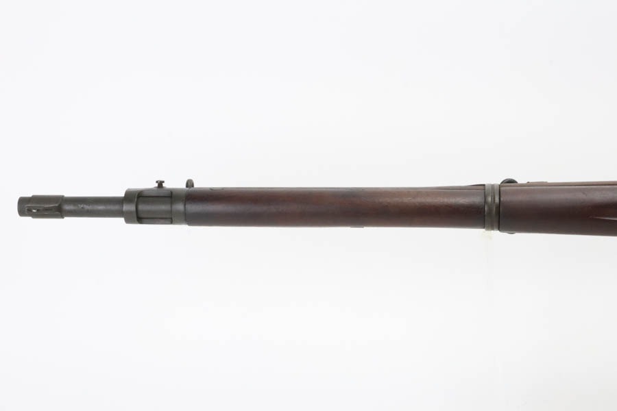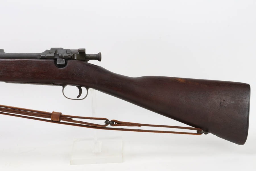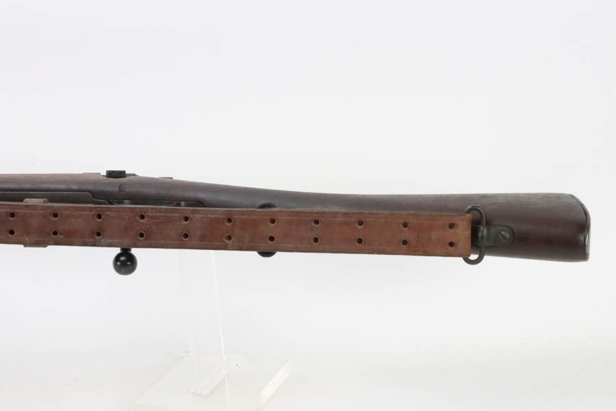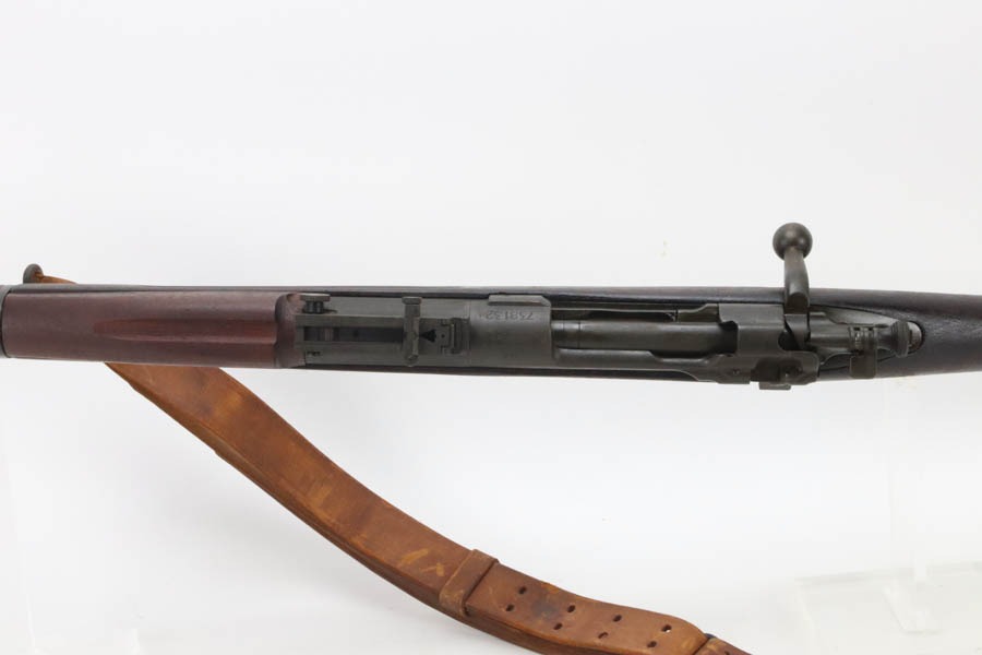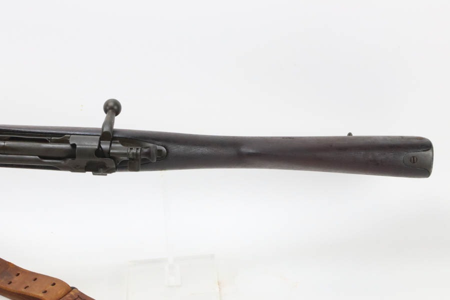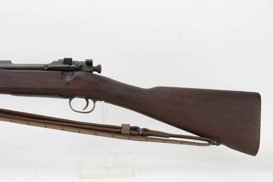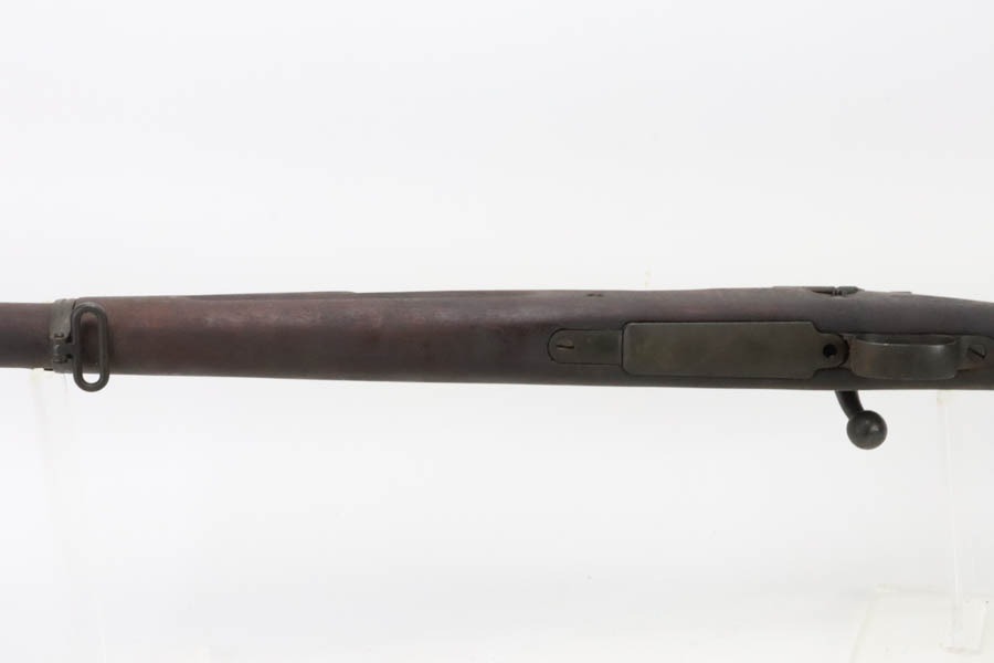 11/4/24 – This is an ultra rare, one-of-a-kind grouping of 10 Springfield Model 1903 rifles in their original Raritan Arsenal wood shipping crate. The crate still has its original Raritan Arsenal shipping label that states the original shipment included 10 pieces – we have all 10 rifles here! Eight of the rifles are unwrapped, but two are still in their original wax paper covering (“mummy guns”). The guns have various manufacture years and various arsenal-replaced parts – the barrels are mostly late WW2, many of the parts are WWI vintage, and a few of the receivers feature hatcher-holes. Five of the guns have period-correct leather slings. Generally, the guns are in very nice, un-issued condition, showing very little sign of actual wear. However, the guns are generally dusty, dirty, and some parts are covered in cosmoline. We are confident the guns will clean up very nice, but we decided to leave them in their original condition and let the buyer decide what they’d like to do with them. There are some spots of oxidation and light rust on some of the metal parts here and there, but nothing major. The wood crate is in pretty nice condition after all these years, but the top lid is split in half. As you can see, it has its original shipping labels and “Rush Railway Express Agency” sticker. Inside the crate are also some cleaning kits, a glass jar of solder, and a few original dog tags from the GI who acquired this grouping. This is a truly unique piece of history that has miraculously stayed together all these years!