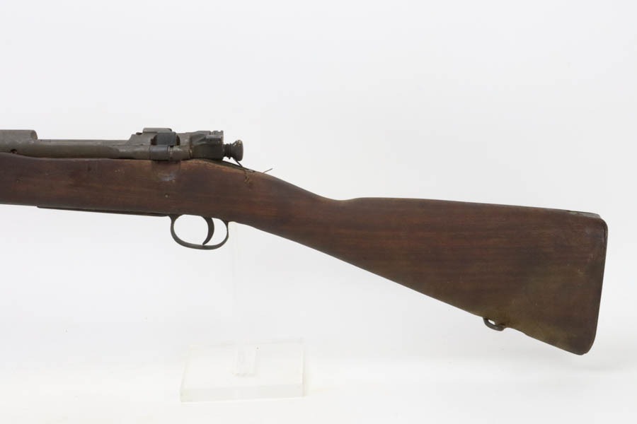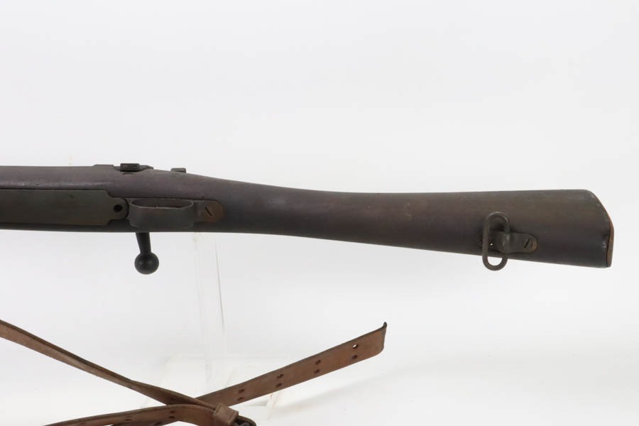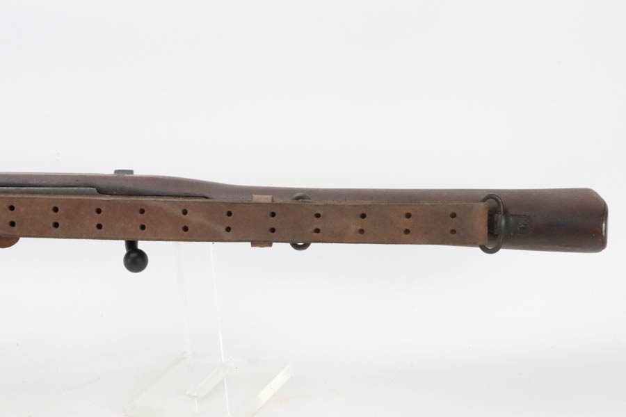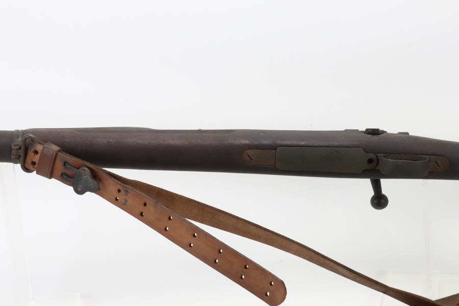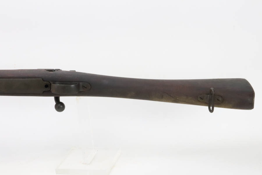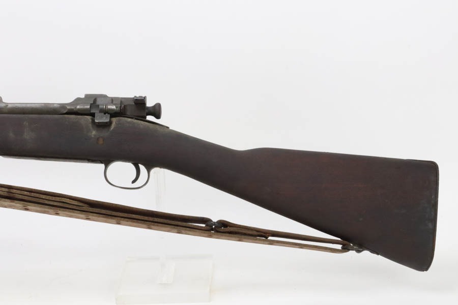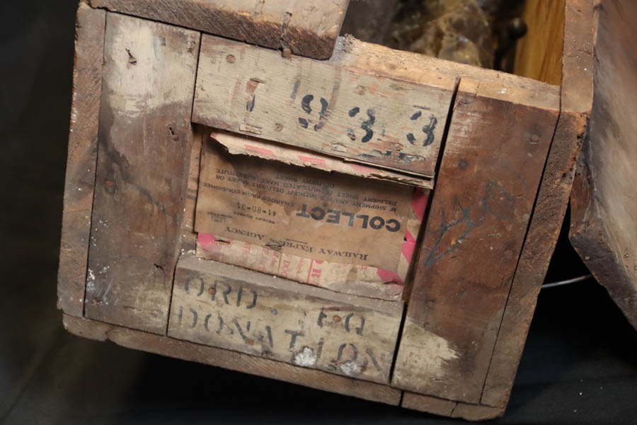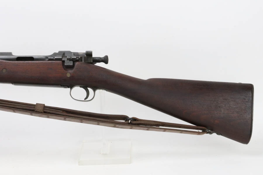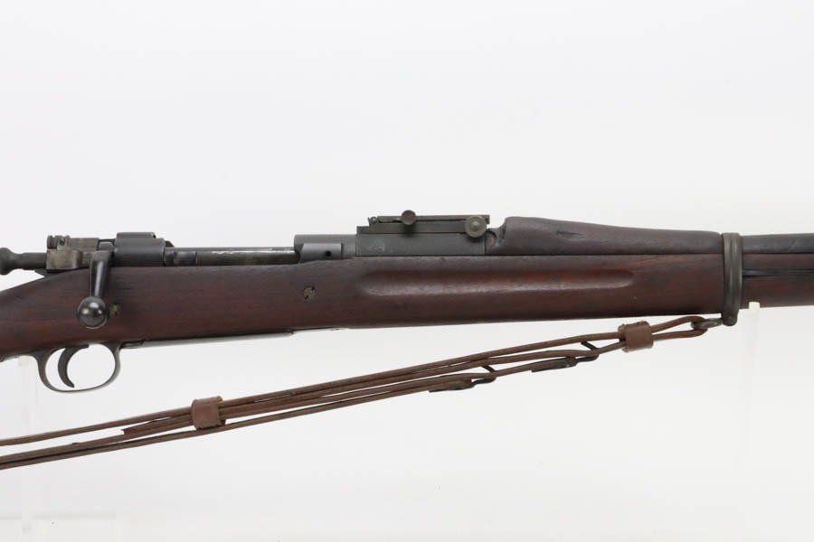 11/4/24 – This is an ultra rare, one-of-a-kind grouping of 10 Springfield Model 1903 rifles in their original Raritan Arsenal wood shipping crate. The crate still has its original Raritan Arsenal shipping label that states the original shipment included 10 pieces – we have all 10 rifles here! Eight of the rifles are unwrapped, but two are still in their original wax paper covering (“mummy guns”). The guns have various manufacture years and various arsenal-replaced parts – the barrels are mostly late WW2, many of the parts are WWI vintage, and a few of the receivers feature hatcher-holes. Five of the guns have period-correct leather slings. Generally, the guns are in very nice, un-issued condition, showing very little sign of actual wear. However, the guns are generally dusty, dirty, and some parts are covered in cosmoline. We are confident the guns will clean up very nice, but we decided to leave them in their original condition and let the buyer decide what they’d like to do with them. There are some spots of oxidation and light rust on some of the metal parts here and there, but nothing major. The wood crate is in pretty nice condition after all these years, but the top lid is split in half. As you can see, it has its original shipping labels and “Rush Railway Express Agency” sticker. Inside the crate are also some cleaning kits, a glass jar of solder, and a few original dog tags from the GI who acquired this grouping. This is a truly unique piece of history that has miraculously stayed together all these years!