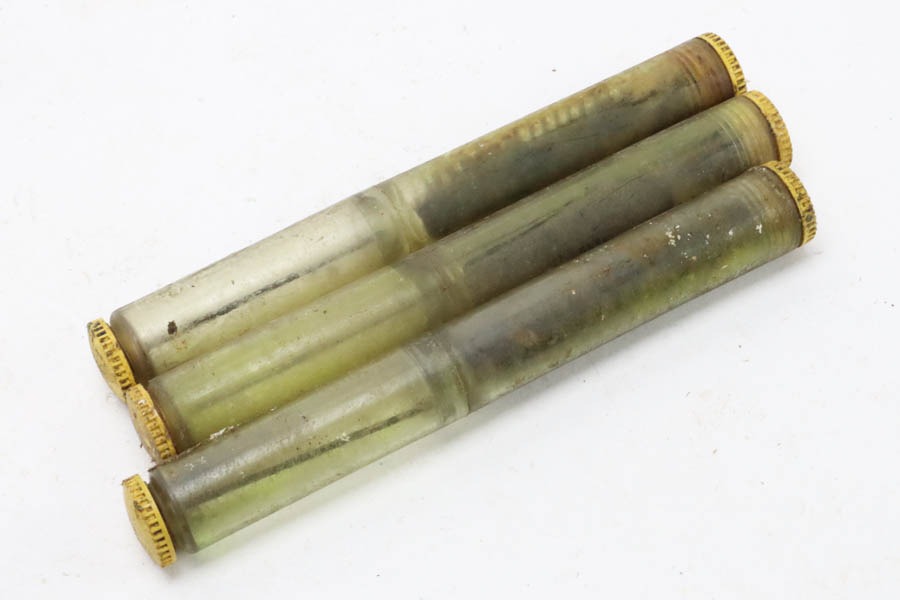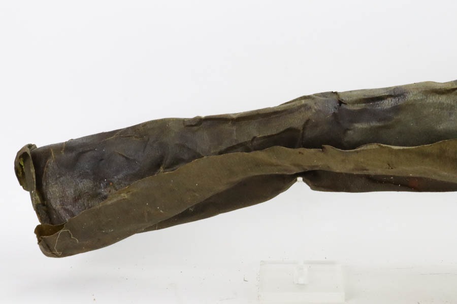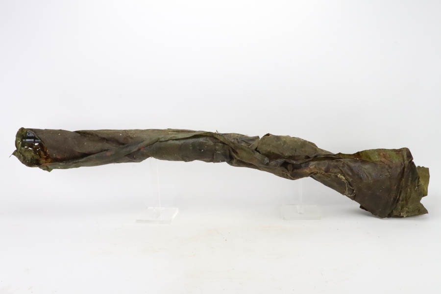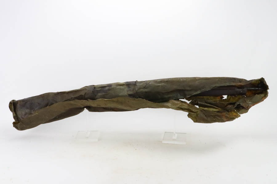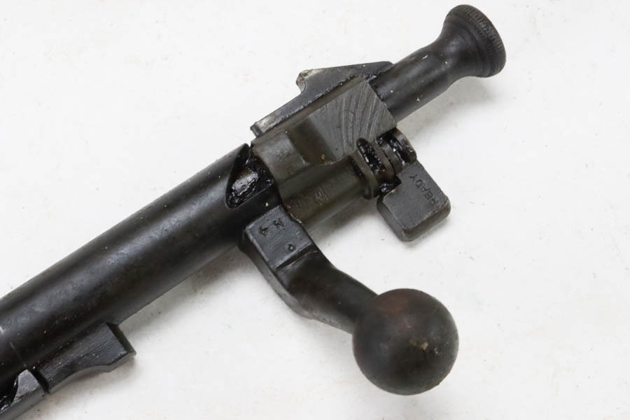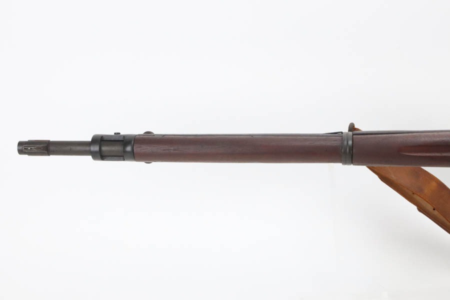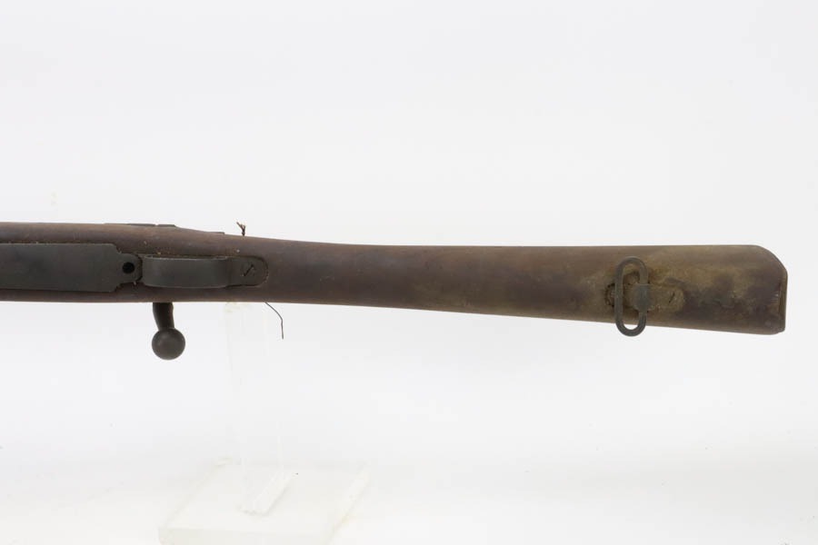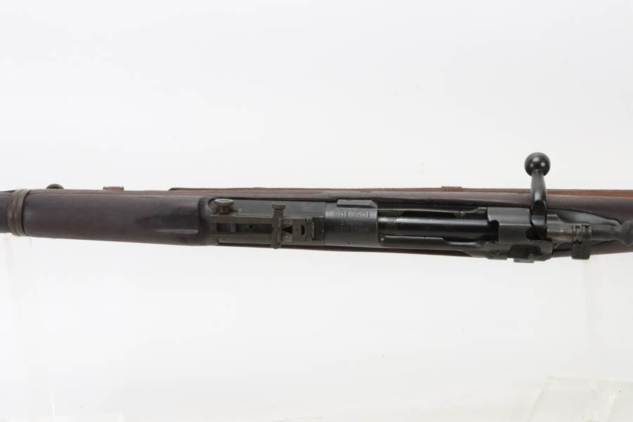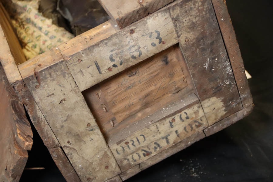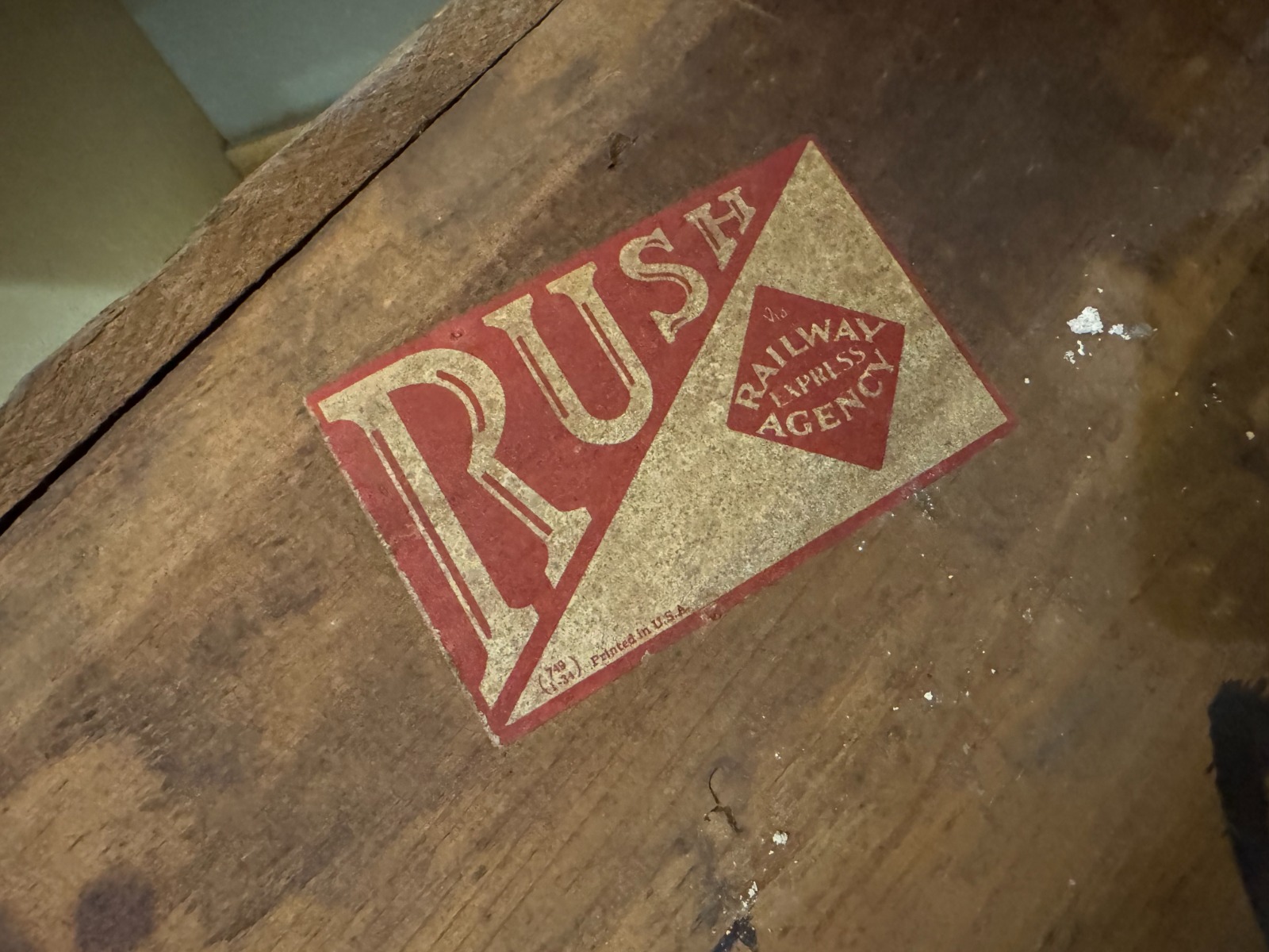 11/4/24 – This is an ultra rare, one-of-a-kind grouping of 10 Springfield Model 1903 rifles in their original Raritan Arsenal wood shipping crate. The crate still has its original Raritan Arsenal shipping label that states the original shipment included 10 pieces – we have all 10 rifles here! Eight of the rifles are unwrapped, but two are still in their original wax paper covering (“mummy guns”). The guns have various manufacture years and various arsenal-replaced parts – the barrels are mostly late WW2, many of the parts are WWI vintage, and a few of the receivers feature hatcher-holes. Five of the guns have period-correct leather slings. Generally, the guns are in very nice, un-issued condition, showing very little sign of actual wear. However, the guns are generally dusty, dirty, and some parts are covered in cosmoline. We are confident the guns will clean up very nice, but we decided to leave them in their original condition and let the buyer decide what they’d like to do with them. There are some spots of oxidation and light rust on some of the metal parts here and there, but nothing major. The wood crate is in pretty nice condition after all these years, but the top lid is split in half. As you can see, it has its original shipping labels and “Rush Railway Express Agency” sticker. Inside the crate are also some cleaning kits, a glass jar of solder, and a few original dog tags from the GI who acquired this grouping. This is a truly unique piece of history that has miraculously stayed together all these years!