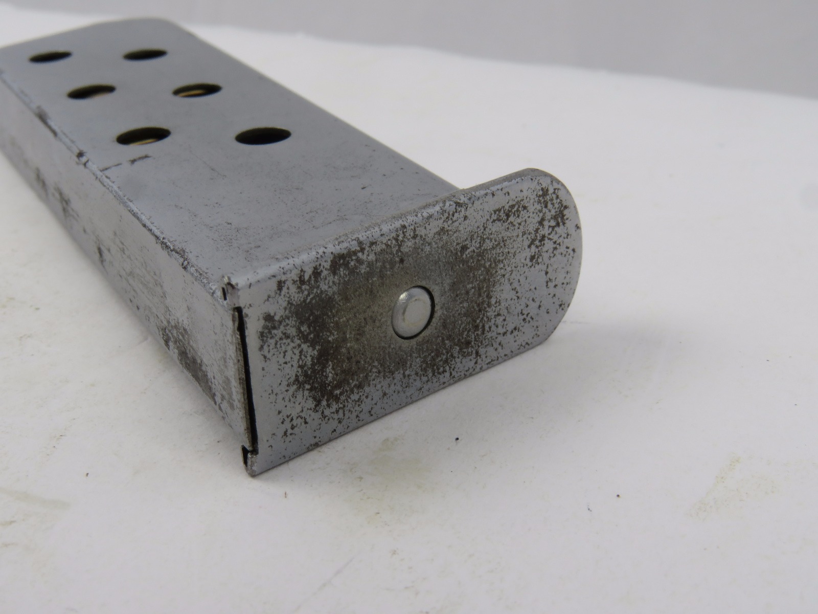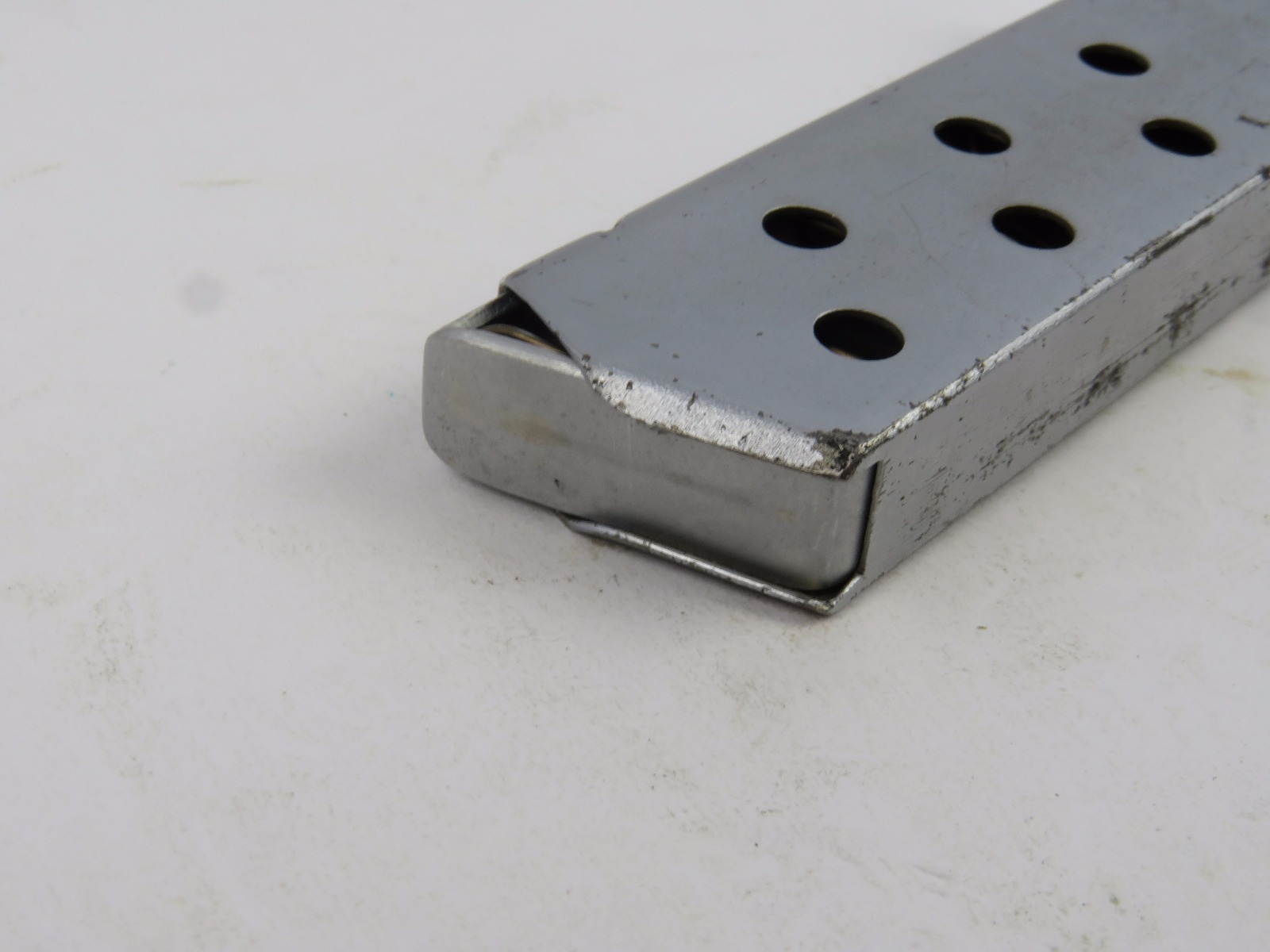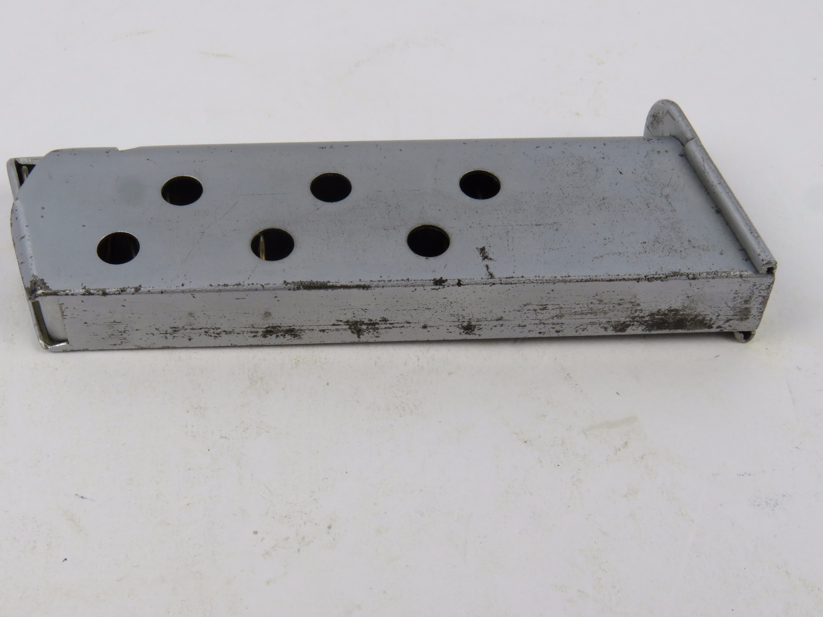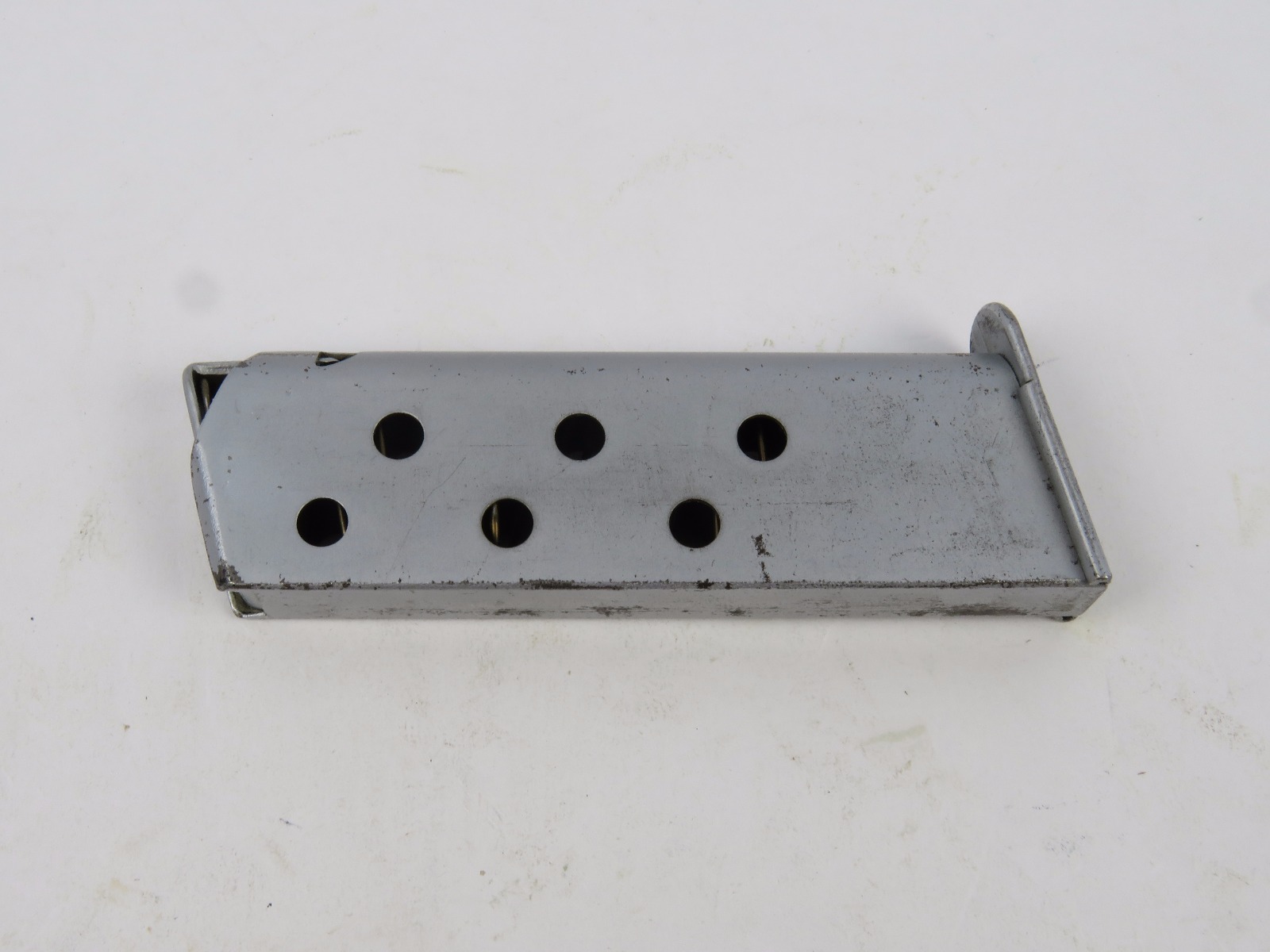 9/20/17 – This is an original WW2 Walther PPK magazine, in very rare Verchromt finish. The verchromt finish is a dull satin that was experimental for the expected wear and abuse a pistol might undergo during wartime. This magazine has a strong, fully functional spring with completely verchromt frame, floorplate, and follower. There is some wear as shown in photos, but overall this is in good condition and guaranteed original.