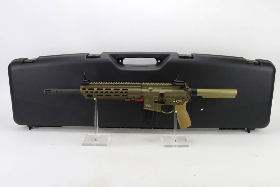 06/12/2024 – For sale is a very rare H&K MR223 Pistol chambered in .223 Remington. These were being imported a few years ago by H&K but had the import revoked due to legal reasons so no more have been imported since. The pistol is in a gorgeous metallic FDE color (anodized RAL 8000) and the finish is excellent. There are no handling marks or scratches visible on the finish. The bore is mirror bright and excellent. The pistol comes with one 20 round HK marked magazine and the original hard case and accessories.