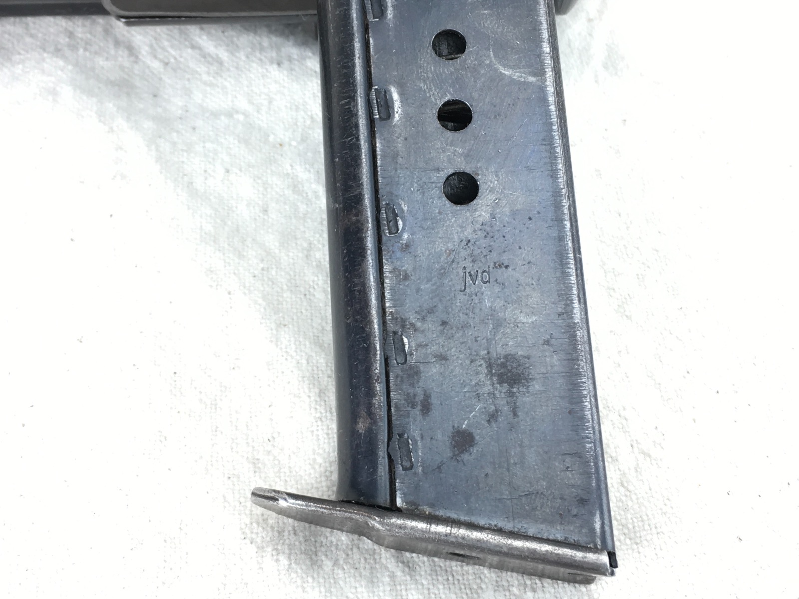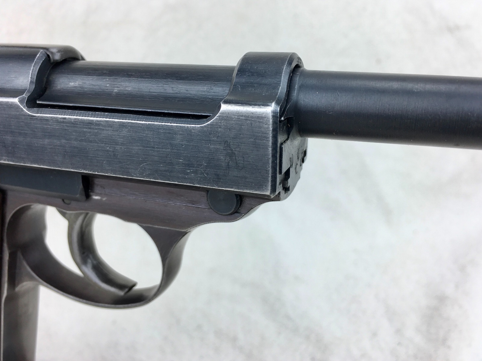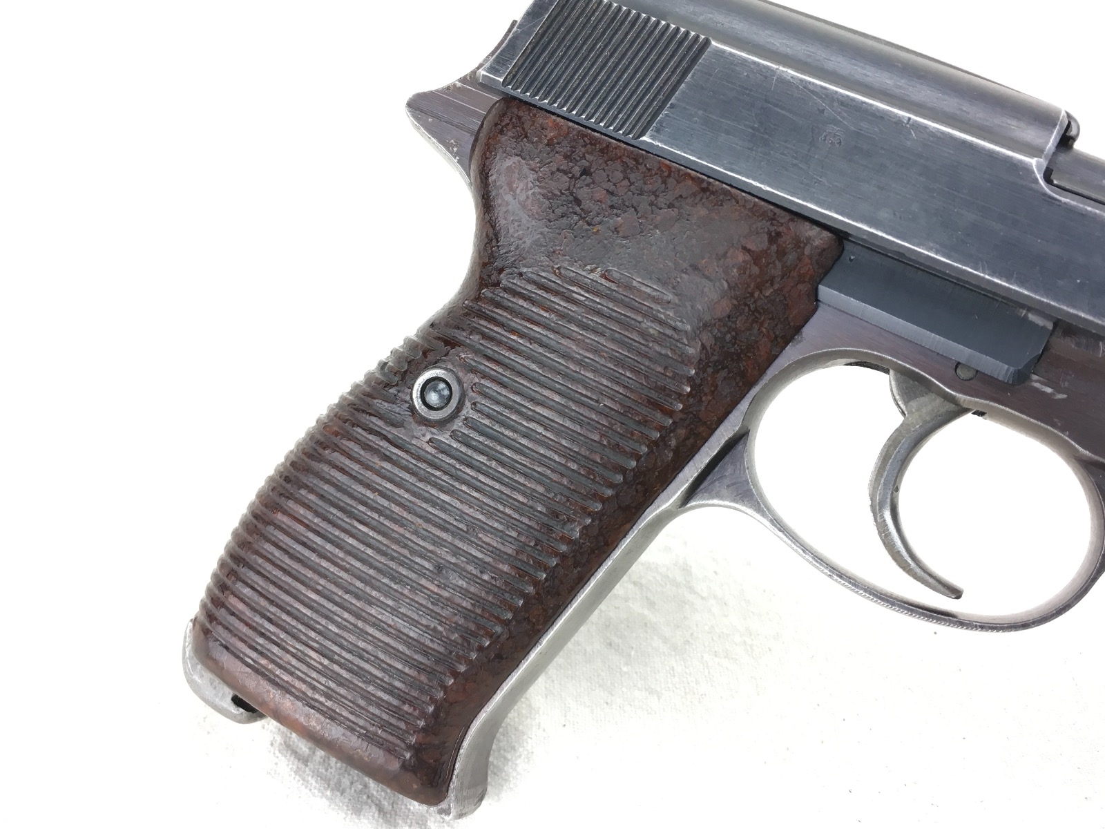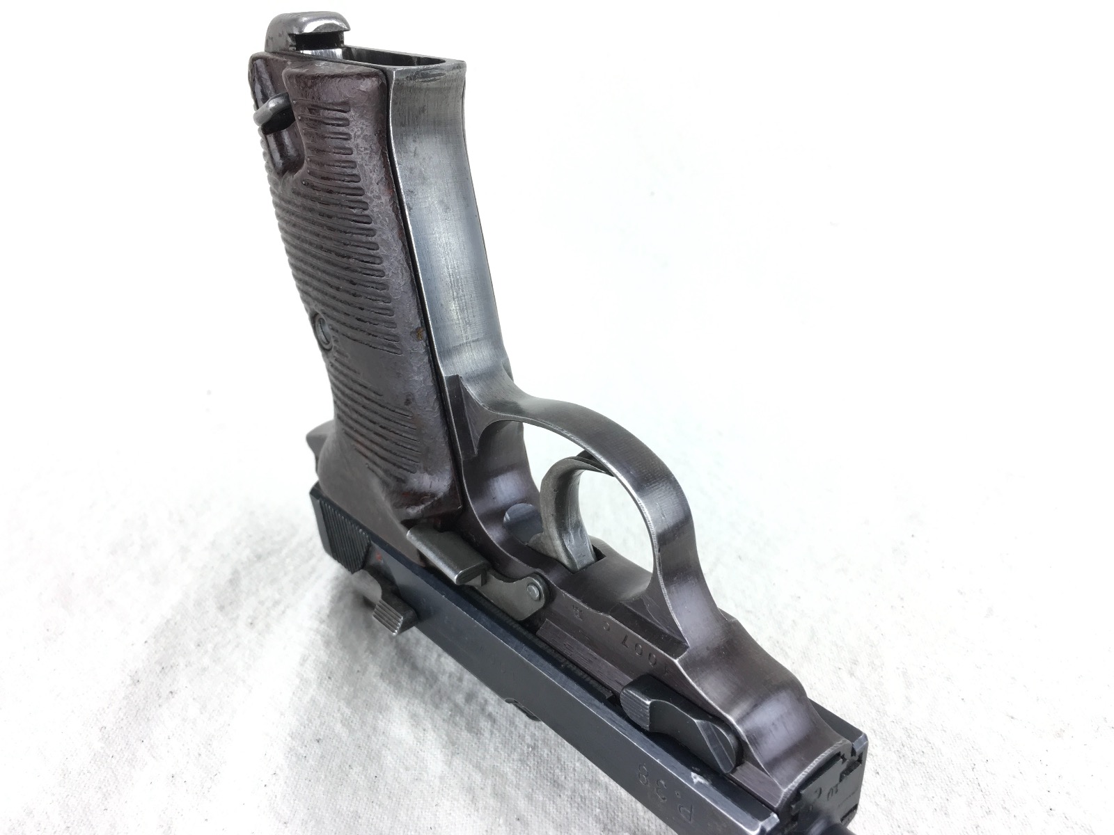 1/8/19 – This is an original late WW2 production Walther AC 45 pistol. The pistol is in about 95% overall condition with some normal edge wear, and light thinning on the slide as well as some more significant bluing loss on the front strap. The pistol is all correct and fully functional with a minty bore. Cog hammer is correct late war part. Has some late/end of war phosphate small parts – as shown in photos (rear sight, slide stop, safety, and magazine release). All matching numbers. Nice plum color on the frame. Grips are in excellent condition with no chips or cracks. Guaranteed original and authentic.