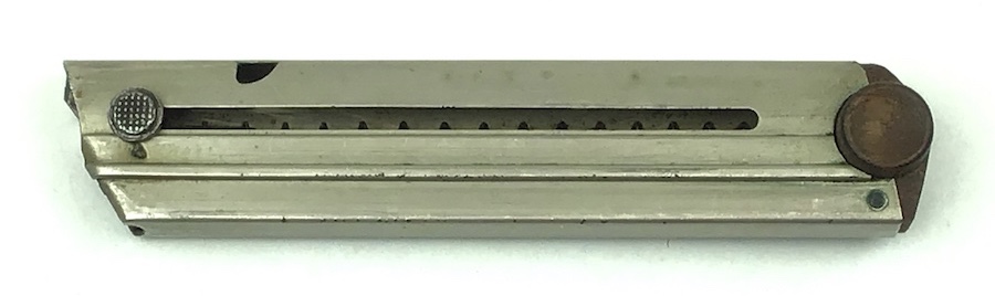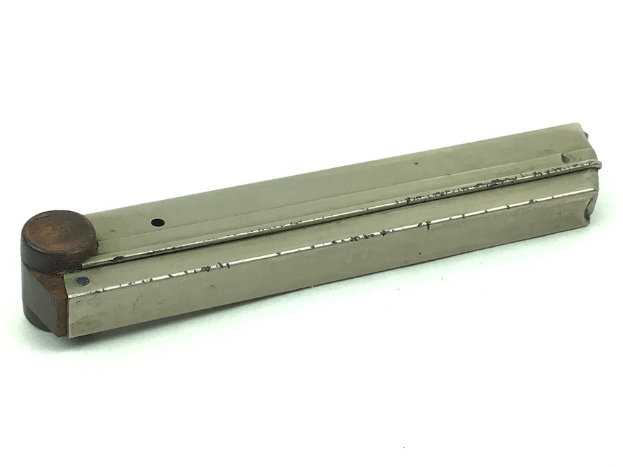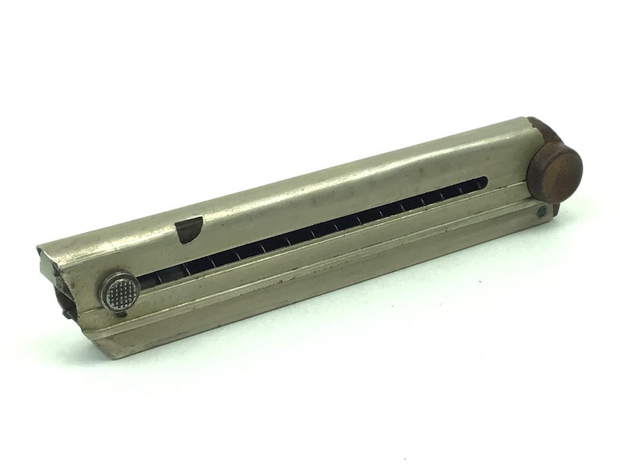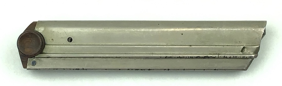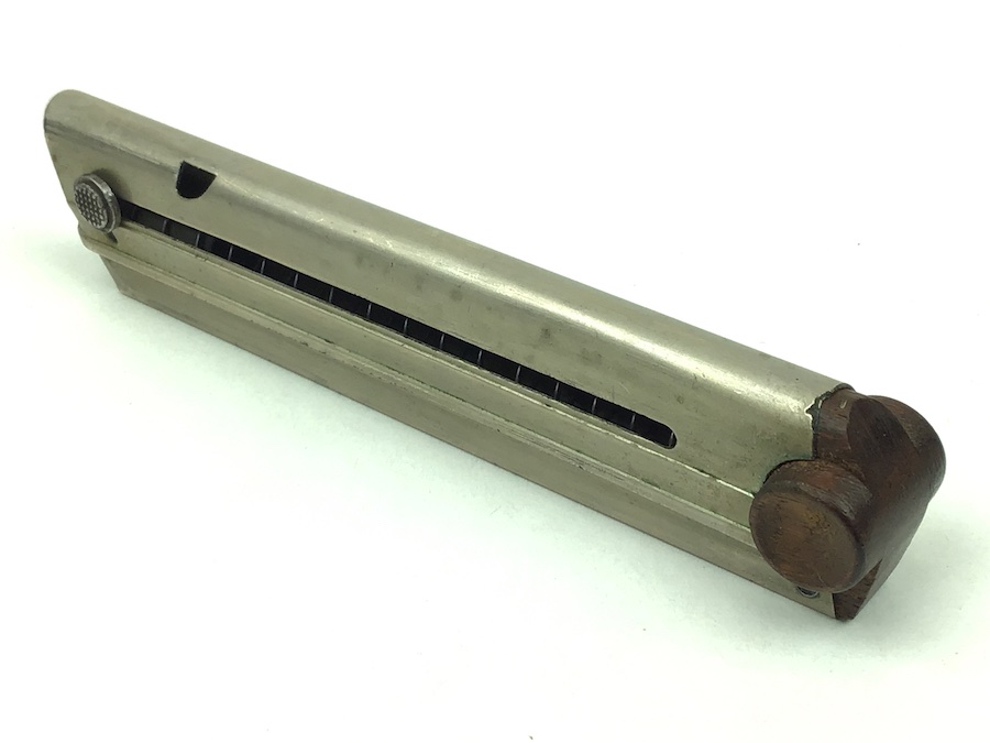 5/4/20 – Original and great condition, commercial WWI era Luger magazine. These are scarce and hard to come by. The wood base is completely intact with no serial number or markings. The nickel tube has some light surface wear but it is also in great shape. Overall excellent. Fully functional and strong spring.