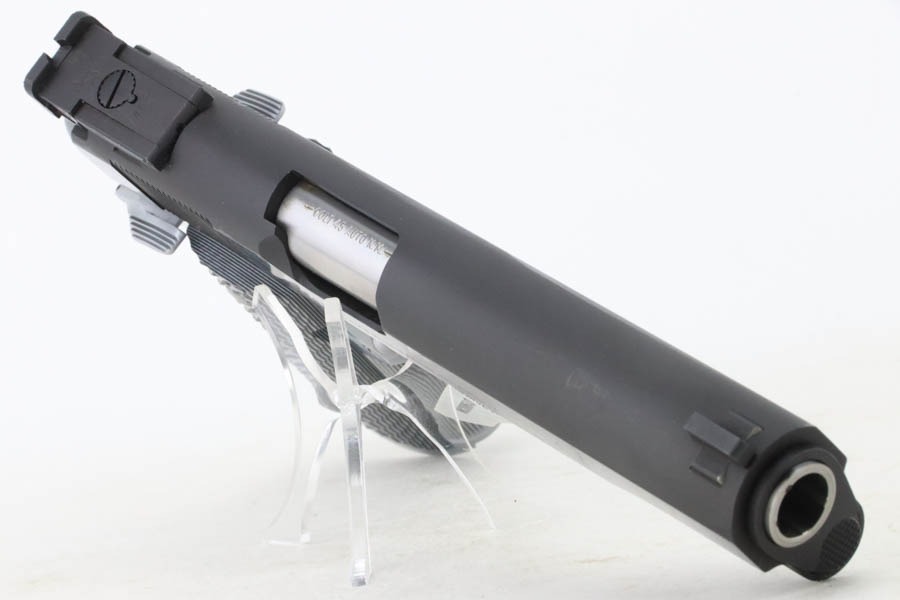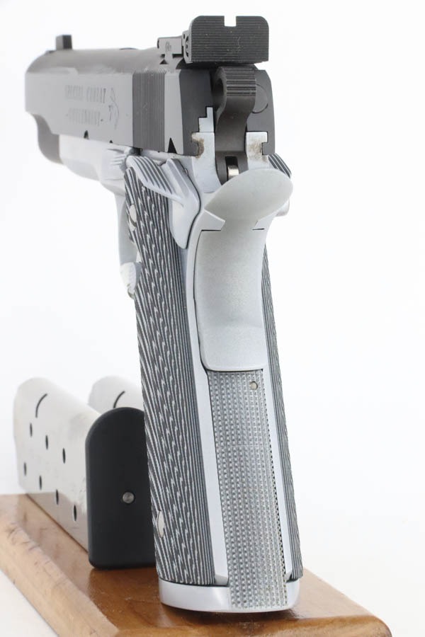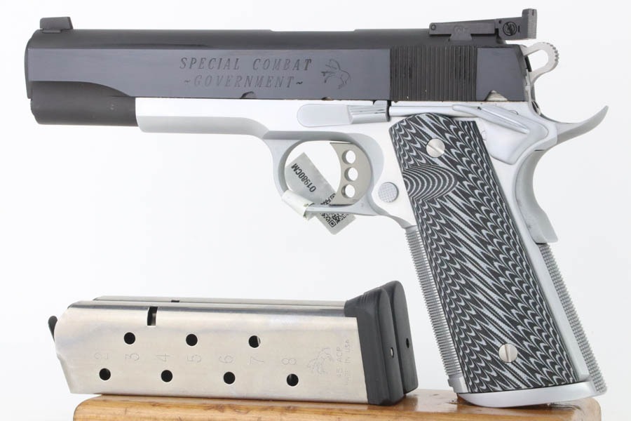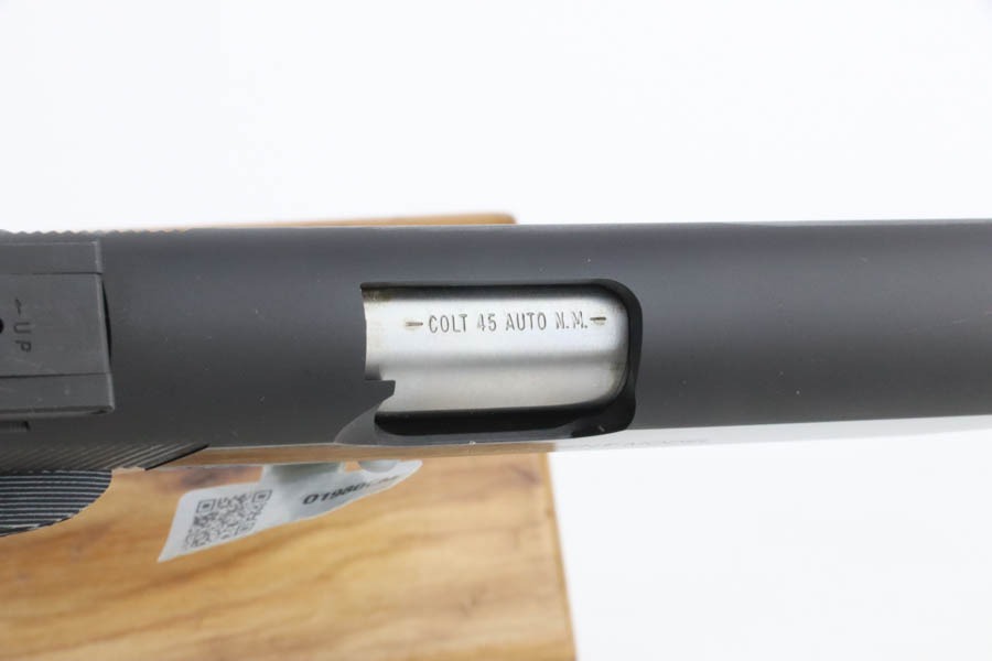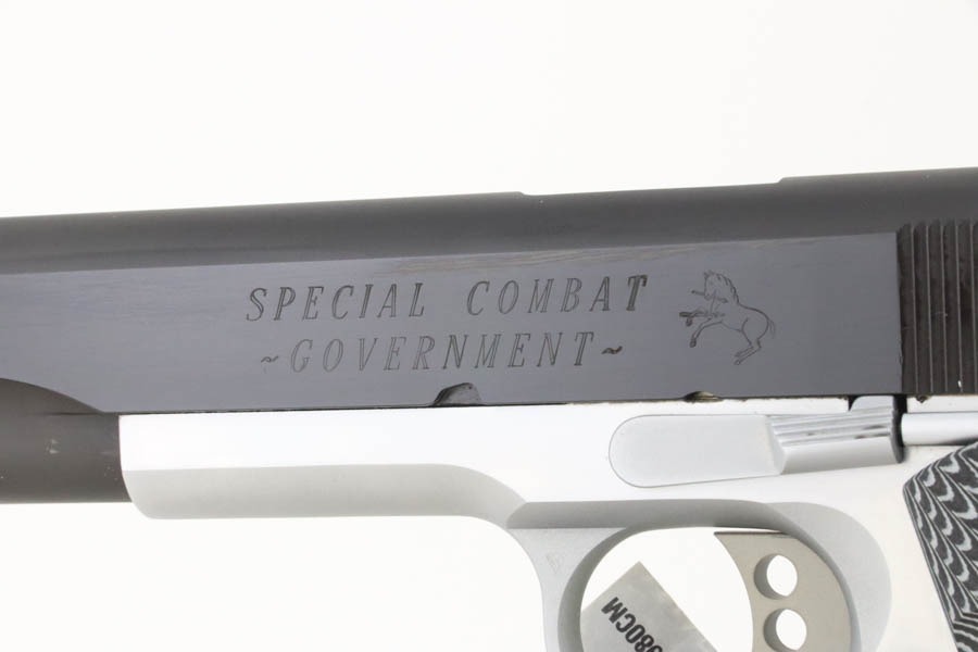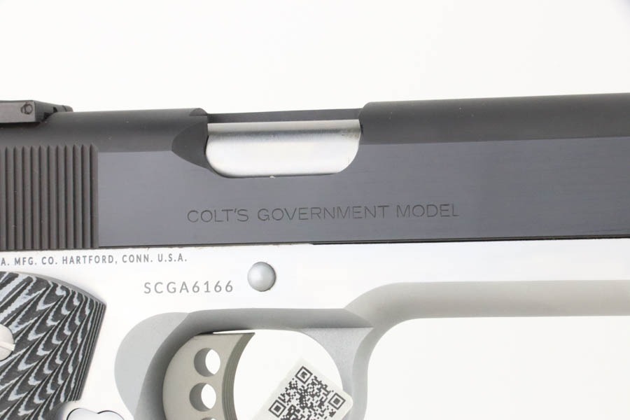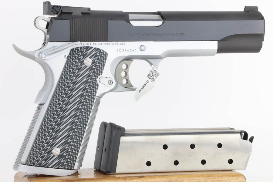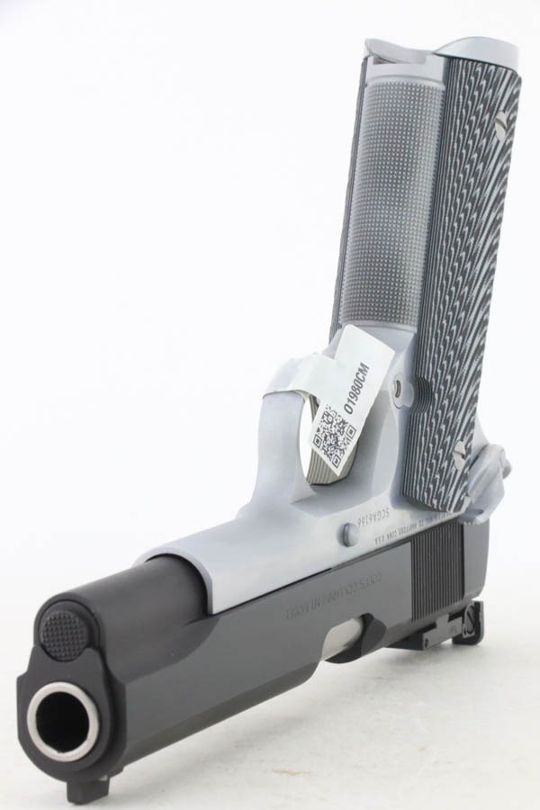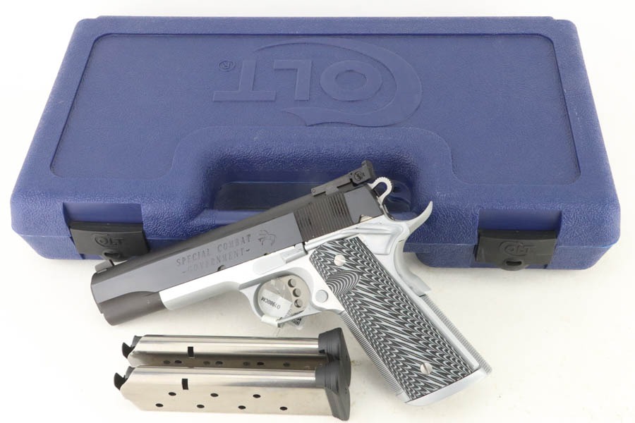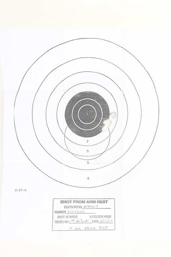 11/15/24 – This is an excellent Boxed Colt Combat Government Competition Model in like new condition. The bore on this pistol is minty and appears to be in unfired condition. The pistol still has its factory paper hang tag on the trigger guard. Given the condition of the bore, and the presence of this tag , we believe that this pistol has not been fired since it’s factory test shots. The finish condition on this pistol is excellent and it retains 99-100% of its original finish. This pistol comes with it’s original Colt branded hard case, factory paperwork, 2 magazines and its gun lock. Both the factory hard case and the test target match the serial number of the pistol.
