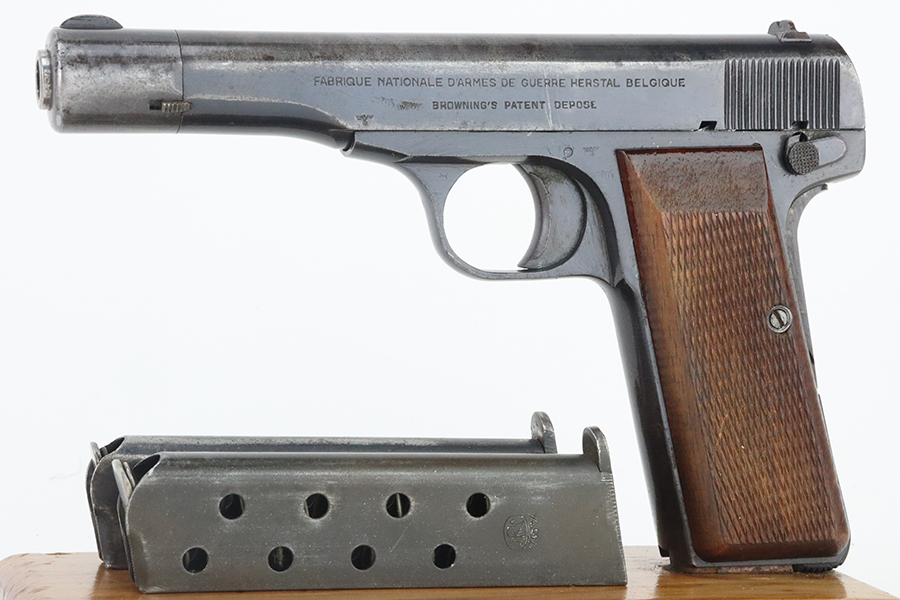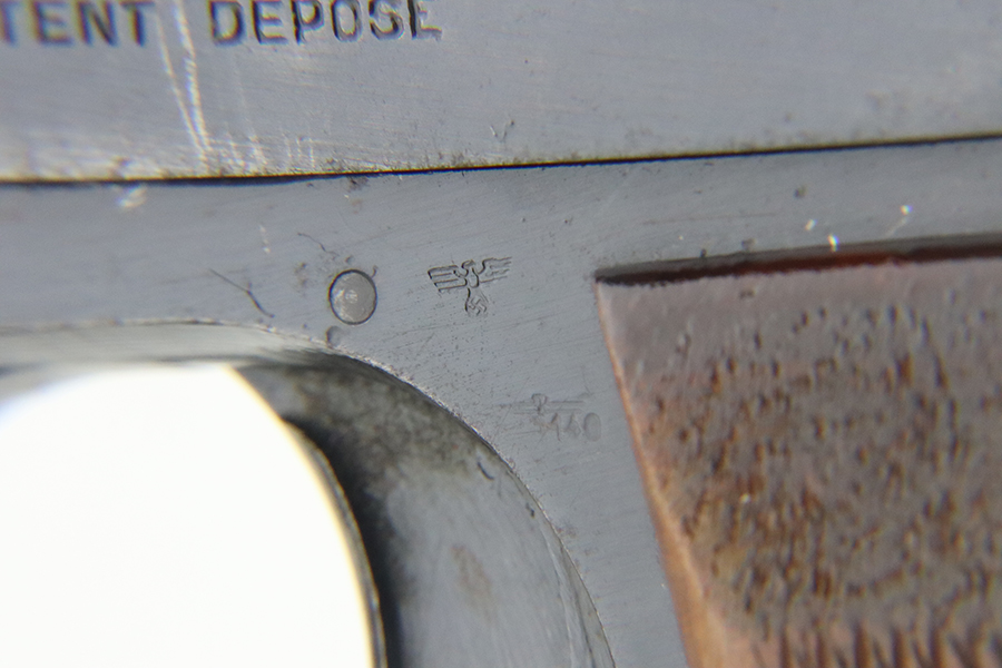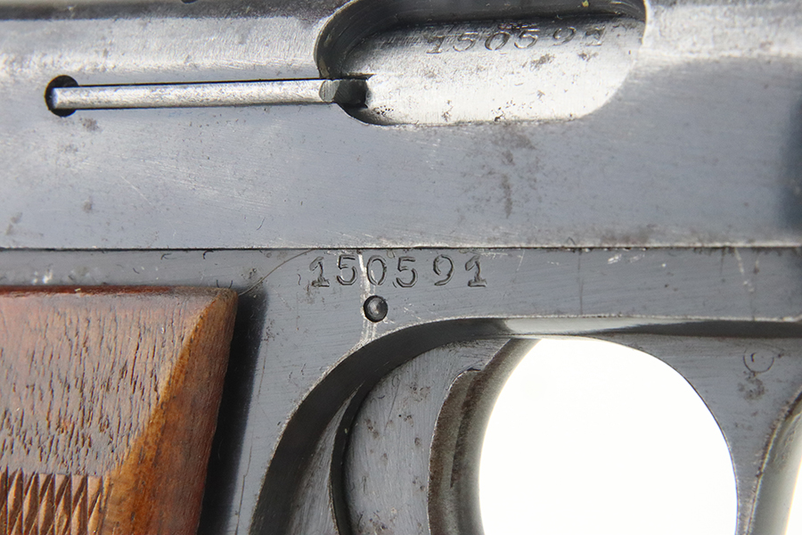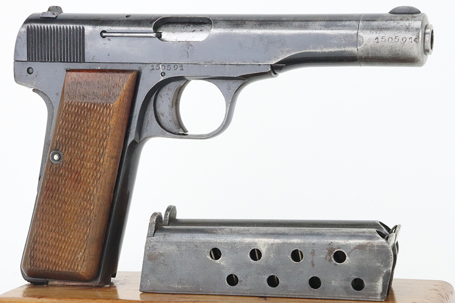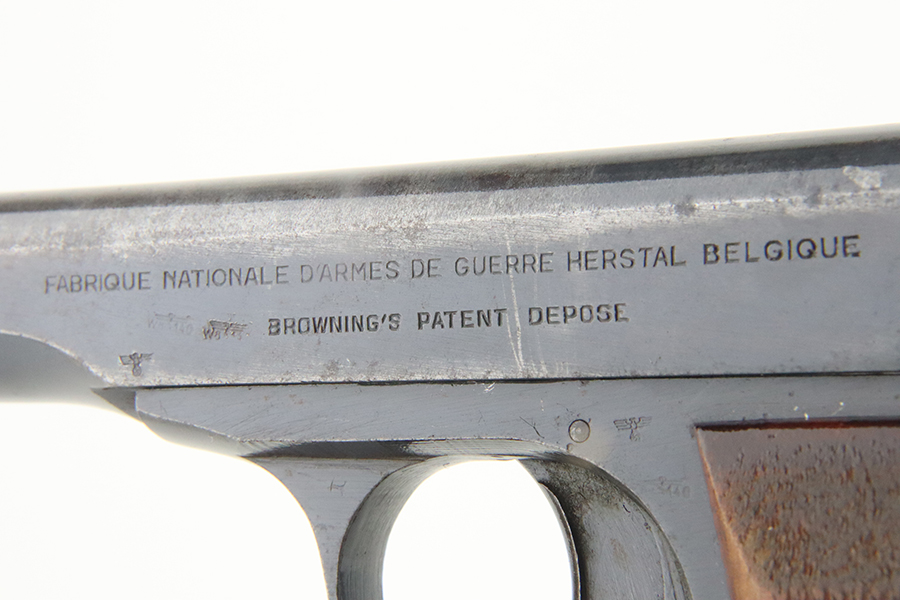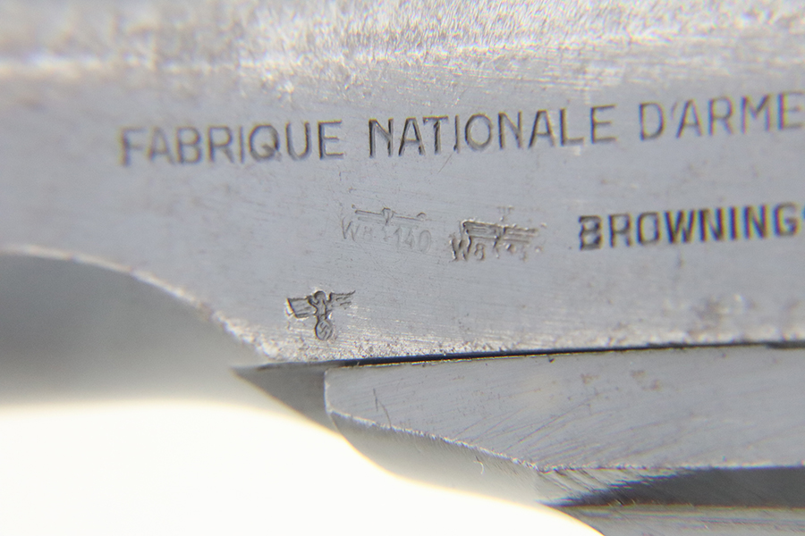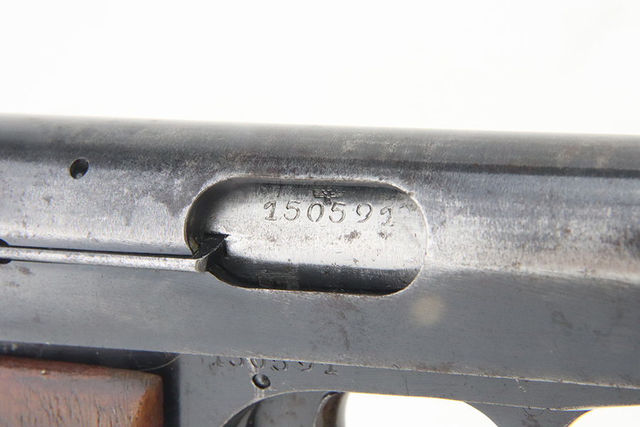 07/18/2024 – For sale is a FN Model 1922 pistol used by the German Army during WW2. The pistol is in nice condition overall with a lot of the original bluing remaining. There are areas of finish loss visible in the photos throughout the firearm, especially on the barrel sleeve. The handgun is marked Eagle/WaA140 on the slide and frame. The pistol is matching throughout on the frame, slide, barrel, and barrel sleeve. The pistol comes with 7 wartime magazines and one magazine is stamped Eagle/WaA140.