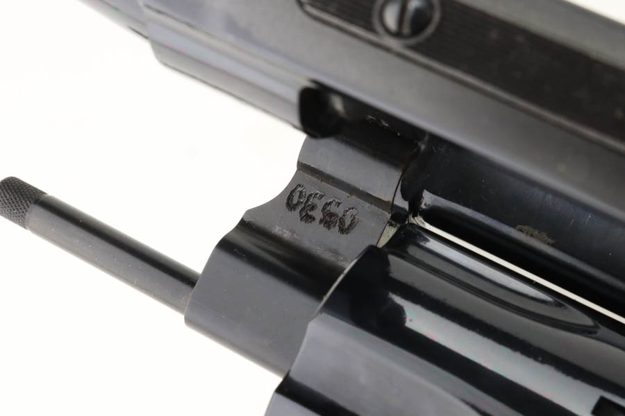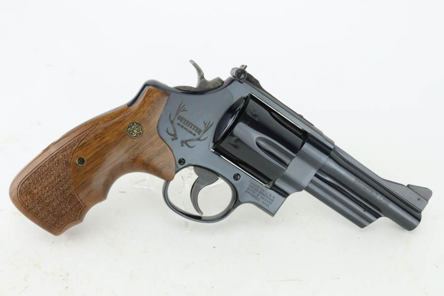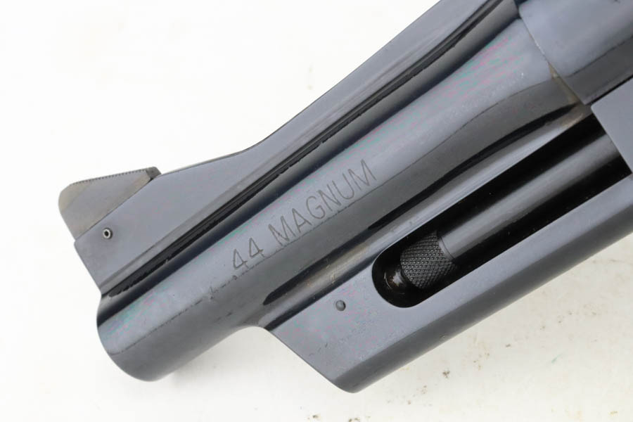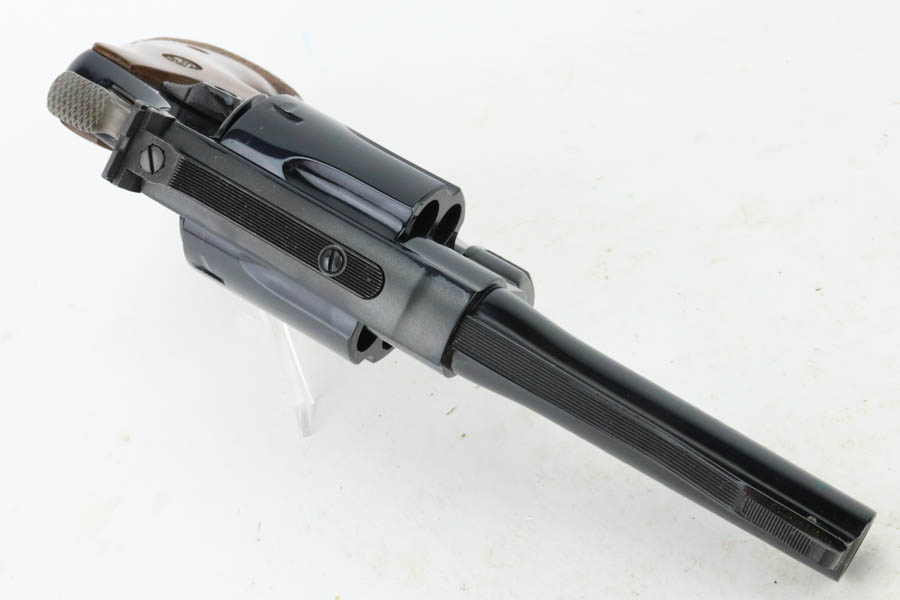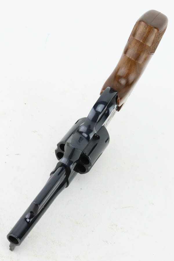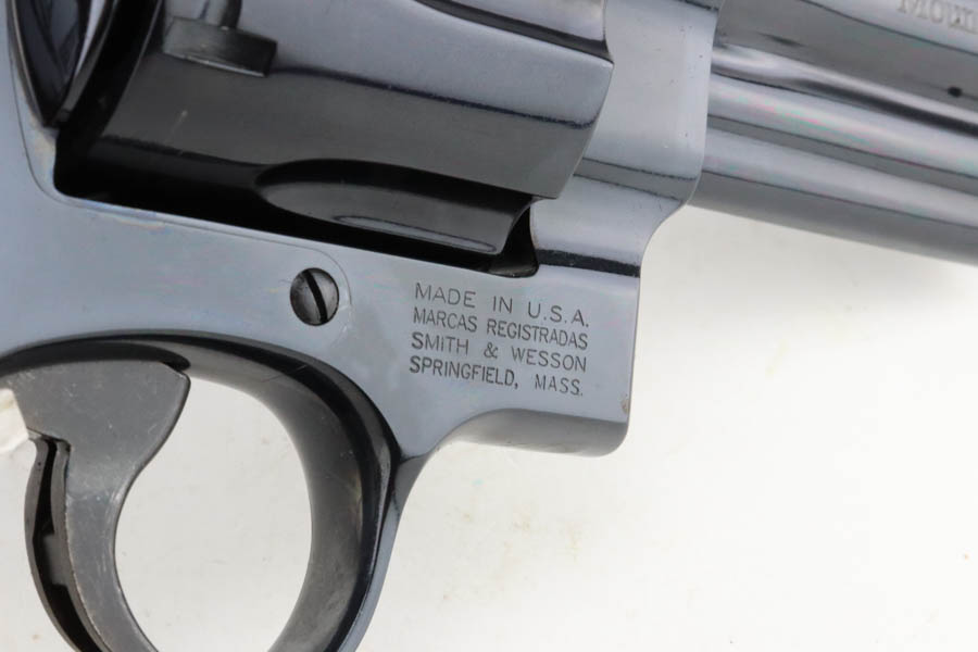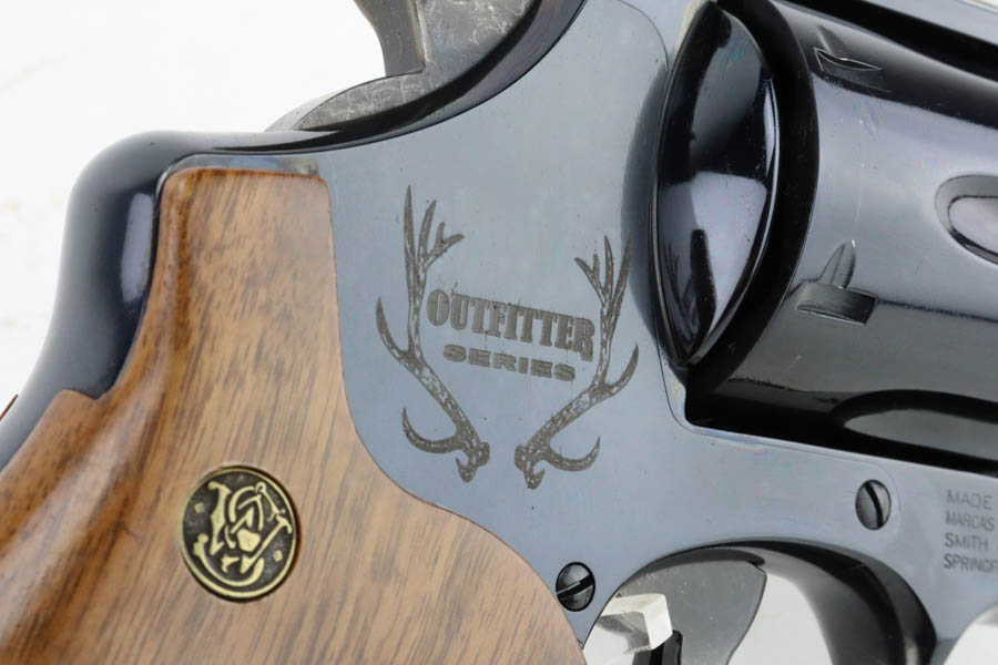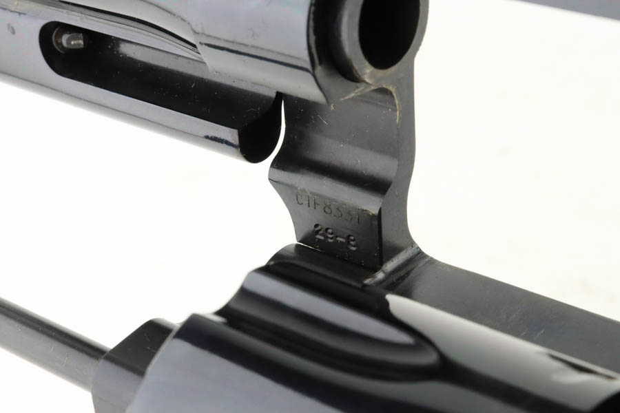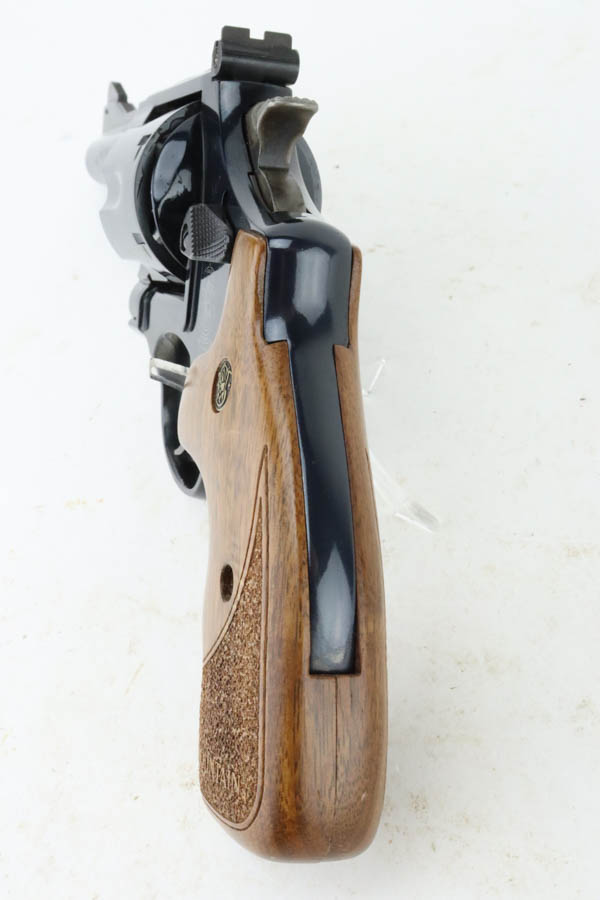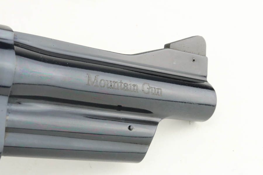 7/16/24 – This is a Smith & Wesson Model 29-8 Mountain Gun “Outfitter Series” Revolver, chambered in .44 Magnum. 4″ barrel. It has retained essentially all of its high polish bluing with just a very light roll mark on the cylinder and a couple of tiny surface scratches on the left side. Fitted with excellent wood grips. Mint bore. Smooth action.