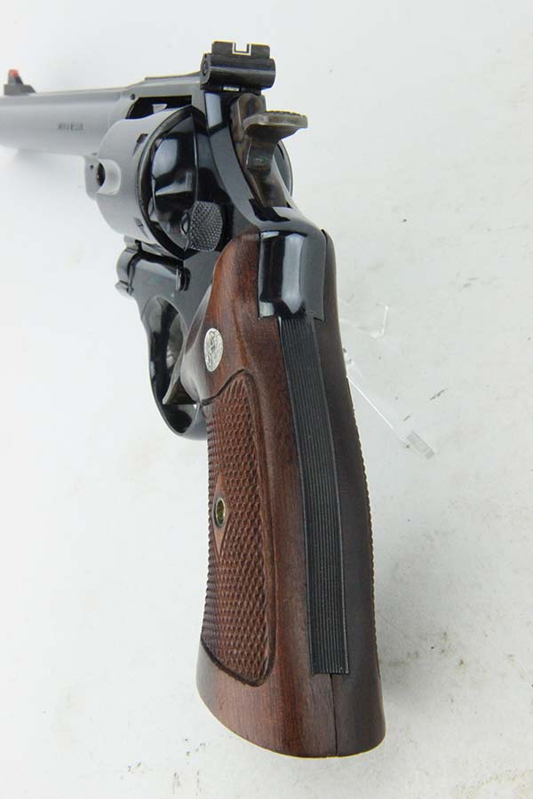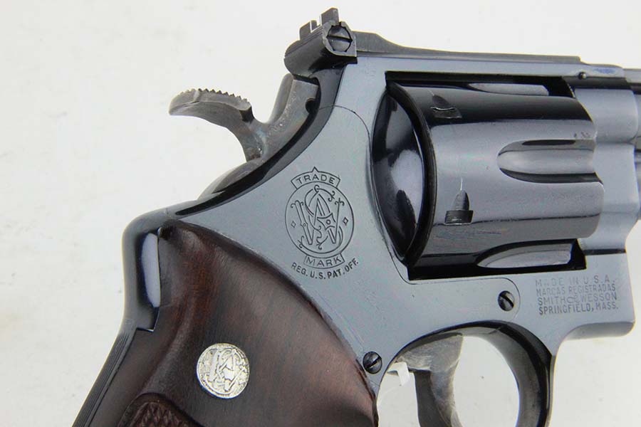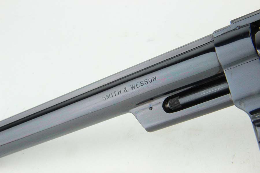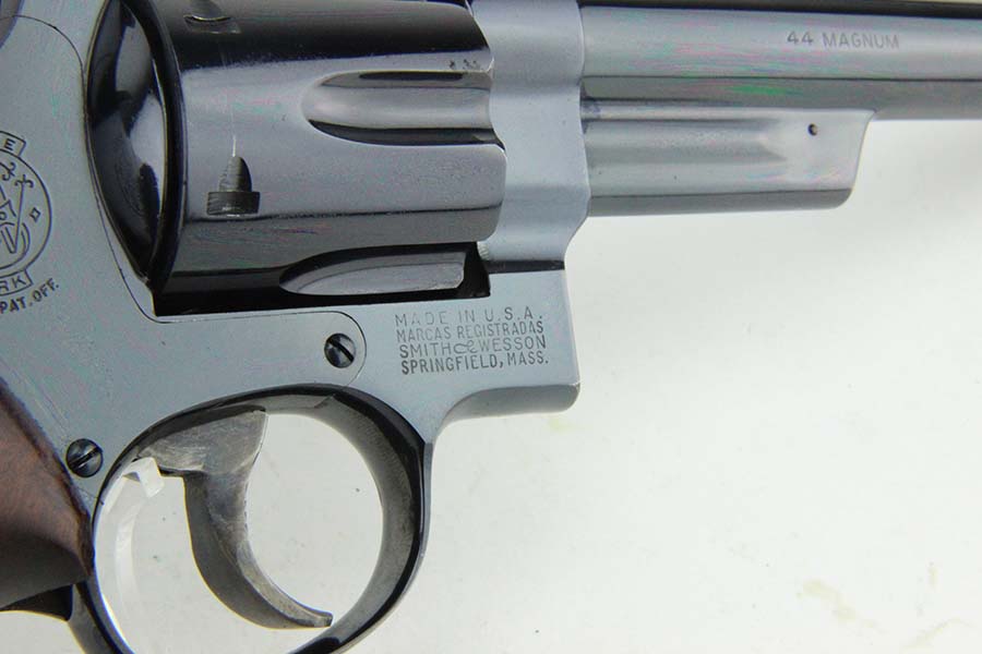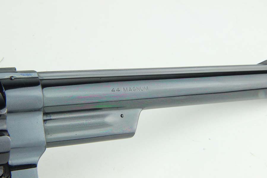 08/12/2024 – For sale is a Smith & Wesson Model 29 revolver chambered in .44 Magnum and with a 8 1/4″ barrel. The revolver has an excellent high polished finish with some minor spots of finish loss visible. There is one spot above the trigger on the left side, on the front sight blade and muzzle. The wood grips are excellent with no cracks or breaks. The bore is very bright with great rifling, though there are some streaks visible from use and should be able to be cleaned out. The revolver comes with a S&W box that is not original to the revolver.
