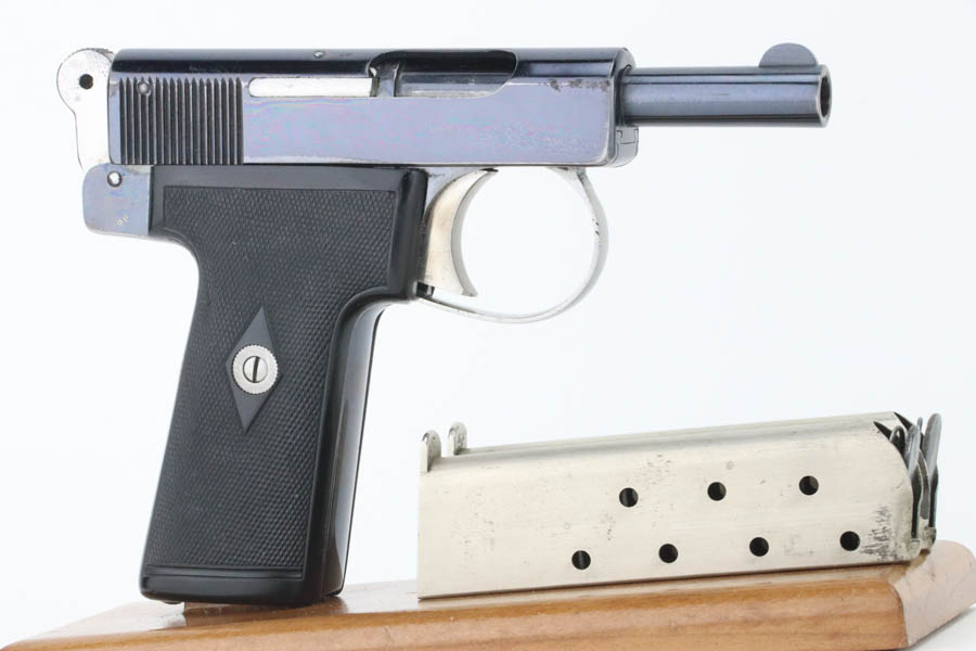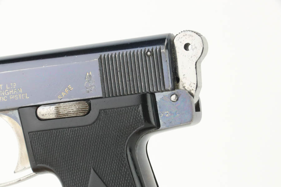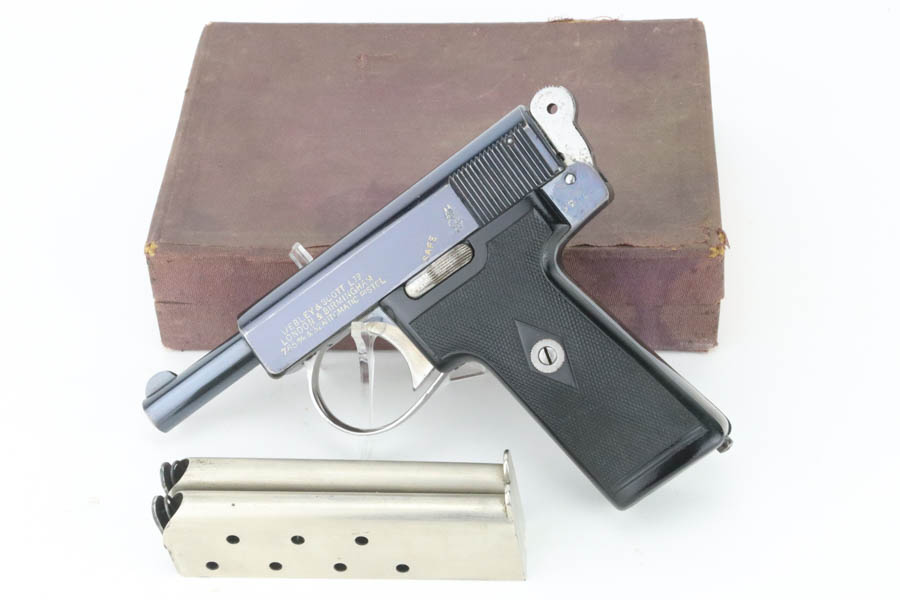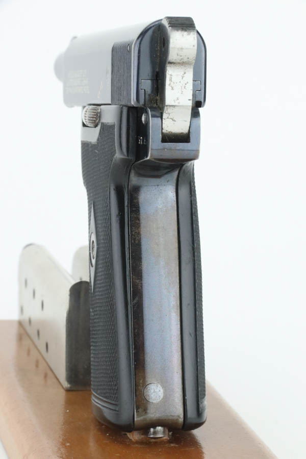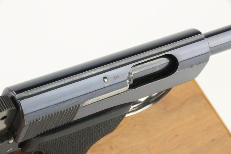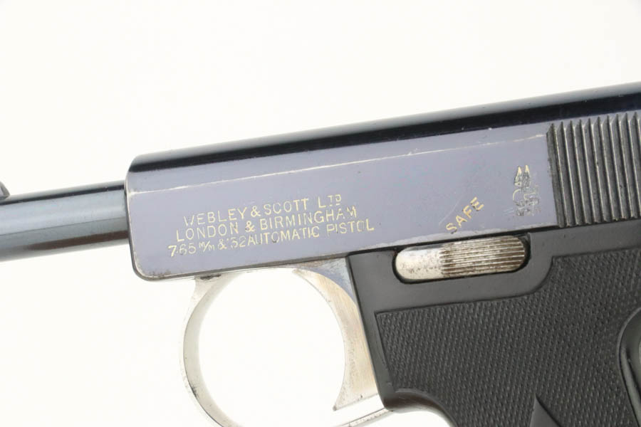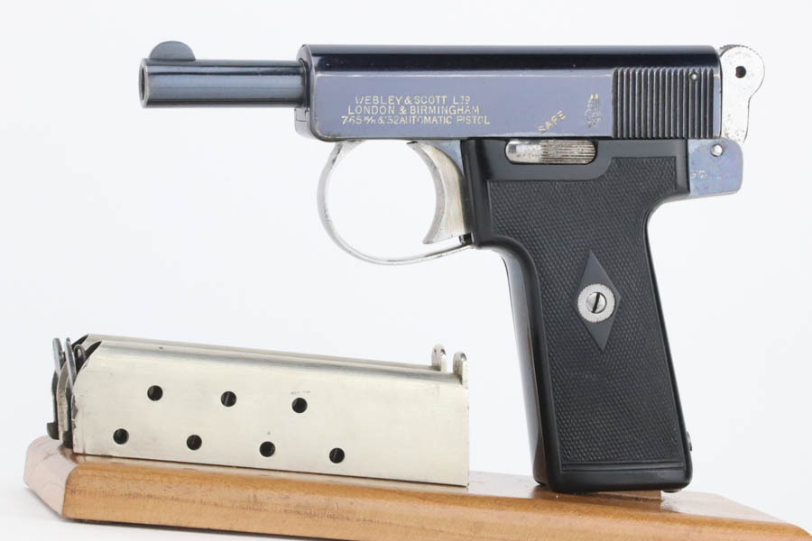 08/07/2024 – For sale is an excellent condition Webley & Scott Metropolitan Police pistol chambered in 7.65 Browning (.32 ACP). The pistol retains an excellent polished bluing with only minor blemishes. There is edge wear throughout the slide and muzzle, some oxidation on the front right of the slide, and front/back of the grip is also worn. The bore is very bright with good rifling. The pistol comes with 2 magazines and an original box that does not have a serial number written. The pistol is mismatched likely through factory error. The frame looks to be stamped 97966, the trigger is stamped 966, but the barrel is stamped 968 and the slide is stamped 968 with the 8 being overstamped a 6.