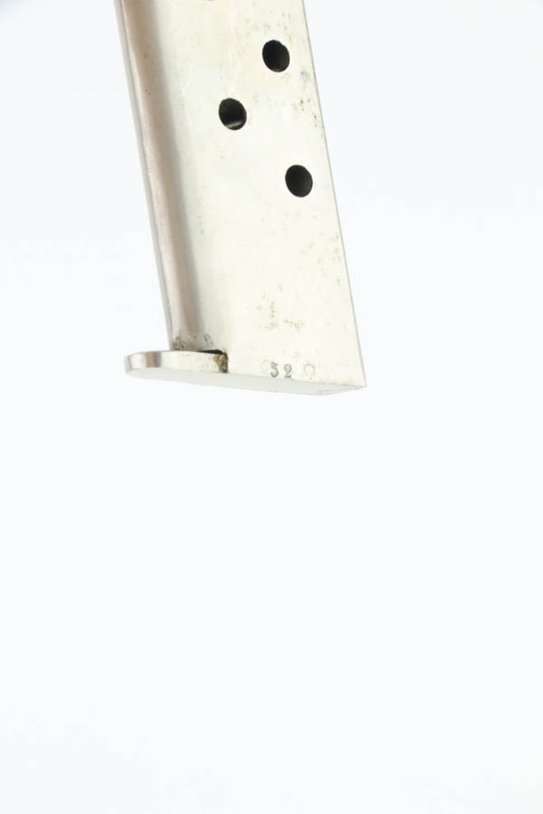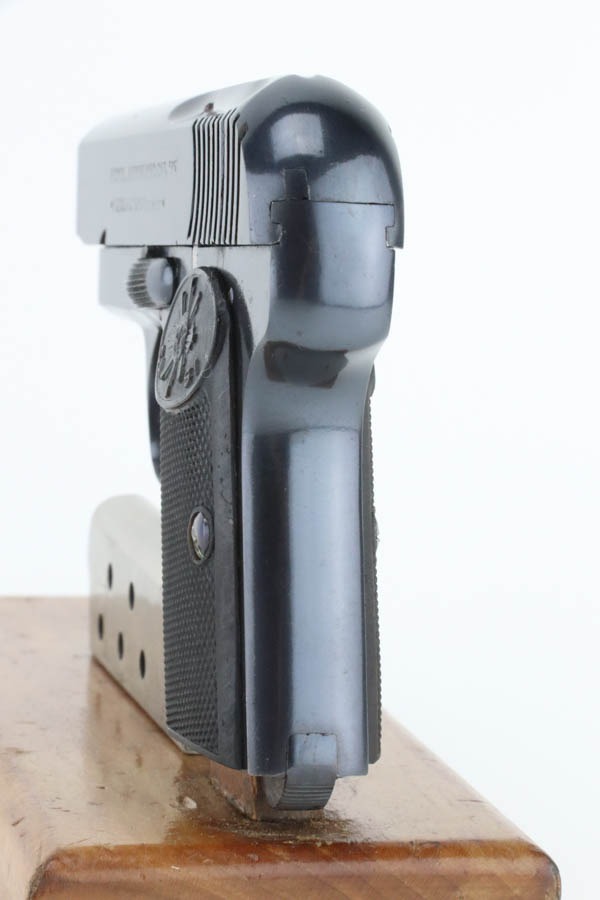 10/2/24 – This is a beautiful, near-mint example of a Stosel Vest Pocket 7.65mm pistol, manufactured after WWI by Retolaza Hermanos in Eibar, Spain. It is all matching and has retained nearly all of its original bluing with just the slightest hint of muzzle wear. Fitted with the correct black plastic grips – excellent condition. It comes with a nickeled magazine that is numbered “52”, which matches the “52” that is stamped on the frame of the gun under the left grip panel. Excellent, shiny bore.