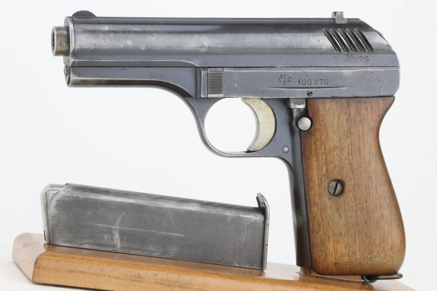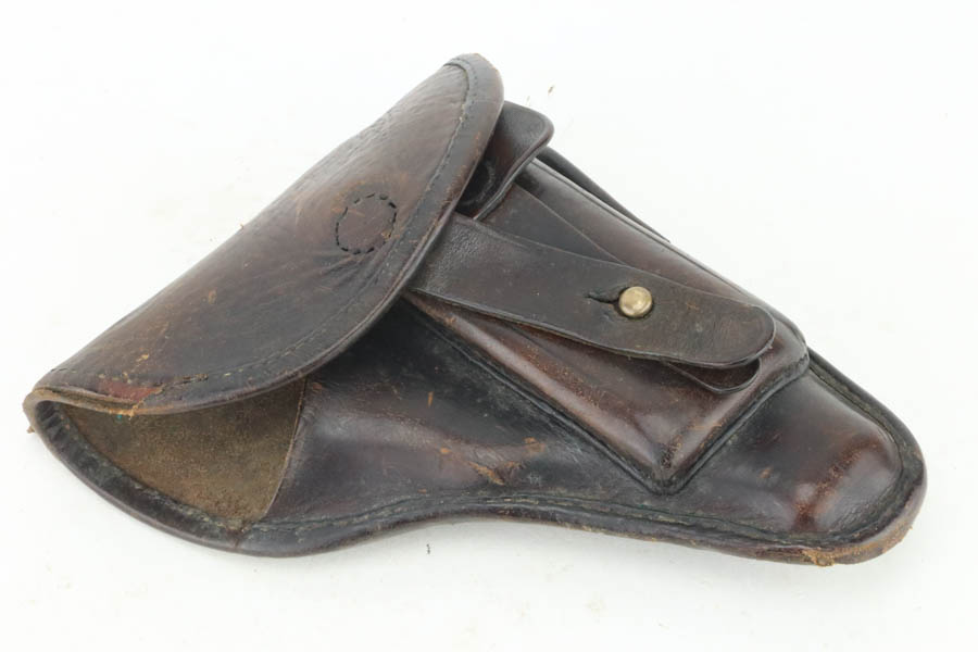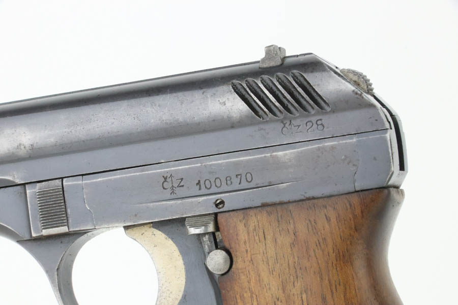 09/20/2024 – For sale is a CZ model 24 Pistol chambered in 7.65mm. The pistol has lost a lot of its original finish mainly on the bottom of the frame and the slide. The wood grip is in great condition with plenty of handling marks and edge wear. The bore is bright with good rifling but signs of wear. The pistol has matching numbers on the frame slide and barrel. The holster is in good condition when signs of wear around the folds. There is a crack forming on the inside on the other side of where the belt loop was stitched on.