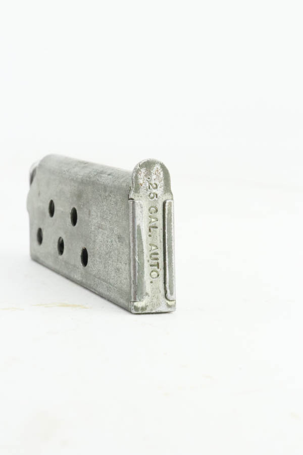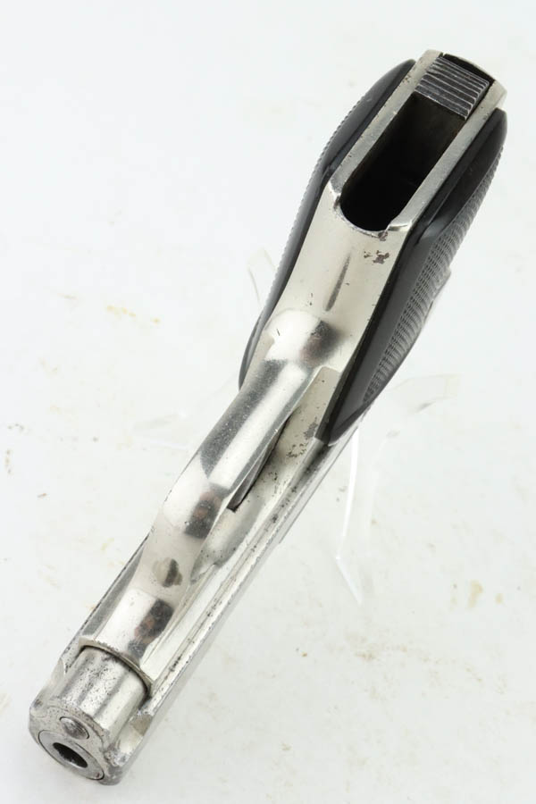 7/10/24 – This is a very nice example of an FN Browning Model 1905 most likely manufactured in the 1930’s. The gun is all matching and has the proper Belgian proofs. It has retained about 95% of its nickel finish with some flaking around the muzzle. While there isn’t much actual finish loss, there is light freckling throughout. One tiny burr in the metal around the ejection port. Fitted with period-correct black bakelite grips and comes with nickeled magazine. The bore has good rifling, but there is some frosting in the grooves.