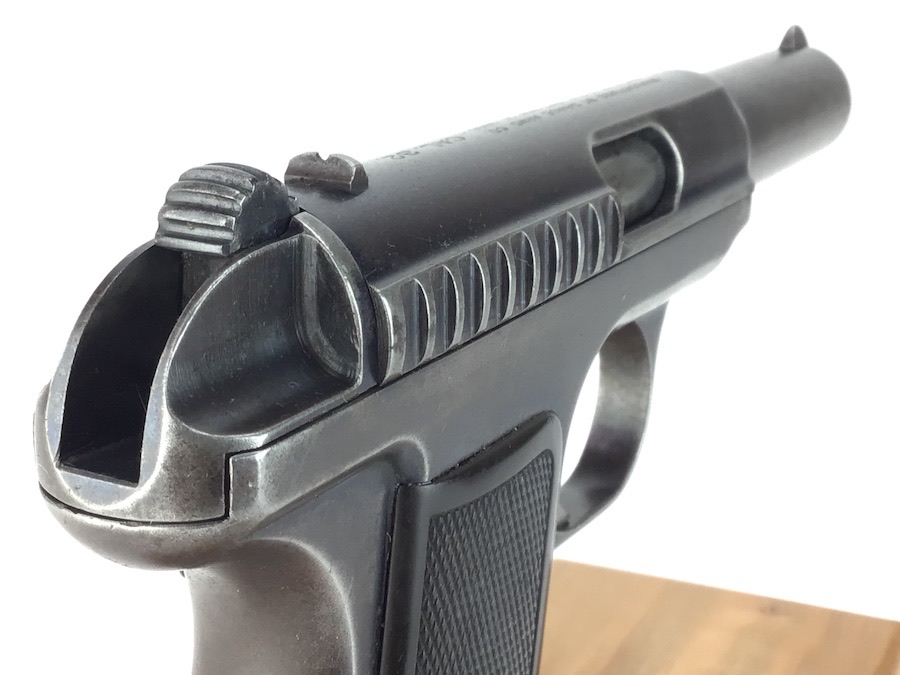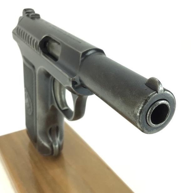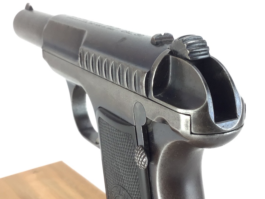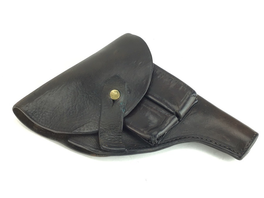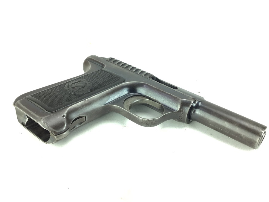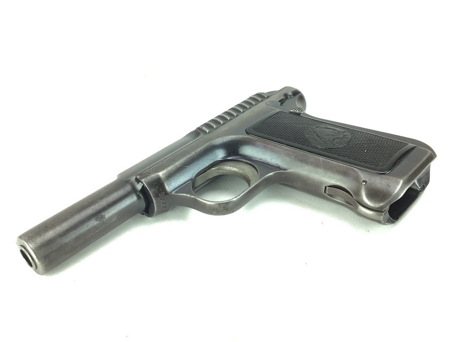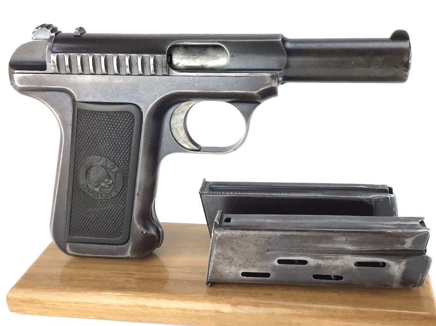 12/4/24 – This is a nice example of a Savage Model 1907 pistol chambered in 7.65mm and manufactured in 1910. The gun is all matching and has retained roughly 80% of its original high polish finish. Most of the finish loss is on the grip straps, where there is noticeable thinning. There is also minor wear around the high edges in general and around the muzzle. Includes excellent black grips, two magazines and holster. The bore is clean and has fair rifling. The right magazine pouch on the holster has loose snap. Otherwise, stitching is intact and secure.