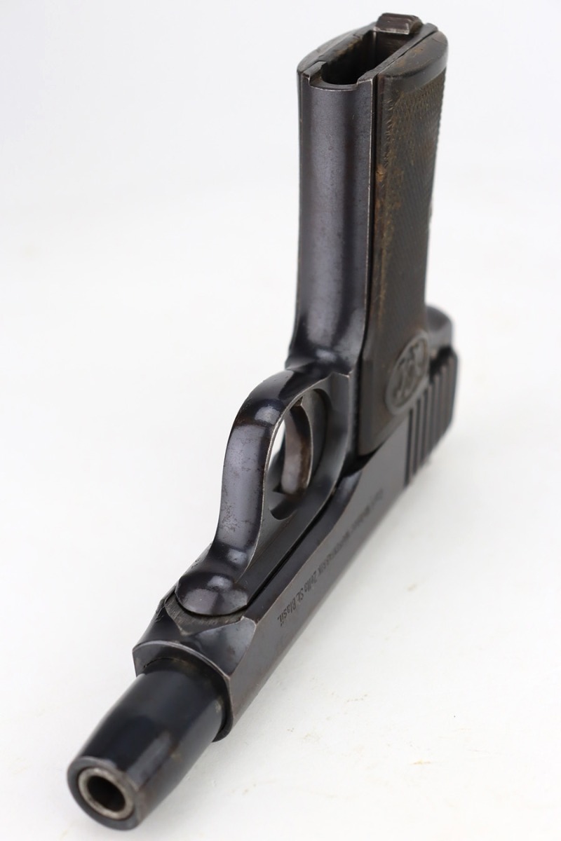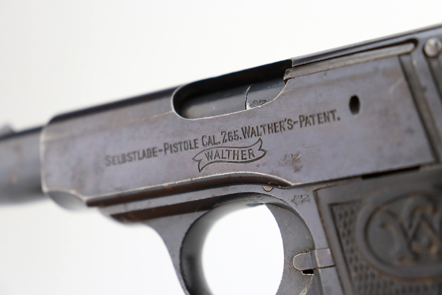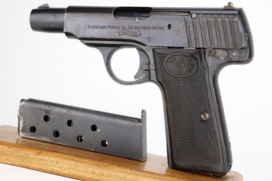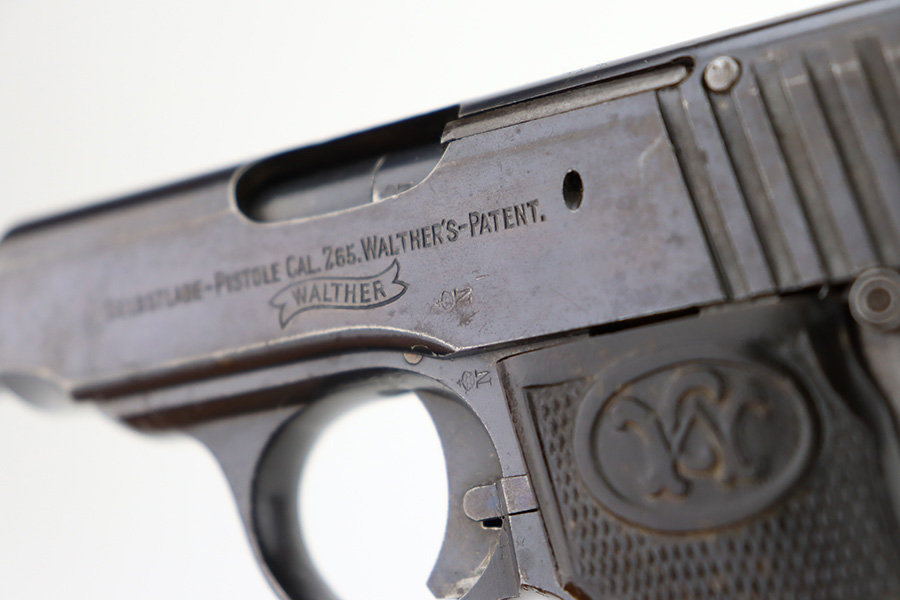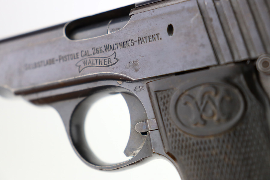7/1/24 – This is an excellent example of a Walther Model 4 from the 1920’s. All matching with “Crown N” proofs. The hammer and firing pin were broken but have been replaced by our gunsmith. The originals are included. It has retained nearly all of its original finish but there are areas of minor oxidation visible here and there. Fitted with black bakelite grips and comes with one proper magazine. The bore has pretty good rifling, but there is frosting in the grooves.