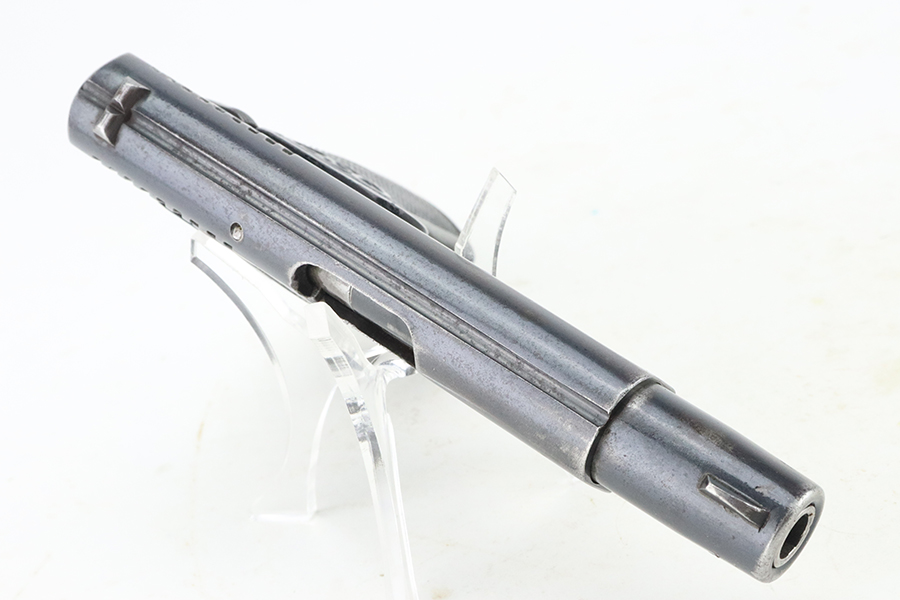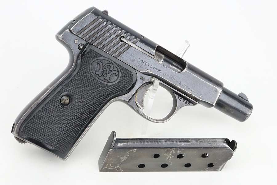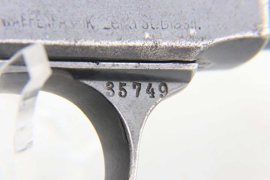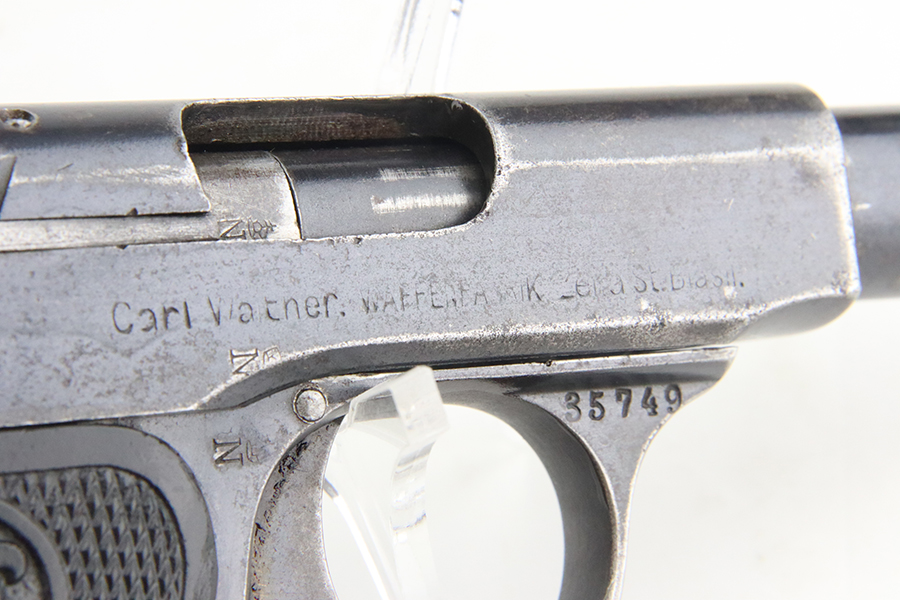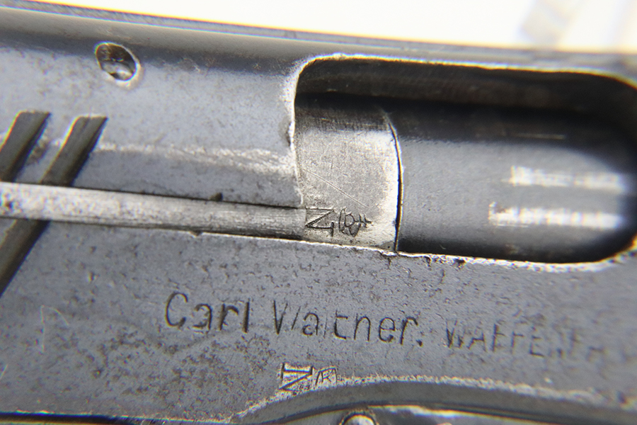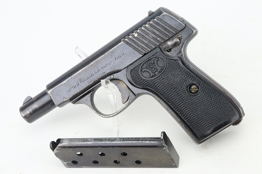 7/19/24 – This is a nice example of a Walther Model 7 from the 1920’s. All matching with “Crown N” proofs. It has retained about 90% of its original finish. The wear is mostly concentrated around the high edges, and there is light pin-pricking throughout. Fitted with black bakelite grips and comes with a spare set of wood grips. Comes with one magazine. The bore has decent rifling. However, there are two slight bulges in the barrel.