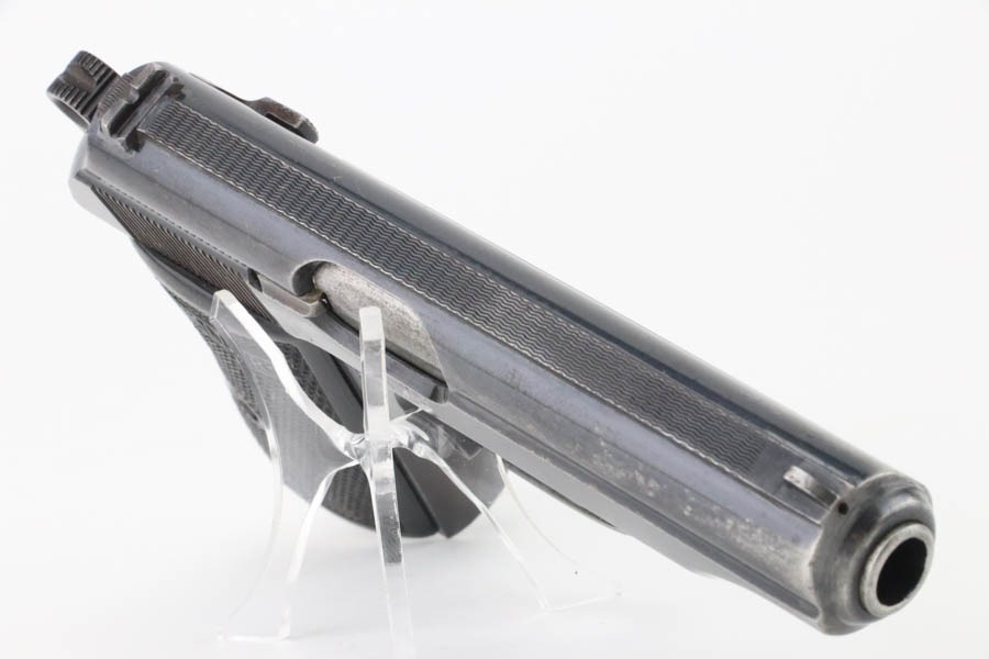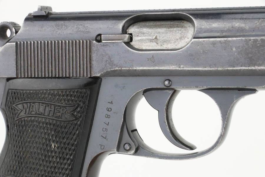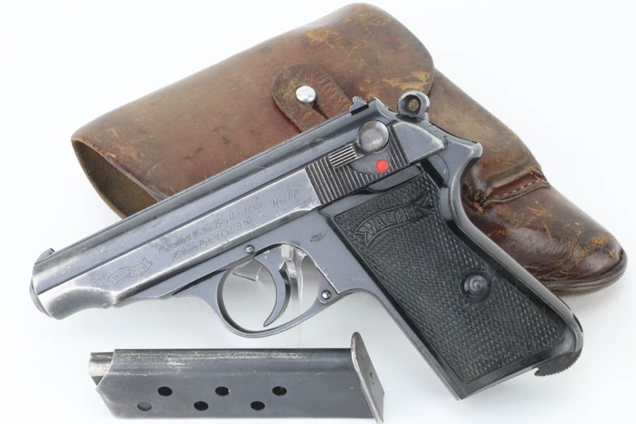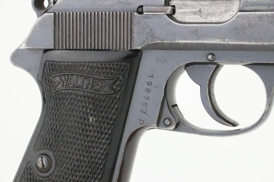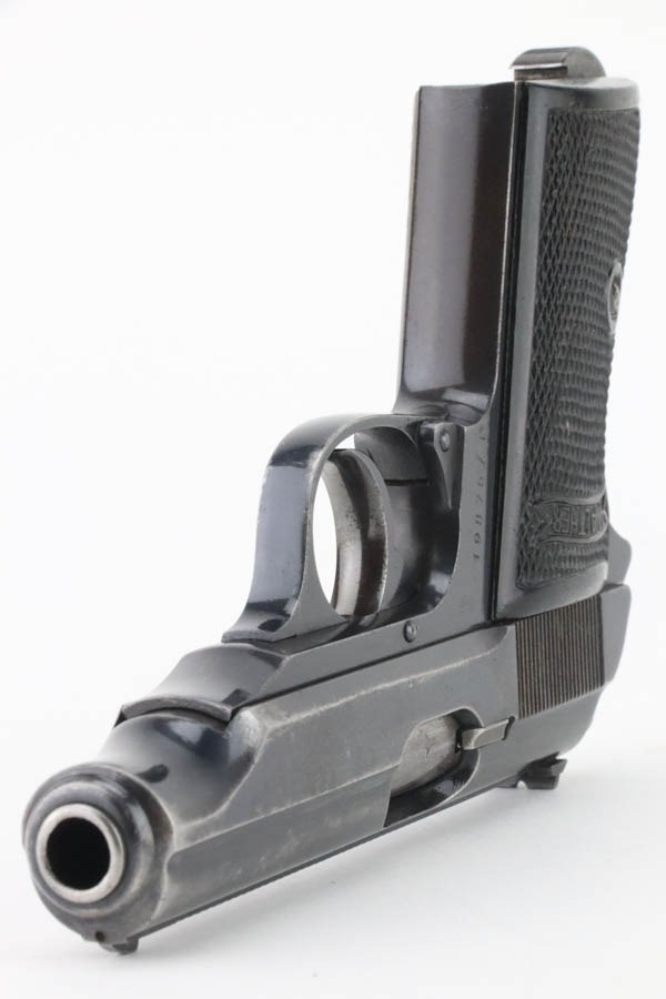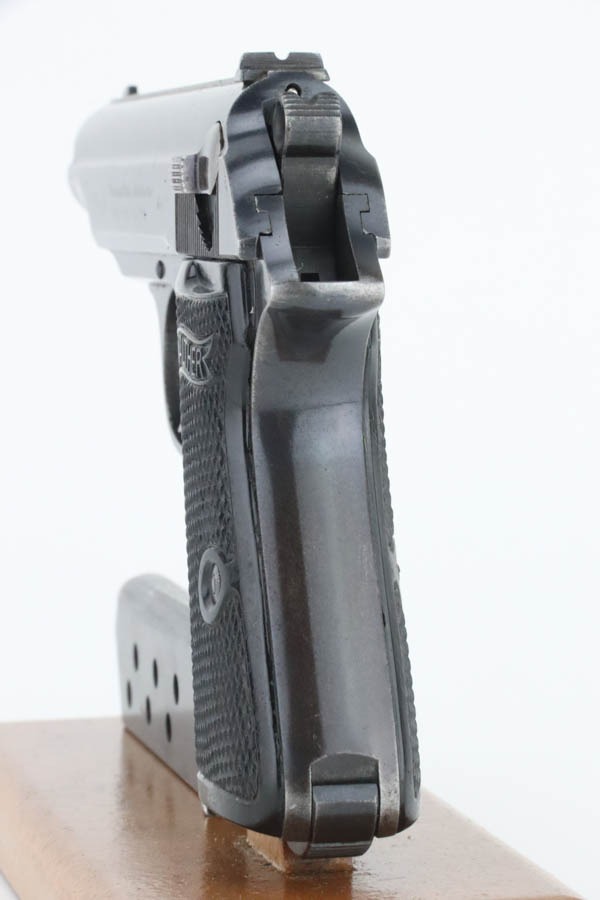 11/11/24 – This is a super rare Walther PP rig that was part of a Luftwaffe contract order in 1940. The pistol is one of only 1,500 produced in 9mm Kurz, with waffenamts on frame and slide, as well as high-polish blued finish. The Luftwaffe contract guns were originally issued with two matching numbered magazines. This one comes as a rig with an un-numbered magazine and a generic tan leather holster (fits the gun well and seems to have been together for a long time). The gun’s original bluing rates somewhere between 85-90% with muzzle wear, light spotty wear along the slide, and some dulling on the grip straps. Fitted with period-correct black bakelite grips. Minty bore.