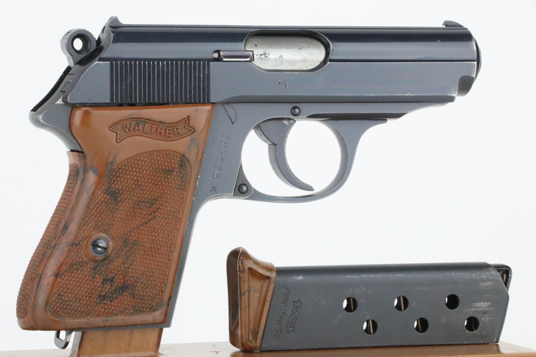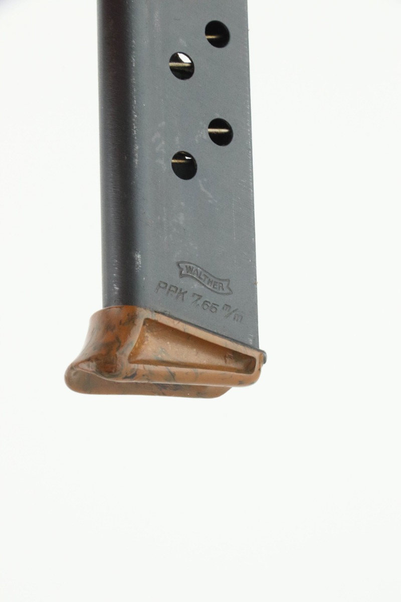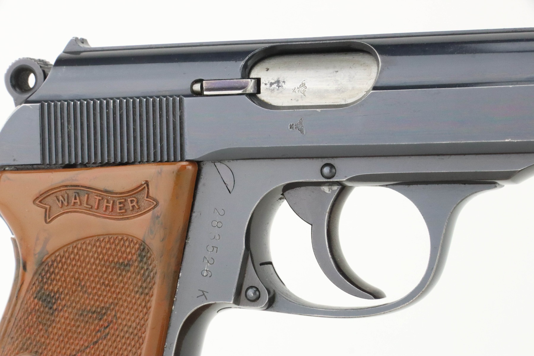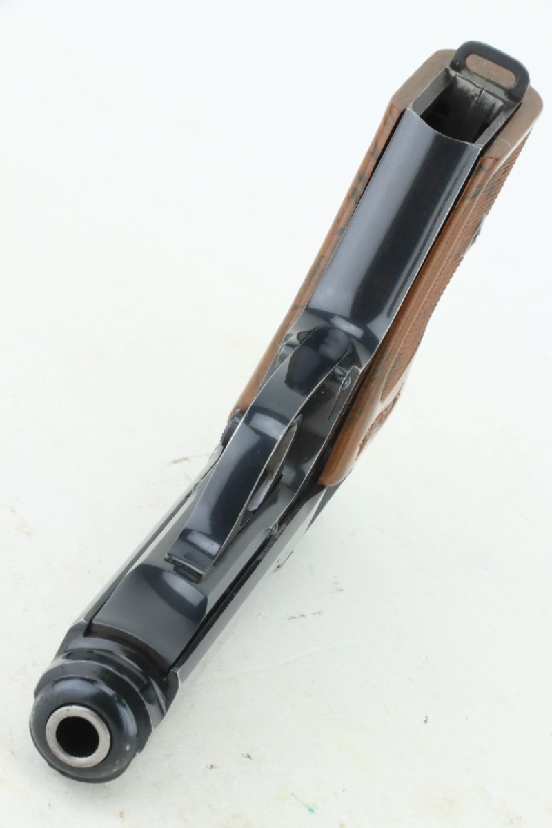 10/29/24 – This is an excellent example of a Walther PPK sold in the commercial market in about 1940. All matching and “Eagle N” proofed. It has retained about 97% of its finish with just minor muzzle wear and a few really light surface scratches near the serial number. Fitted with an excellent brown grip and comes with a wartime finger extension magazine. Minty bore.