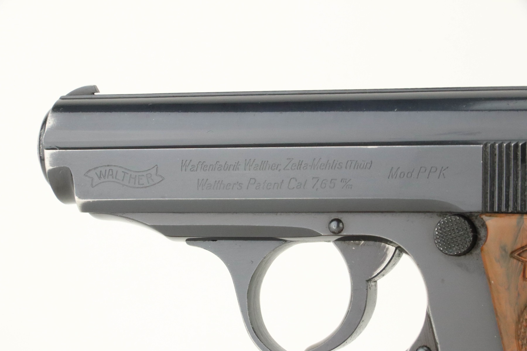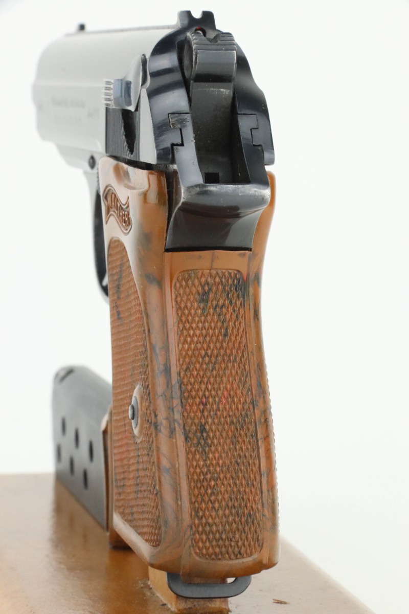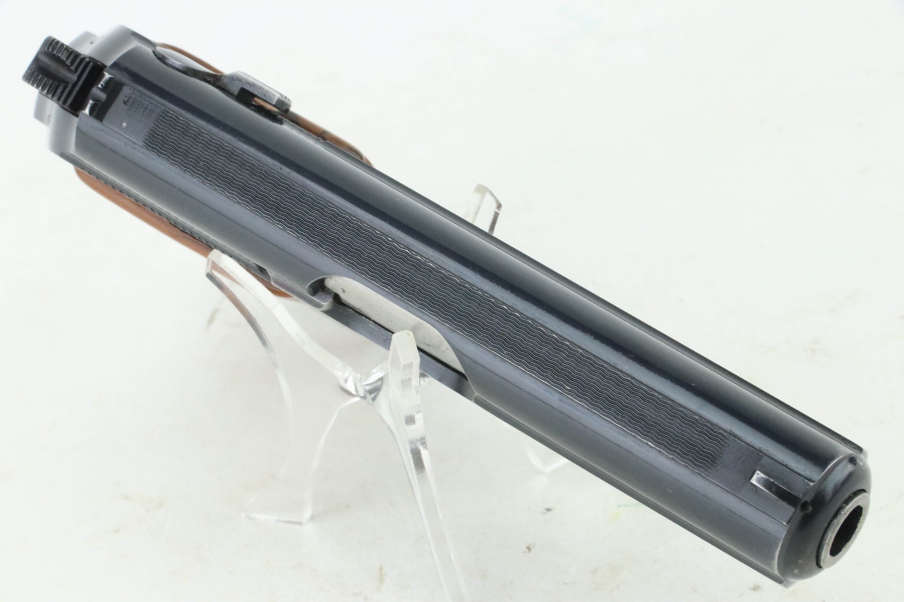 10/29/24 – This is an excellent example of a Walther PPK sold in the commercial market in about 1940. All matching and “Eagle N” proofed. It has retained about 97% of its finish with just minor muzzle wear and a few really light surface scratches near the serial number. Fitted with an excellent brown grip and comes with a wartime finger extension magazine. Minty bore.