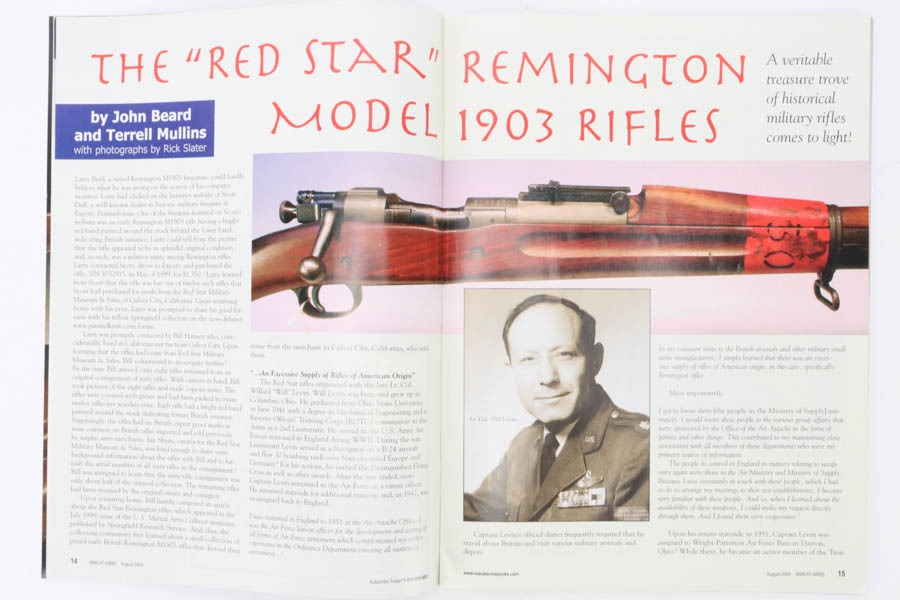 The Red Star rifles were a batch of 200 Remington 1903’s that were originally sent to England as Lend-Lease aid during WW2. These rifles were imported by US Air Corps B-24 Navigator Lt. Col. Willard Levin in 1955. There was a total of 200 rifles imported and were gifted to his nephew. A grouping of 60 rifles were sold to Red Star Museum and Gun Shop in Culver city, California in the late 1990s which is how they got the name “Red Star” Remington 1903s. The rifles are characterized by the red band painted on the forestock and handguard. These rifles were imported in sealed crates from the British Armory and coated in packing grease. These rifles would be featured on NRA’s “Man-At-Arms” Magazine in 2009.