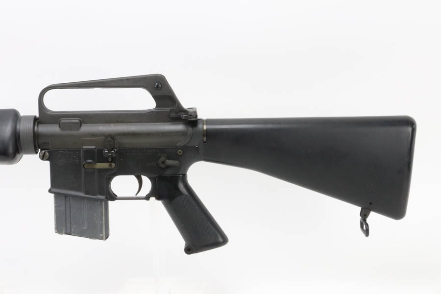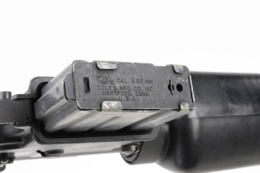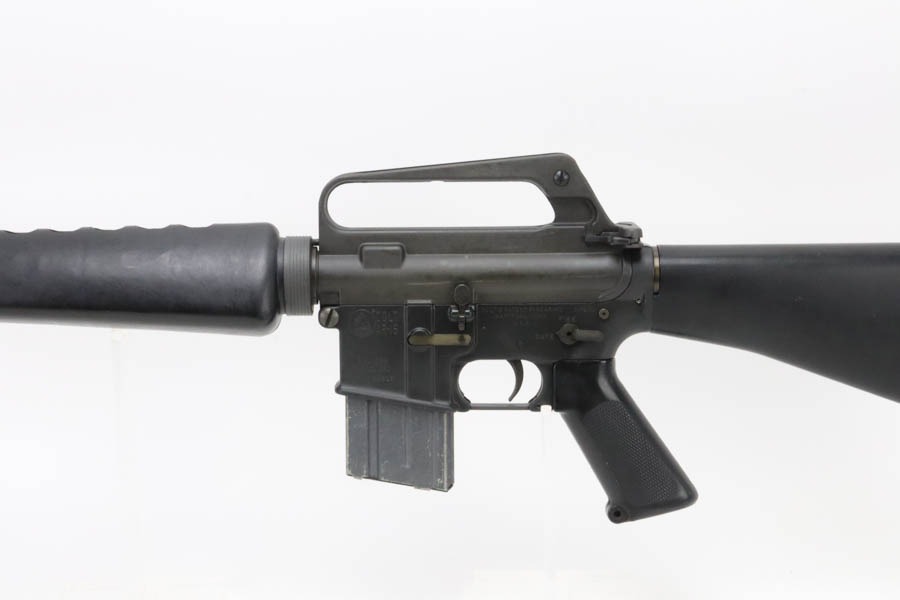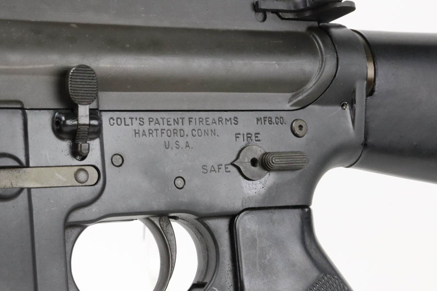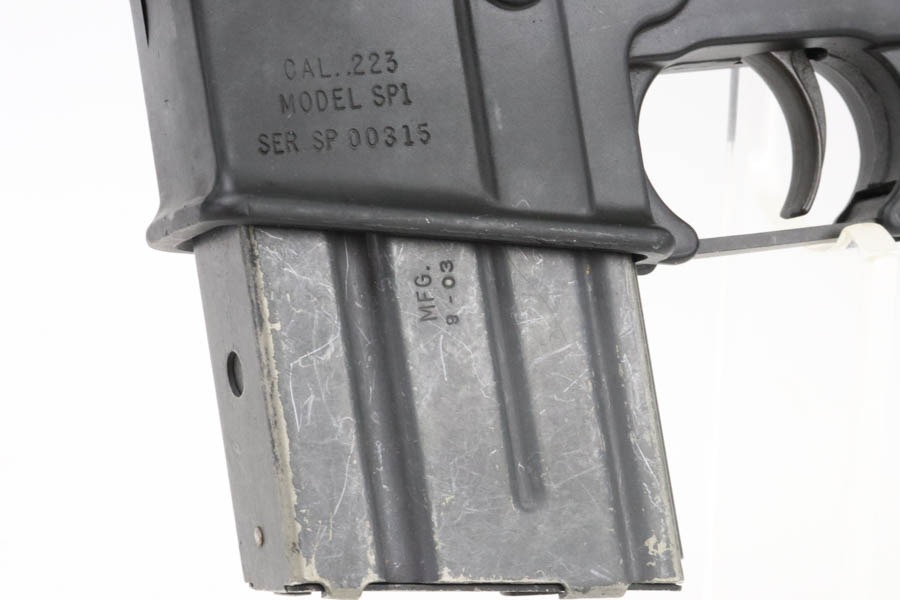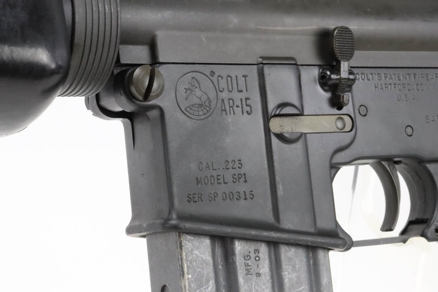 12/2/24 – This is an incredibly early and attractive Colt SP1, serial number 315! One of the earliest serials to be offered for public sale in recent times, this one is in great condition and has loads of correct, early features. The finish is original and in excellent condition with only minor surface scuffing. It has the early style upper receiver with no provisions for a forward assist. Upper receiver front right side has the proper Colt verified proof mark and the “C” in a box stamping. The lower receiver has the Colt four line markings with the three digit serial number “SP1, Serial Number “SP 00315” indicating production in early 1964. The Type 1 lower receiver has the roll pin hole at the rear and the ‘+’ symbol cast mark on the right side front. It is fitted with the early original parts including the original non-chrome lined Winchester barrel having only a small “M” mark between the front sight post rings on the right side. The barrel is fitted with the early three-prong flash hider along with the checkered edge washer. It has the early commercial smooth sides Type 1 bolt carrier that lacks the cut on the underside with the larger hole in the side for the early solid head machined, steel firing pin and retaining pin. The bolt is also the early Colt version that is all chrome plated with the acid etched ‘M’ and ‘P’ markings. It still retains its original first generation Type 1 old style, large head, two-piece type edgewater recoil buffer. It is also fitted with it original black plastic earlier type one 1 1/8″ pistol grip, and the stock is also the early version Type 1 that lacks any provisions for the internal storage compartment in the rear. Only the lined solid rubber butt-plate with the solid screw retainer. The rear type 1 take down pin has the dimpled ends, and it has the type one trigger with open back. The hammer and the front sight post as the “E inside the C” marking. Early thin style cast front sight post without drain hole. Swinging swivels with roll pin fasteners front and back. Mint bore. All in all, an incredible example of a super early and desirable Colt SP1.