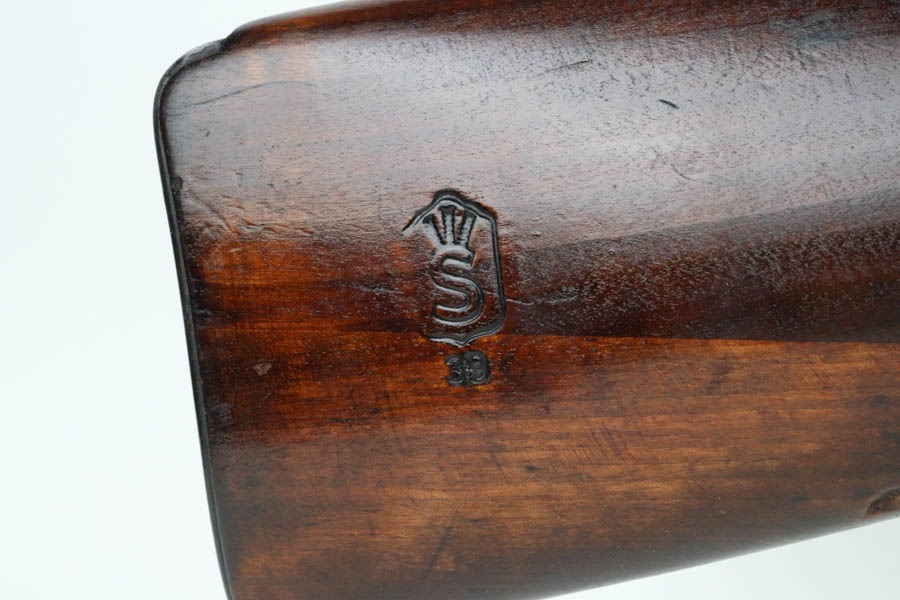 09/23/2024 – For sale is a Finnish M28/30 rifle that was made for the Civil Guard and made by Sako. This rifle has been modified by the previous owner to accept a PE scope mount. The M28/30 rifles were never fitted with these scopes by the Finnish Military. The rifle is in clean condition overall with a nice bluing on the metal. The stock has been lightly sanded and there is a 5″ crack come the back of the trigger guard and going up the left side of the stock. The bore is very bright with great rifling. The bolt has also been modified and an aftermarket bent handle has been installed.