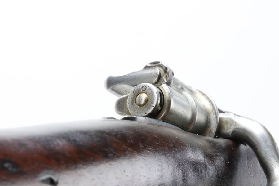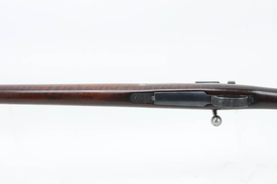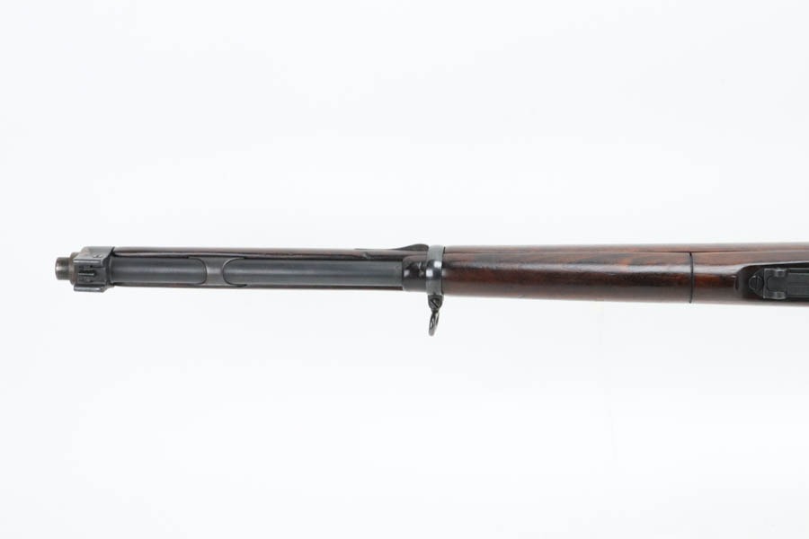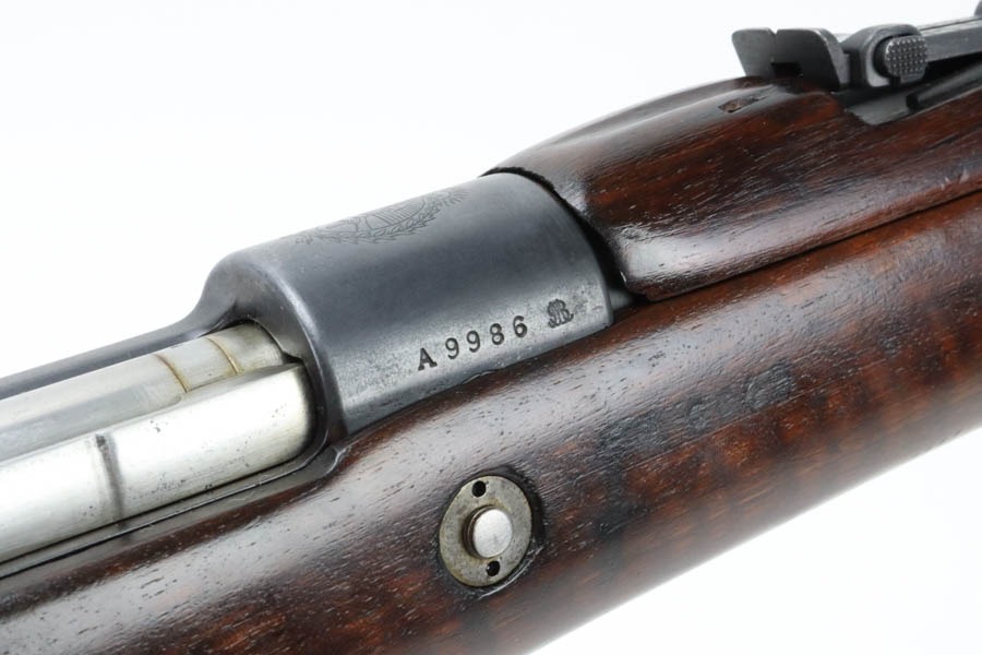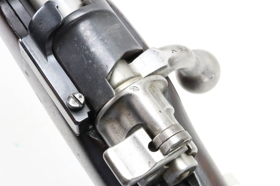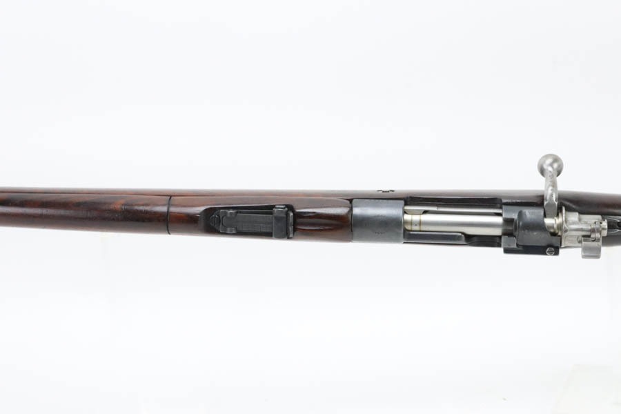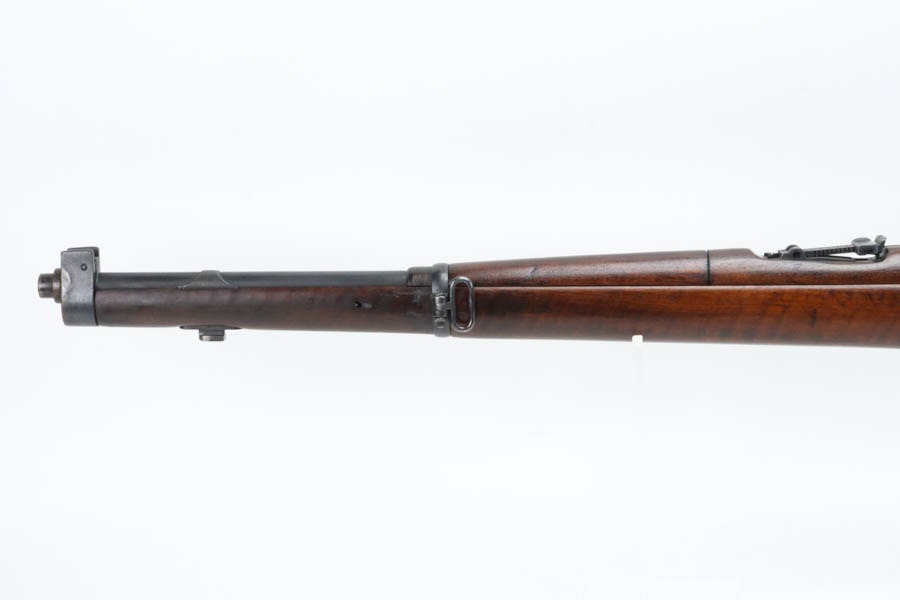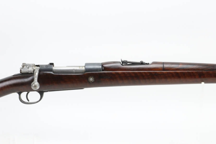 12/2/24 – For sale is an Argentine Model 1909 Mauser Engineer Carbine made in 1910. The carbine is in great shape overall with a nice tiger stripe pattern visible on the stock. The metal retains a nice dulled blued finish with minor wear and spots of finish loss. The stock is in great condition but has been sanded and has minor handling marks and dings on the finish. The serial number isn’t legible on the stock but the bolt, receiver, and trigger guard are matching. The nose cap has markings of braze welding as a bushing was installed for the use of a bayonet. The bore is on the darker side but with good rifling.